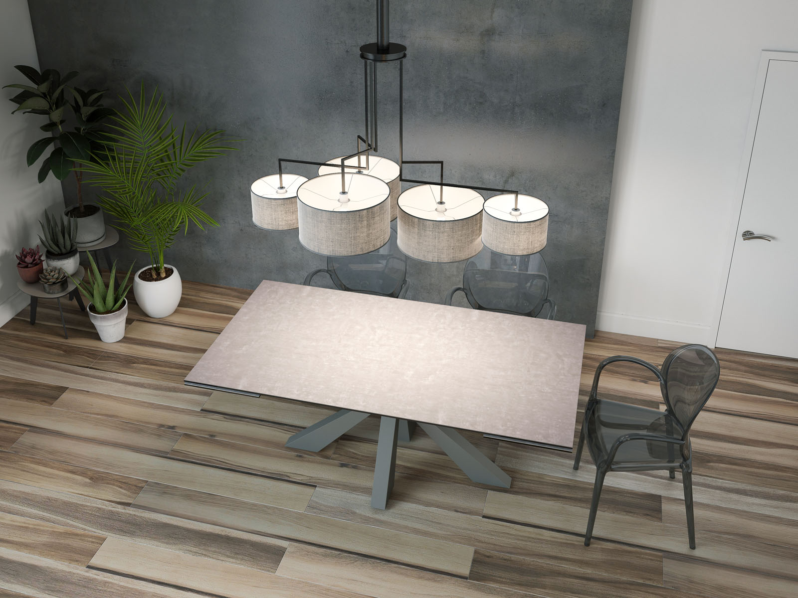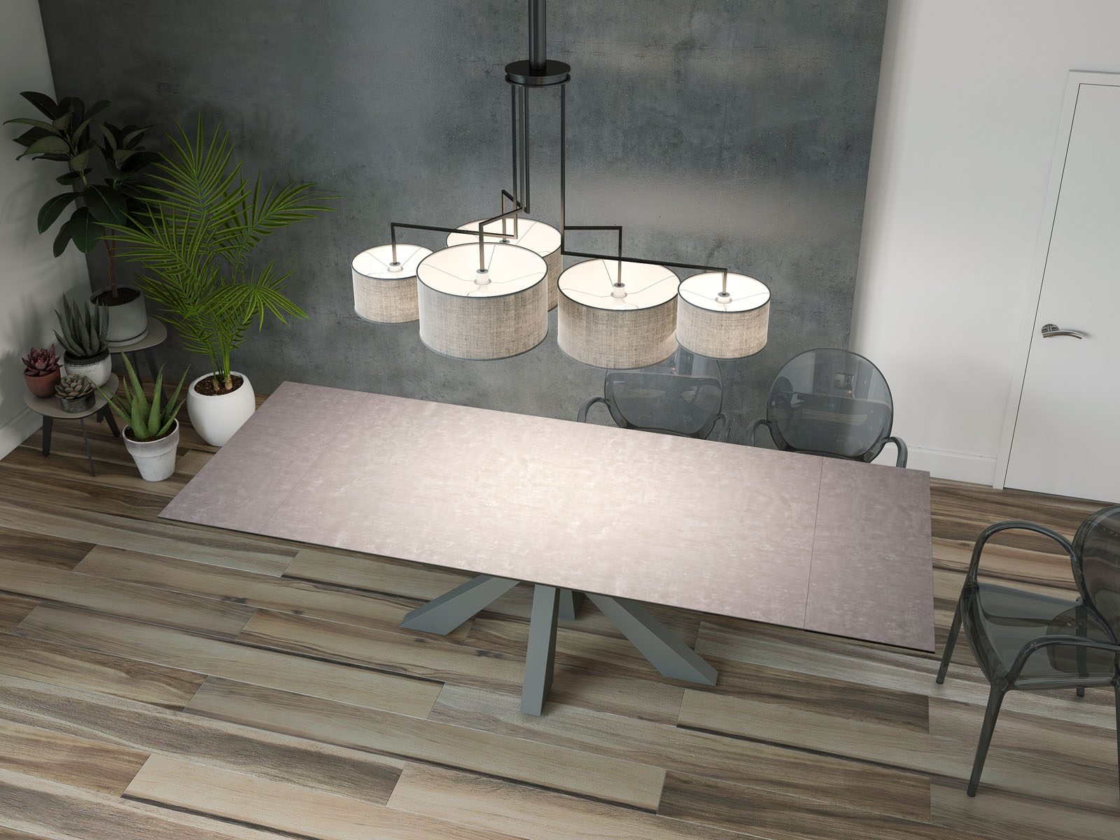 Apportez de la douceur et de la légèreté à votre salle à manger avec la table de repas Ottawa en céramique argile et son piétement original gris taupe. Son plateau de 190 cm de long et de 100 cm de large s’agrandit grâce à ses deux rallonges de 40 cm se dépliant séparément de chaque extrémité. Ottawa est raffinée mais sait être résistante au quotidien grâce à sa céramique de 3 mm collée sur un verre de 8 mm qui lui assure une réelle solidité.