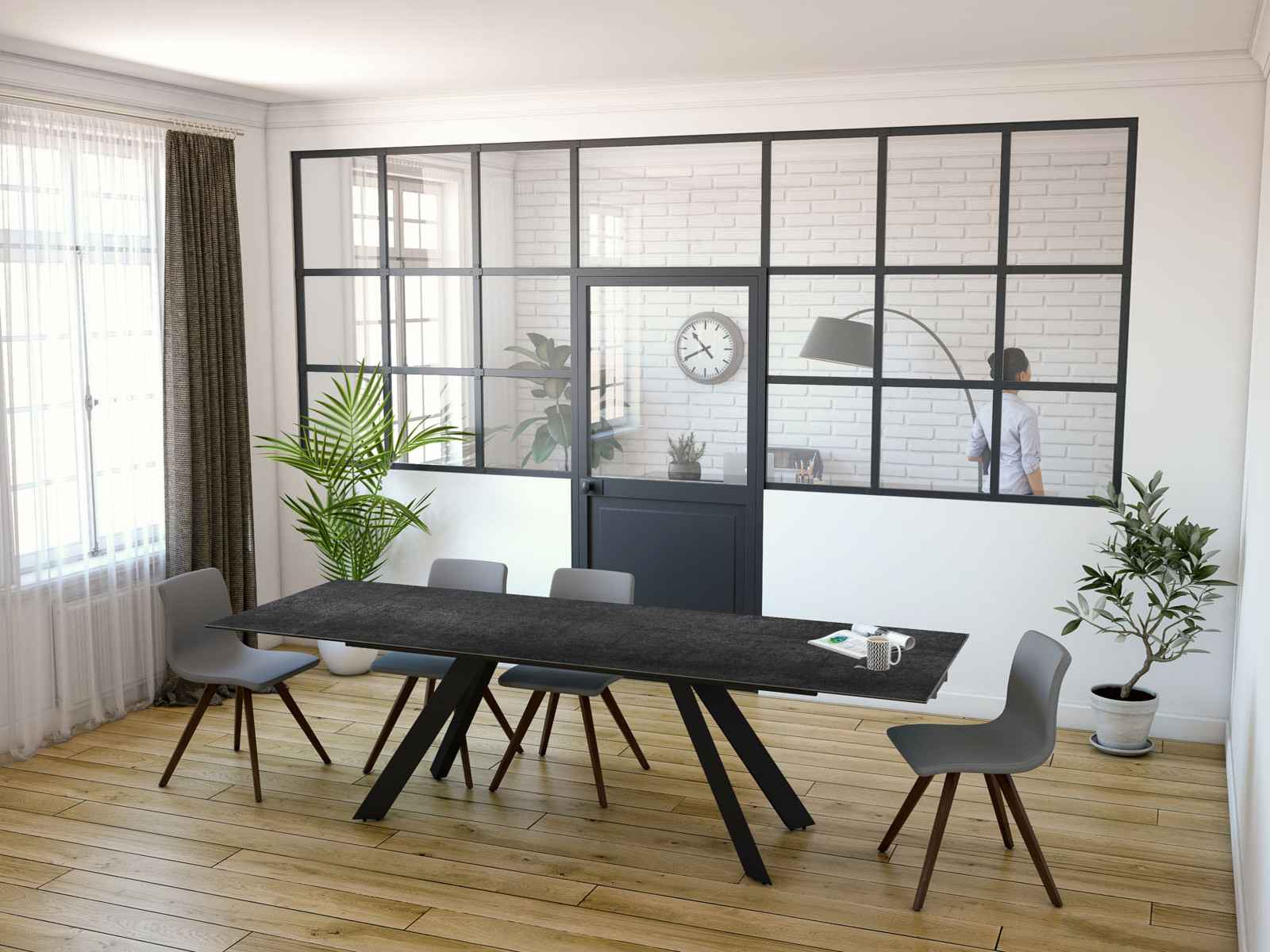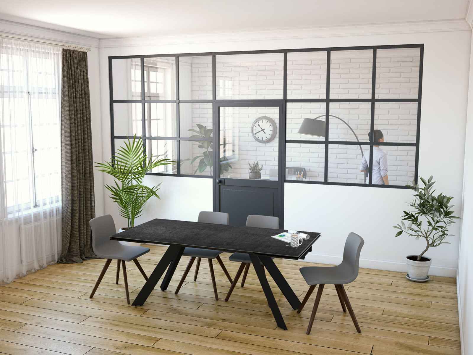 Voici la table de repas Ontario de chez Akante. Avec la forme de sa structure elle renvoie un style très contemporain qui dynamisera le style de votre salle à manger. Ontario possède deux rallonges rétractables. Fermée, elle mesure 1m90 et s’étend à 2m70. Elle peut accueillir jusqu'à 10 personnes. Ontario se décline en 4 coloris Ici présentée avec un plateau en céramique titane, celle-ci évoque un style plutôt chaleureux grâce à ses accents marronnés.