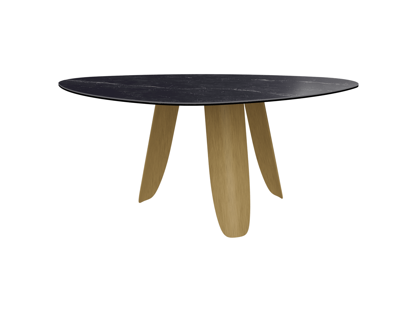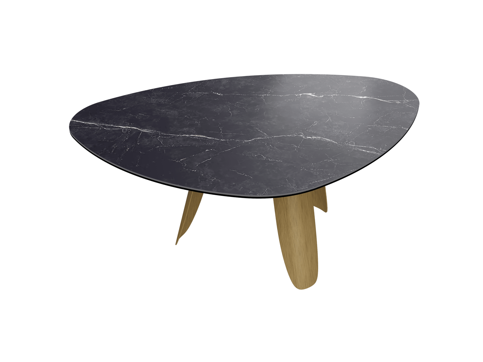 Modernisez votre intérieur avec la table Bonifacio. Ses formes organiques et son plateau en céramique Marbre Marquina de 6 mm collée sur un verre de 8 mm incarnent l’élégance contemporaine. Au choix, personnalisez votre plateau dans l’une des deux tailles suivantes : 1,75 m x 1,20 m (pour ce modèle) ou 2,10 m x 1,30 m (pour la plus grande). Le piétement de Bonifacio est unique, conçu en forme de pétale, il ajoute de la légèreté à sa silhouette. L’acier laqué effet bronze, se marie très bien avec les veinures lumineuses de la céramique Marbre Marquina.