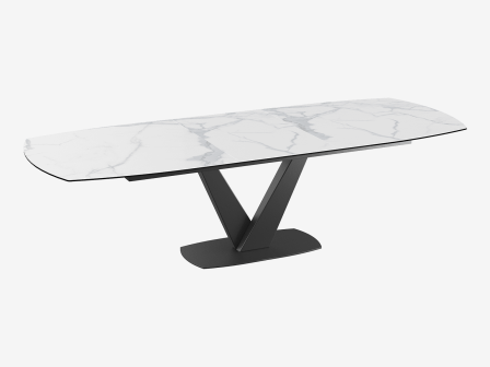 EXCLUSIVITE CUIR CENTER. La table de repas Columbia en céramique marbre trouvera facilement sa place dans votre intérieur. La céramique marbre viendra apporter de la luminosité et de l’élégance, elle mesure 3 mm d’épaisseur et est collée sur un vitrage de 8 mm. Le piétement en acier laqué noir mat d’une hauteur de 75 cm viendra apporter un aspect original à votre décoration.