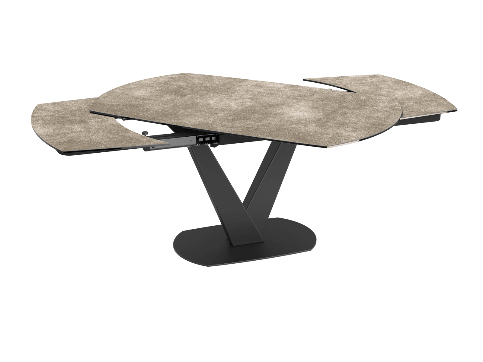 Mettez les petits plats dans les grands avec la table de repas extensible Grande Bellagio. Ce modèle emblématique d’Akante est désormais disponible en format XXL. Son plateau est doté d’un mécanisme synchronisé avec deux rallonges latérales de 40 cm. La table Grande Bellagio mesure 160 x 100 cm rallonges fermées et 240 x 100 cm une fois déployée. Le plateau est conçu en céramique Argile de 3 mm, collée sur un verre de 8 mm. Son piétement est singulier, il se distingue par une base centrale qui relie deux pieds conçus en acier laqué noir mat. Accueillez 8 à 10 convives autour pour un repas chaleureux et convivial.