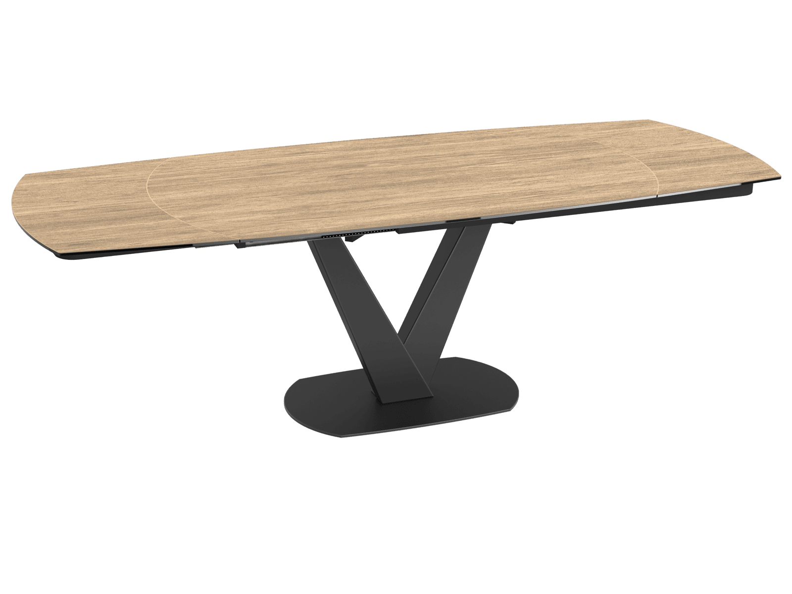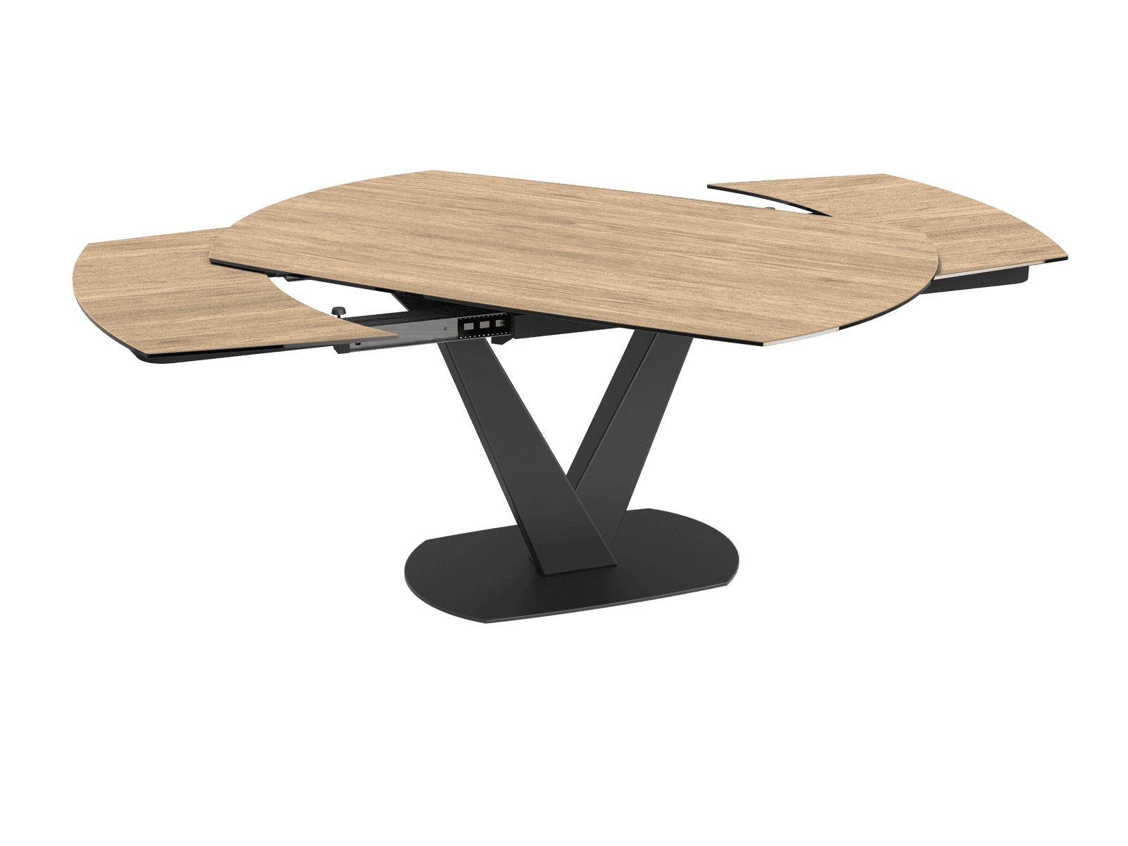 Recevez 8 à 10 convives autour de la table de repas Grande Bellagio. Ce modèle à l’allure contemporaine est doté d’un mécanisme synchronisé. En effet, son plateau extensible possède deux rallonges latérales de 40 cm chacune. Il suffit de glisser le plateau sur le côté pour faire apparaitre l’extension. Enfin, passez d’une surface de 160 x 100 cm à une surface de 240 x 100 cm une fois déployée. Ce modèle vous est présenté en céramique Chêne Clair de 3 mm, collée sur un verre de 8 mm. Son élégant piétement est conçu en acier laqué noir mat.