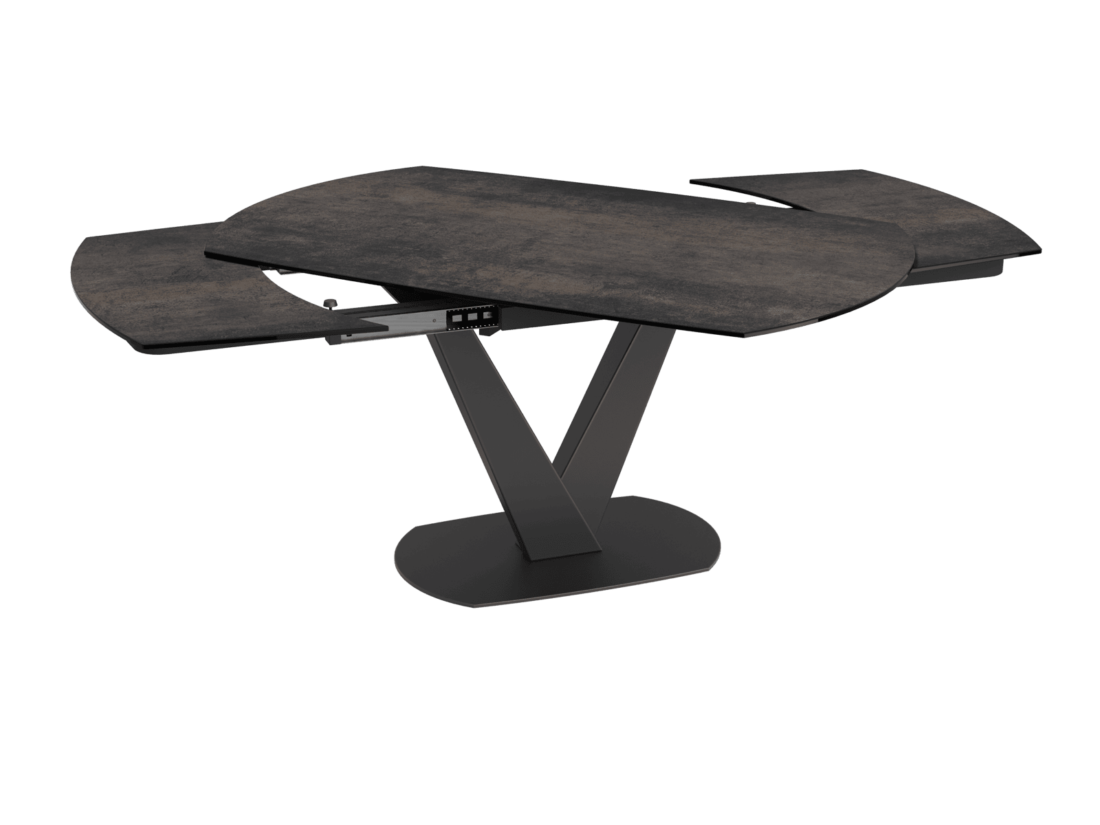 Mettez les petits plats dans les grands grâce à la table de repas Grande Bellagio. Cette table est dotée d’un plateau extensible, sa surface passe de 160 x 100 cm à 240 x 100 cm grâce à deux rallonges latérales synchronisées de 40 cm. La céramique Acier de 3 mm, collée sur un verre de 8 mm, lui donne un look contemporain et chaleureux. Son piétement en acier laqué noir mat repose sur une base centrale solide. Accueillez aisément 8 à 10 convives autour.