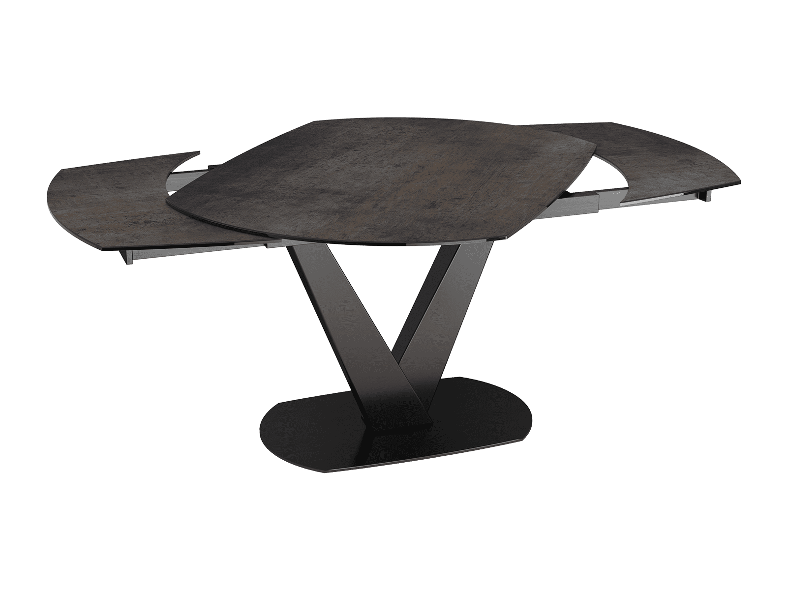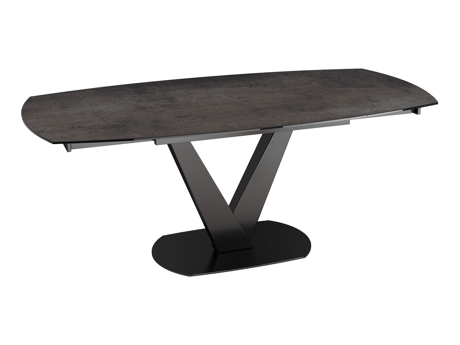 La table de repas Bellagio représente l’alliance parfaite entre l’élégance et la qualité. Cette table contemporaine viendra habiller votre salon grâce à ses lignes simples et épurées. La céramique acier mesure 3 mm d’épaisseur et est collée sur un vitrage de 8 mm. Extensible, la table de repas Bellagio vous permettra de recevoir vos amis et votre famille grâce à son système synchronisé qui déploient 2 rallonges. Le piétement est en acier laqué noir et mesure 76 cm de hauteur. Le piétement a la forme d’un V ce qui ajoute une touche d’originalité à la table de repas Bellagio