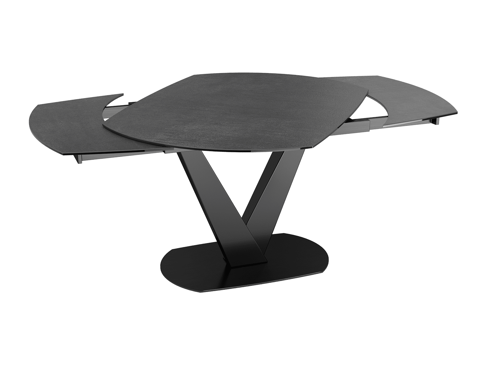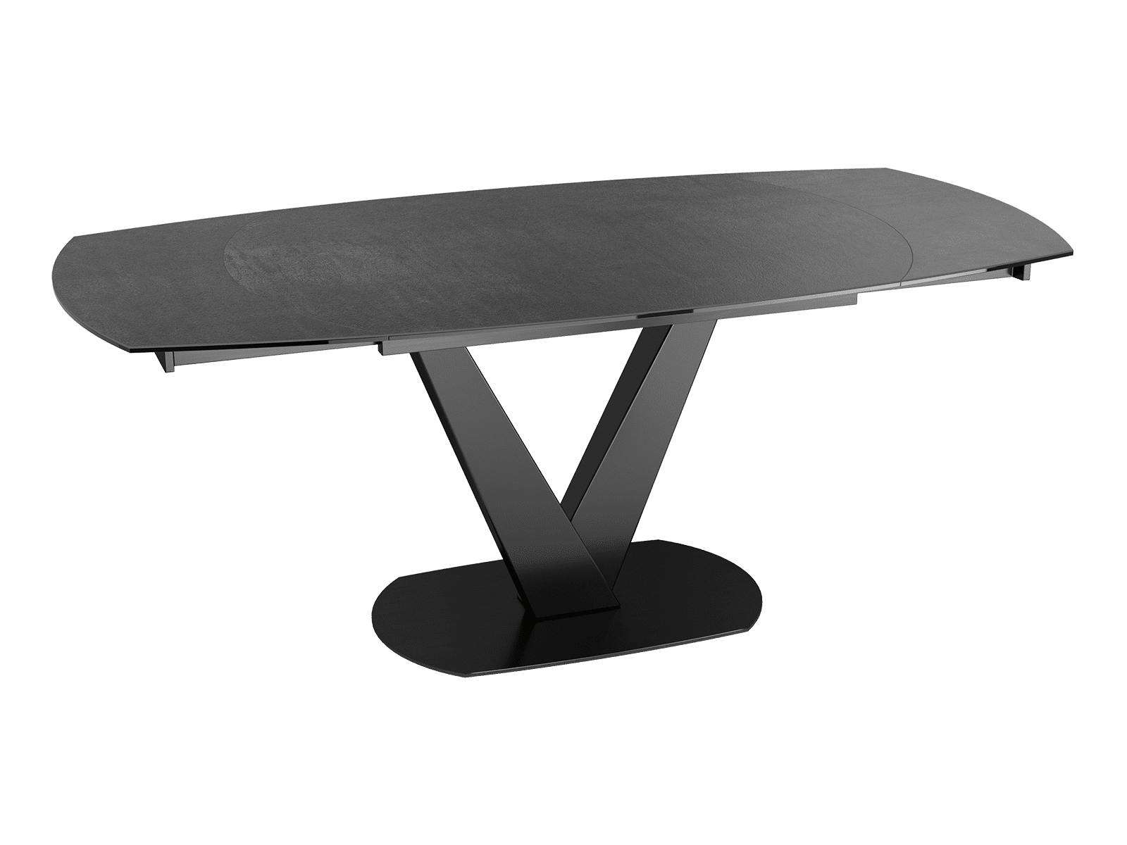 Modernisez une pièce de votre intérieur avec la table de repas Bellagio qui deviendra le meuble iconique de cet espace. La céramique titane facilitera l’insertion de la table dans tous types de décoration des plus colorées aux plus classiques. La céramique fait 3 mm d’épaisseur et est collée sur un vitrage de 8 mm. Les rallonges intégrées à la table favorisent la convivialité puisqu’elle peut atteindre une longueur de 190 cm. Le piétement est en acier laqué noir mat et mesure 76 cm de hauteur. Il ajoute une touche d’originalité par sa forme et de singularité par sa couleur noir mat.