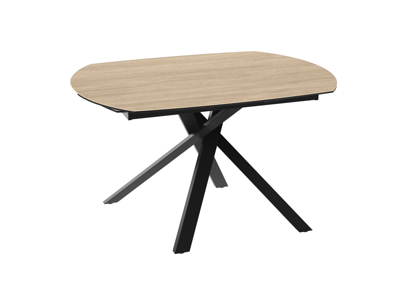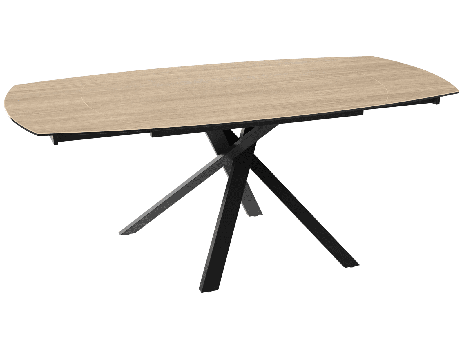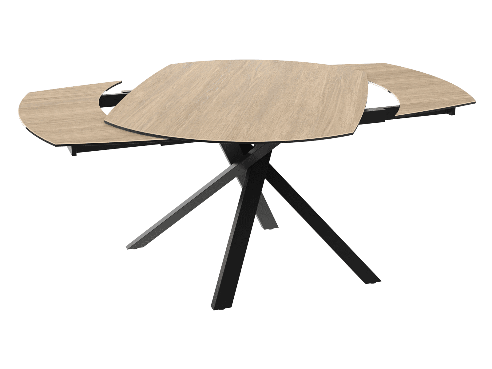 Vous recherchez une table de repas originale et fonctionnelle ? La table de repas Kheops sera parfaite pour votre intérieur ! Son plateau est doté d’un mécanisme synchronisé qui permet par une simple rotation du plateau principal de révéler les deux rallonges latérales dissimulées sous celui-ci. Son plateau est en céramique Chêne clair de 3 mm d’épaisseur collé sur une plaque de verre de 8 mm, il mesure 130 cm de longueur sur une largeur de 100 cm. Le piètement de la table Kheops est en acier laqué noir mat et mesure 76 cm de hauteur. Accueillez entre 6 et 8 personnes autour de vos repas conviviaux.