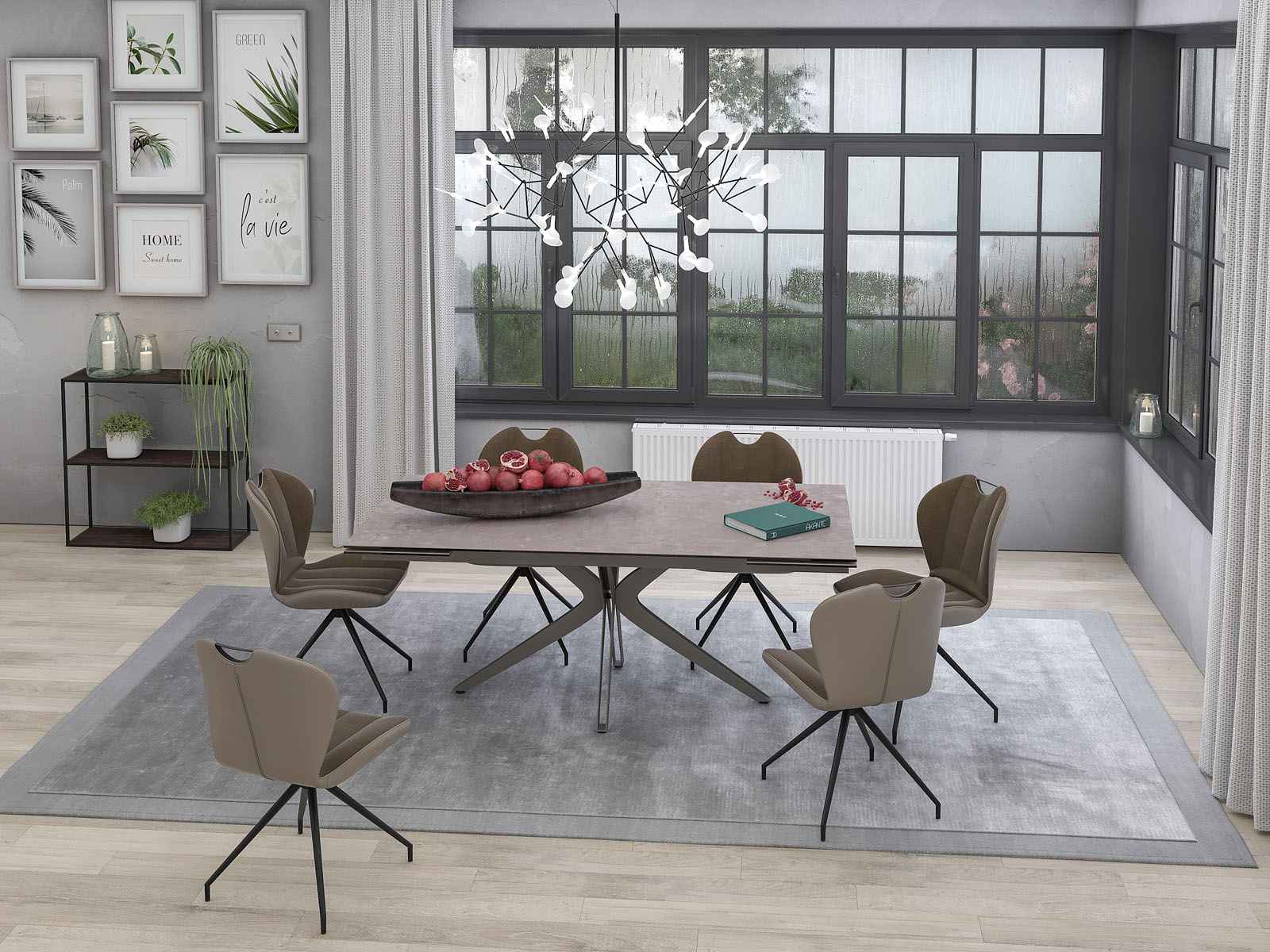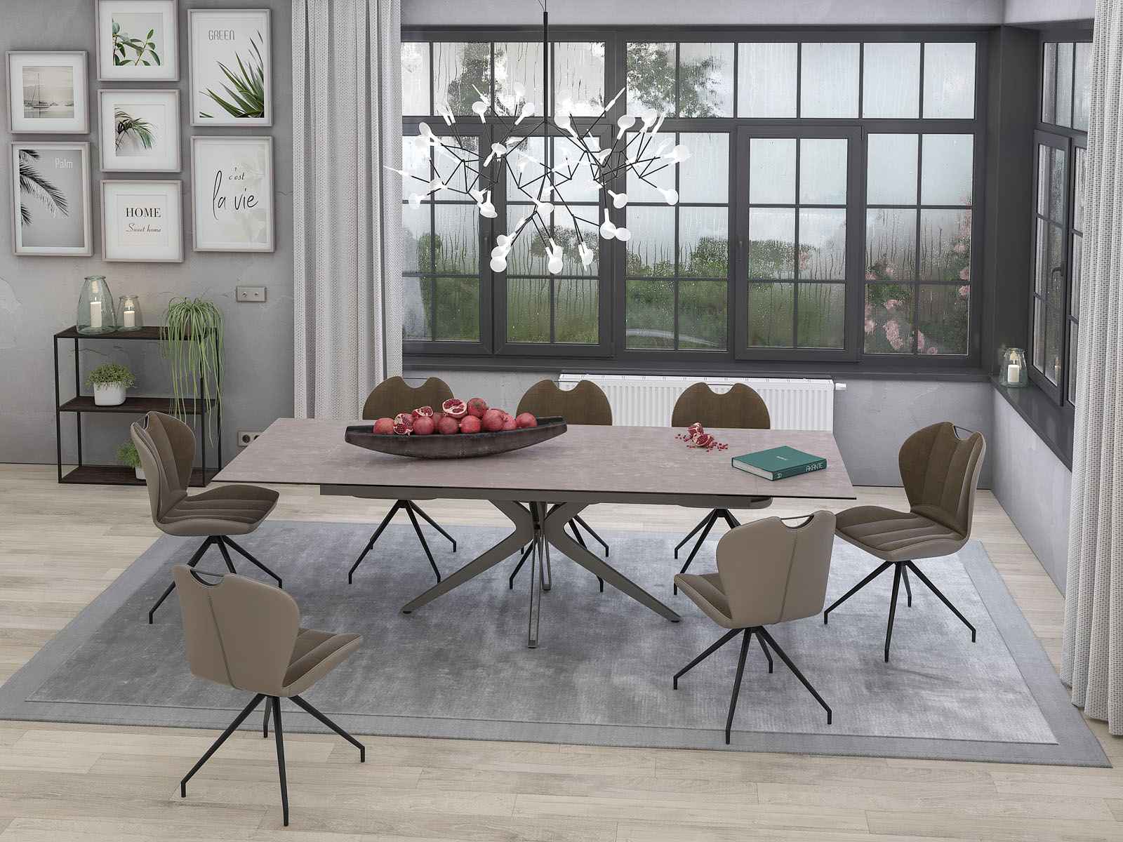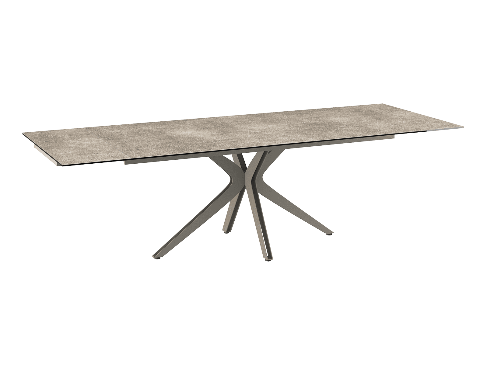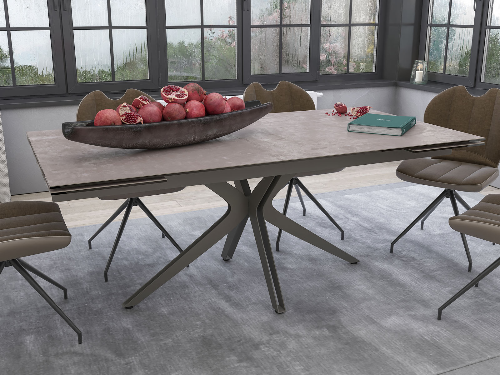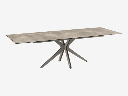 La table Influence en céramique argile est une table de repas familiale rectangulaire de 190 cm de long. Pratique pour accueillir vos convives, vous pouvez l'agrandir en déployant simplement ses deux rallonges de 40 cm en bout de table et d'obtenir une grande table de 270 cm. Son piétement en acier gris taupe est à la fois original et doux avec son design en étoile qui lui procure une excellente stabilité. Son plateau est en céramique de 3 mm d'épaisseur collé sur un vitrage de 8 mm ce qui lui procurer une résistance à toutes les épreuves de la vie quotidienne. Elle est disponible en un large choix de coloris.