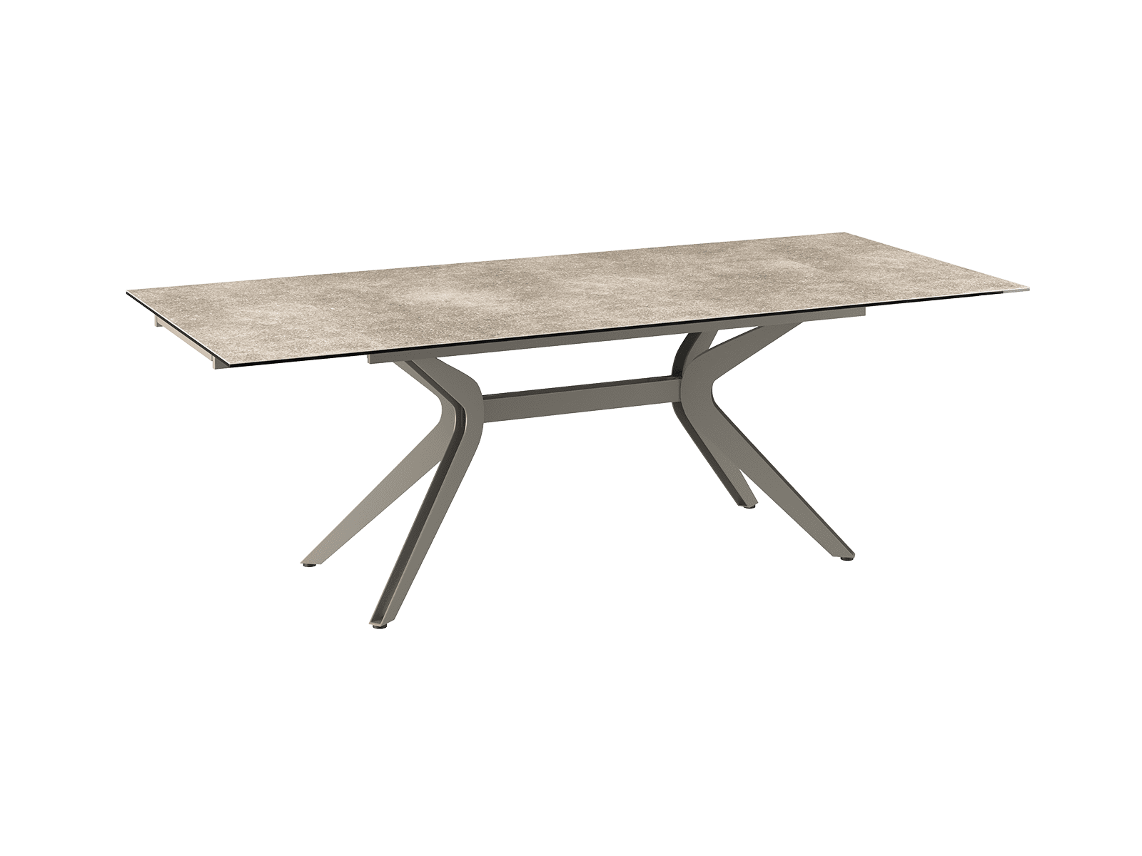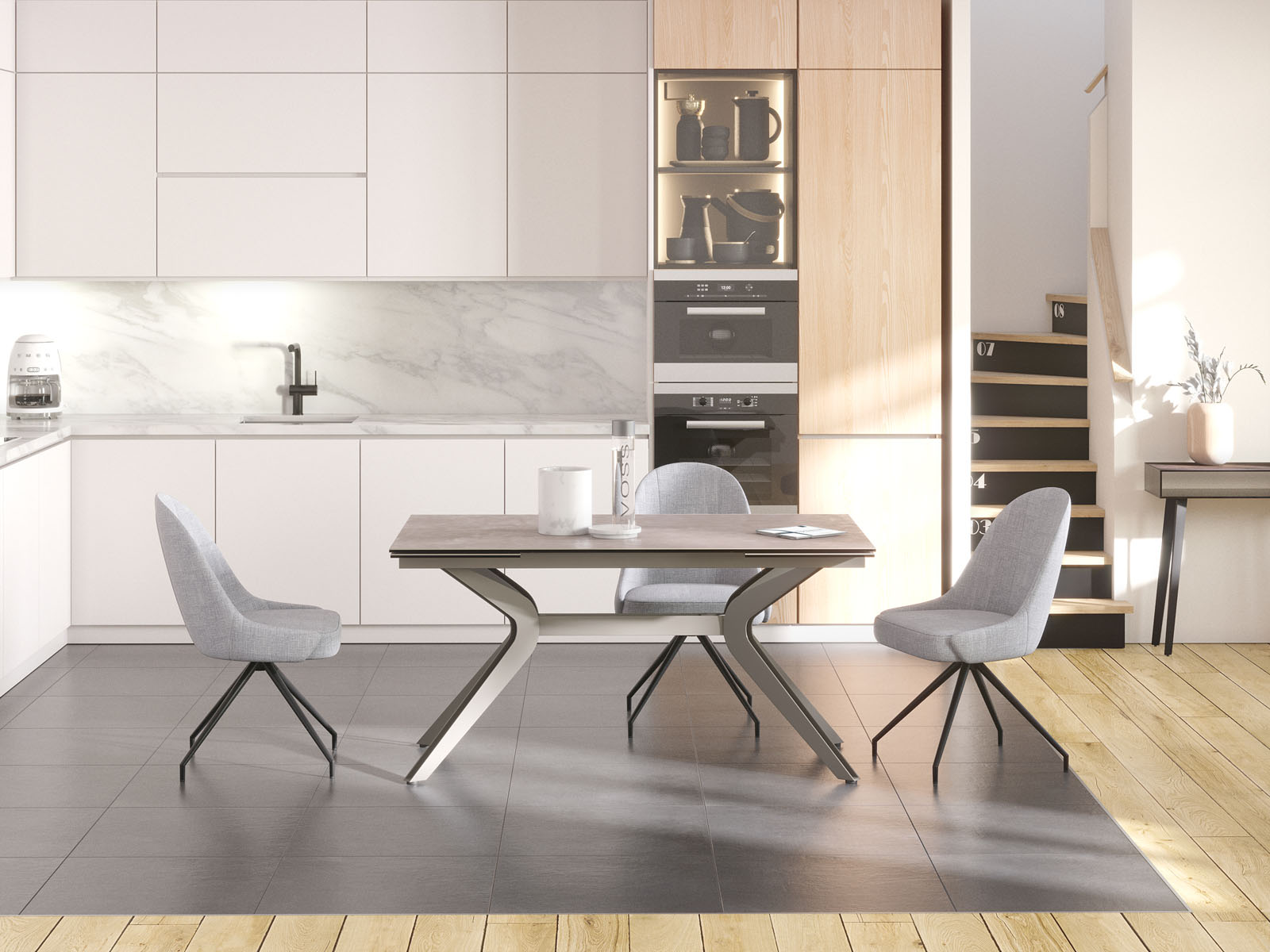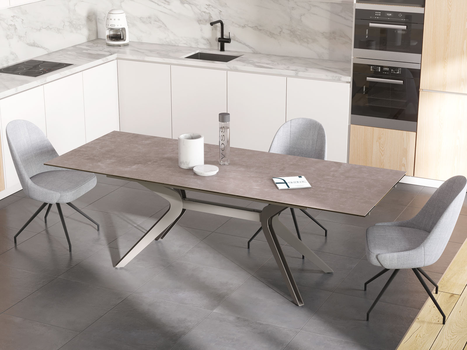 La grande table de repas Impulsion dynamisera votre séjour avec son piétement original en acier laqué gris taupe. Ses deux rallonges de 40 cm à chaque extrémité de la table vous permettent d’avoir une table de 150 cm à 230 cm aisément, pratique pour des repas conviviaux. Sa céramique de 3 mm d’épaisseur est collée sur un vitrage de 8 mm afin de vous assurer une vraie durabilité.