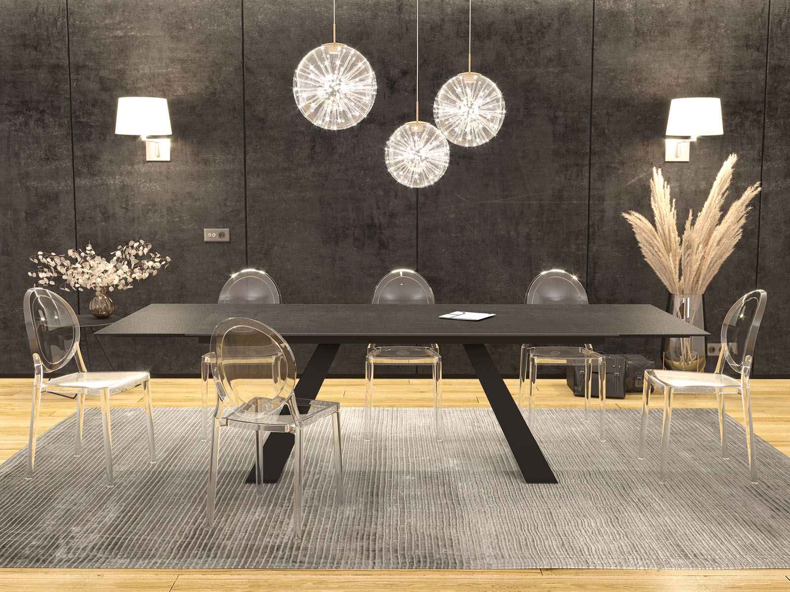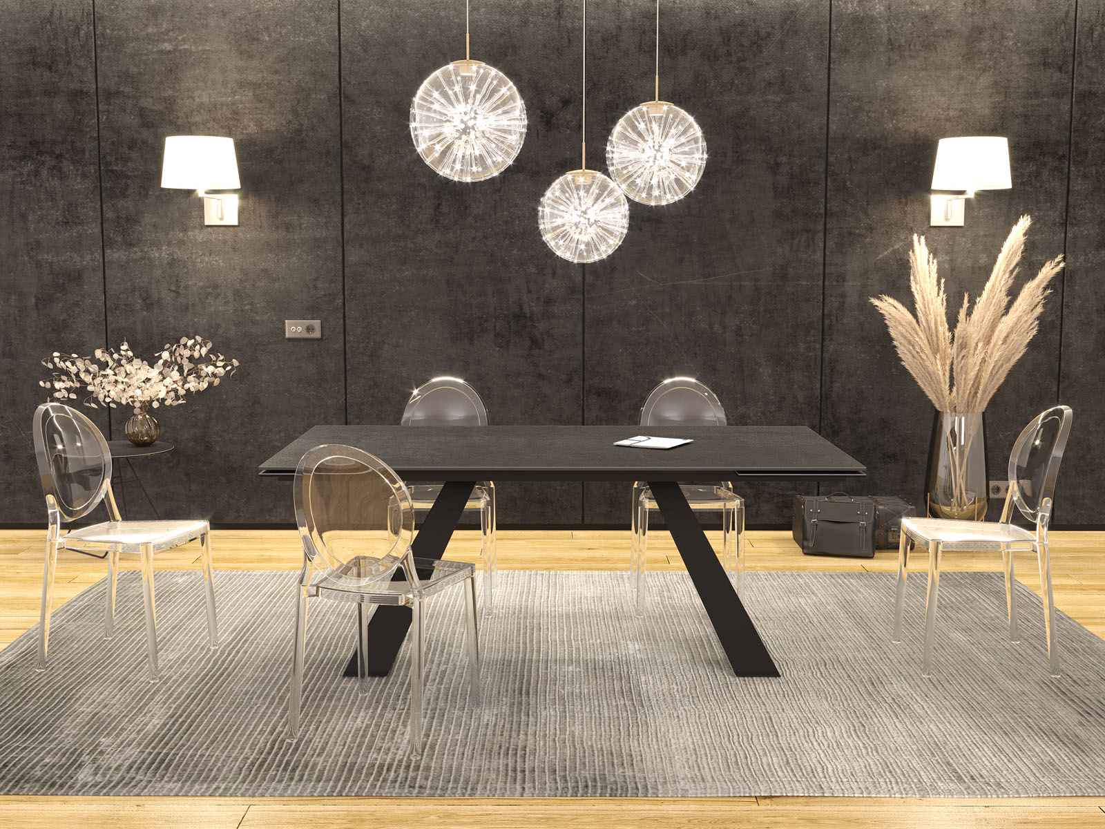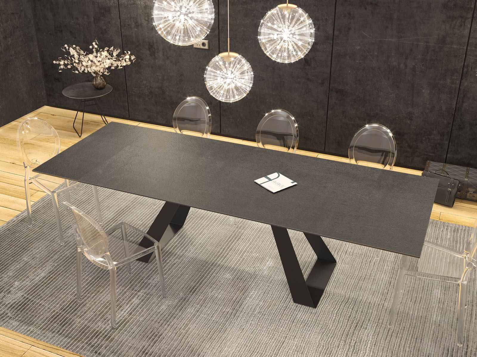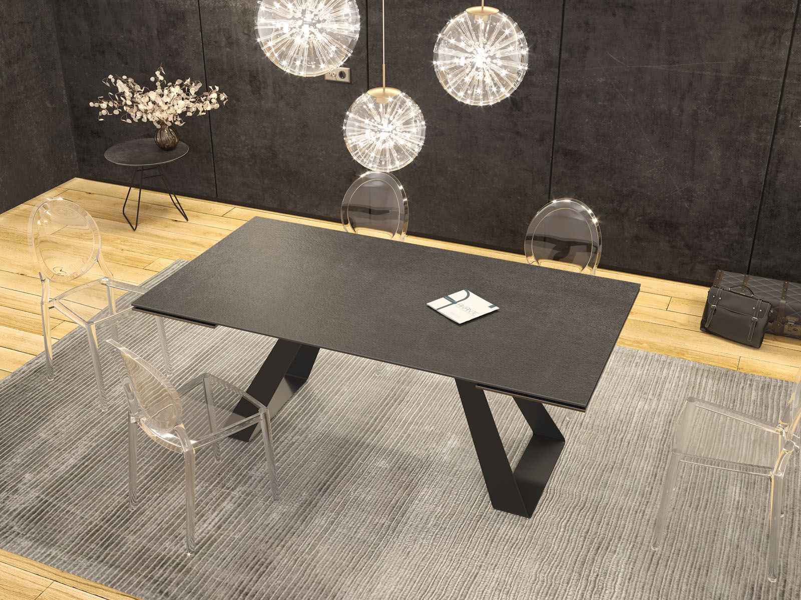 Nouveau : une table de repas qui révolutionnera vos dîners par son élégance et son style. La table de repas Ascension saura vous satisfaire grâce à son joli piètement de forme triangulaire et sa céramique titane pour un total look charbon et élégant. Ses deux rallonges logées sous la table vous permettront d’organiser des dîners en toute convivialité.