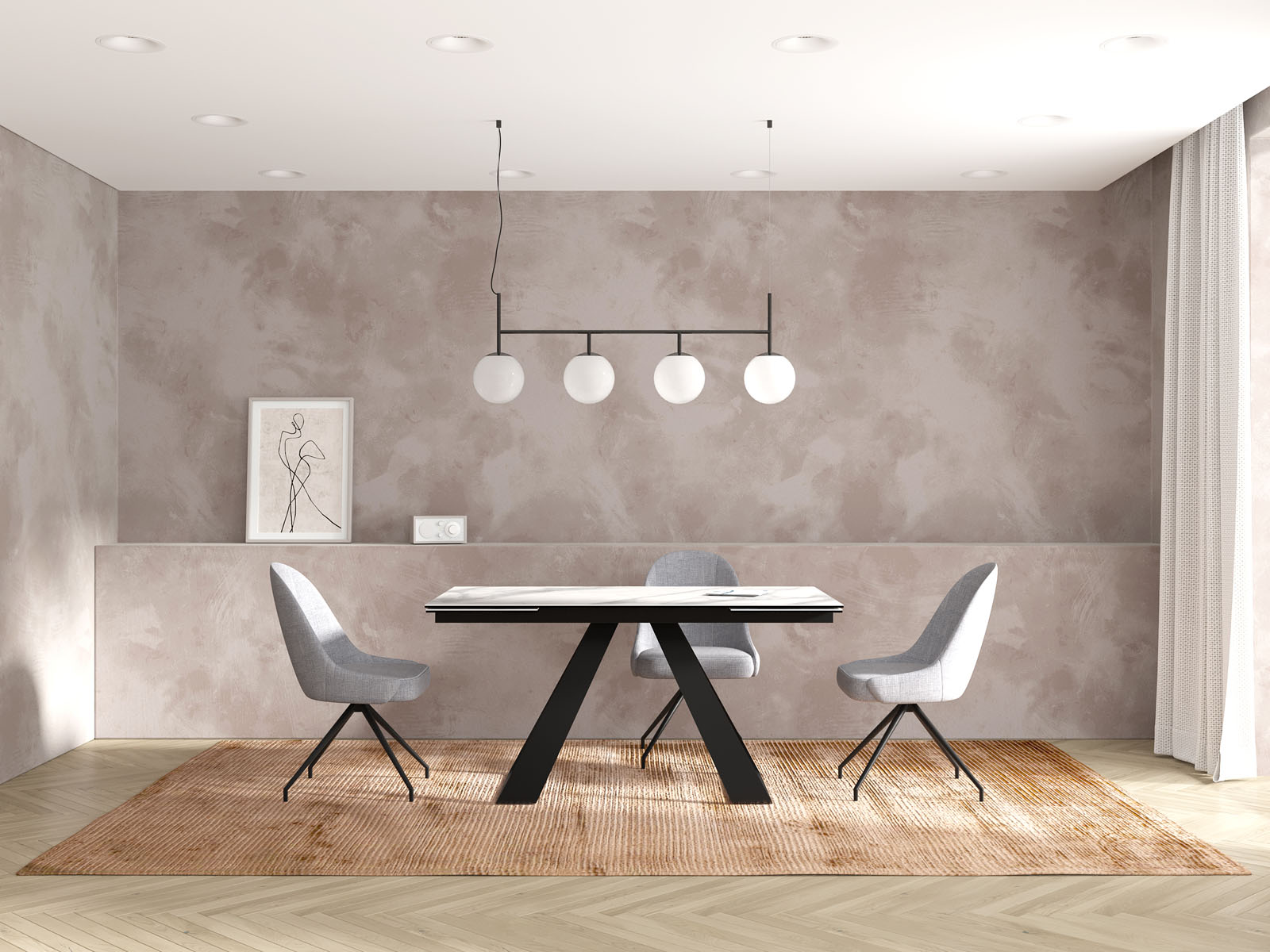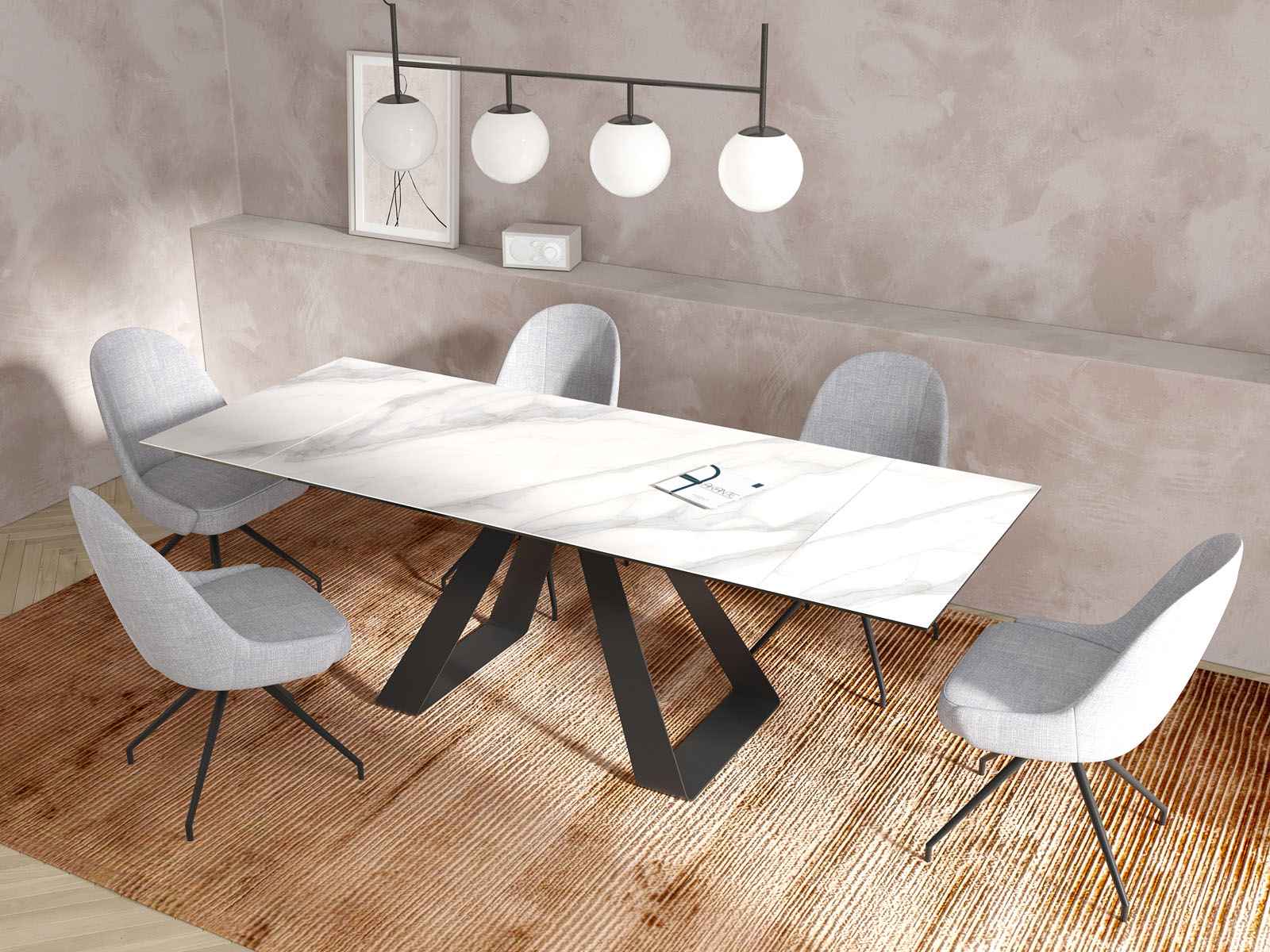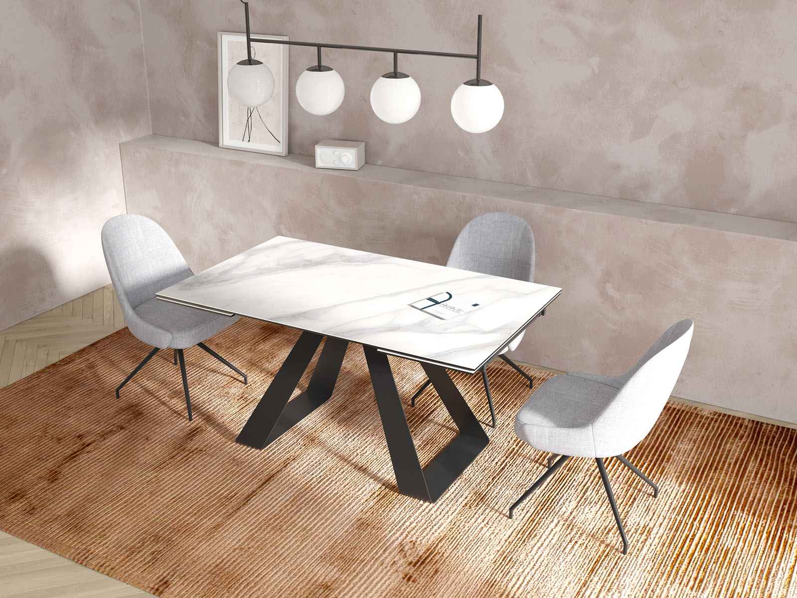 Apportez des airs de loft urbain à votre intérieur avec la nouvelle table de repas Ascension et son design original et élégant. L’avantage de la table est dans ses 2 rallonges qui permettent d’agrandir la table jusque 2 m 30 de long pour des dîners conviviaux. La céramique mesure 3 mm d’épaisseur et est collé sur un vitrage de 8 mm pour une solidité à toute épreuve.