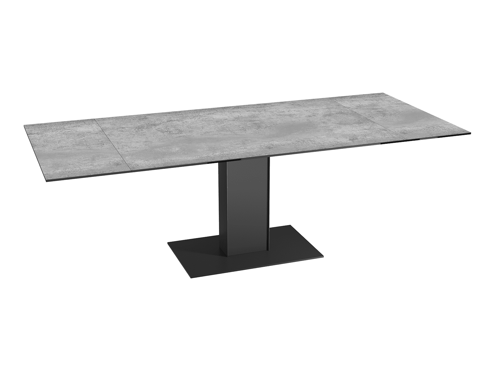 Avec son plateau en céramique silver et sa forme rectangulaire, la table de repas CONNEXION vous plaira par sa simplicité et sa couleur lumineuse. La céramique fait 3 mm d’épaisseur et est collée sur un vitrage de 8 mm. La table de repas CONNEXION présente des lignes graphiques, lui permettant de s’intégrer dans un grand nombre d’espaces. La table CONNEXION possède une taille importante, pouvant accueillir un grand nombre de personnes. Le pied unique en acier laqué noir de la table de repas CONNEXION apporte un côté industriel et il mesure 76 cm de hauteur.
