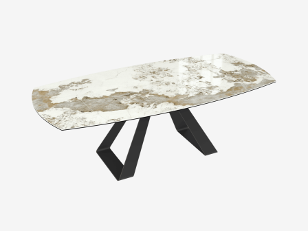 La table de repas Michigan est une pièce maîtresse élégante et conviviale à avoir dans son intérieur. Dotée de deux rallonges latérales de 40 cm, cette table vous permet de passer d’une surface de 150 x 110 cm à une surface de 230 x 110 cm. Cette table peut accueillir jusqu’à 6 personnes lorsque les rallonges sont fermées et 8 à 10 personnes lorsque les rallonges sont ouvertes. Son plateau est conçu en céramique Marbre Calcatta de 6 mm, collée sur un verre de 8 mm. Son élégant piétement évasé à la forme triangulaire, est conçu en acier laqué noir mat, il assure robustesse et stabilité.