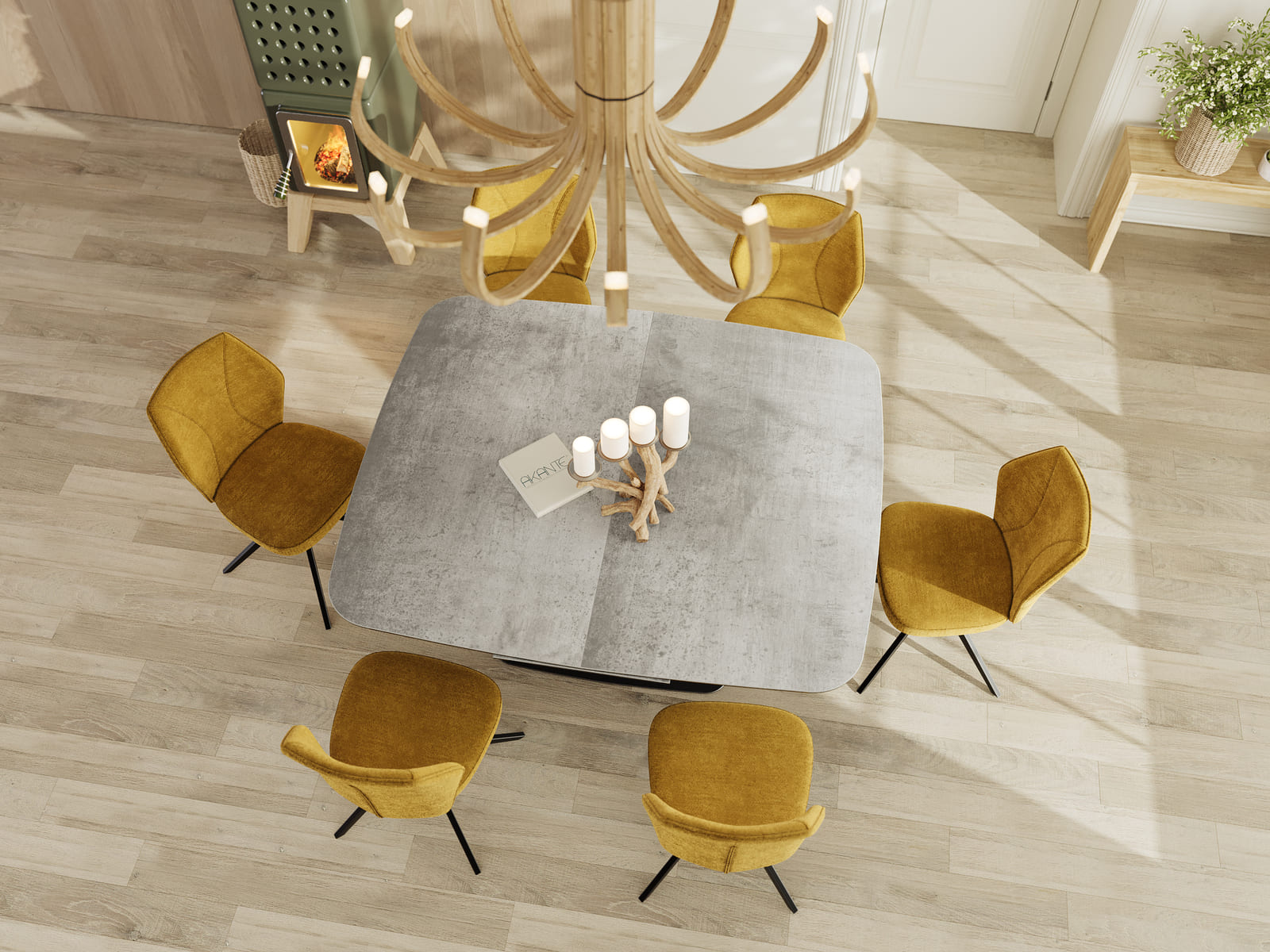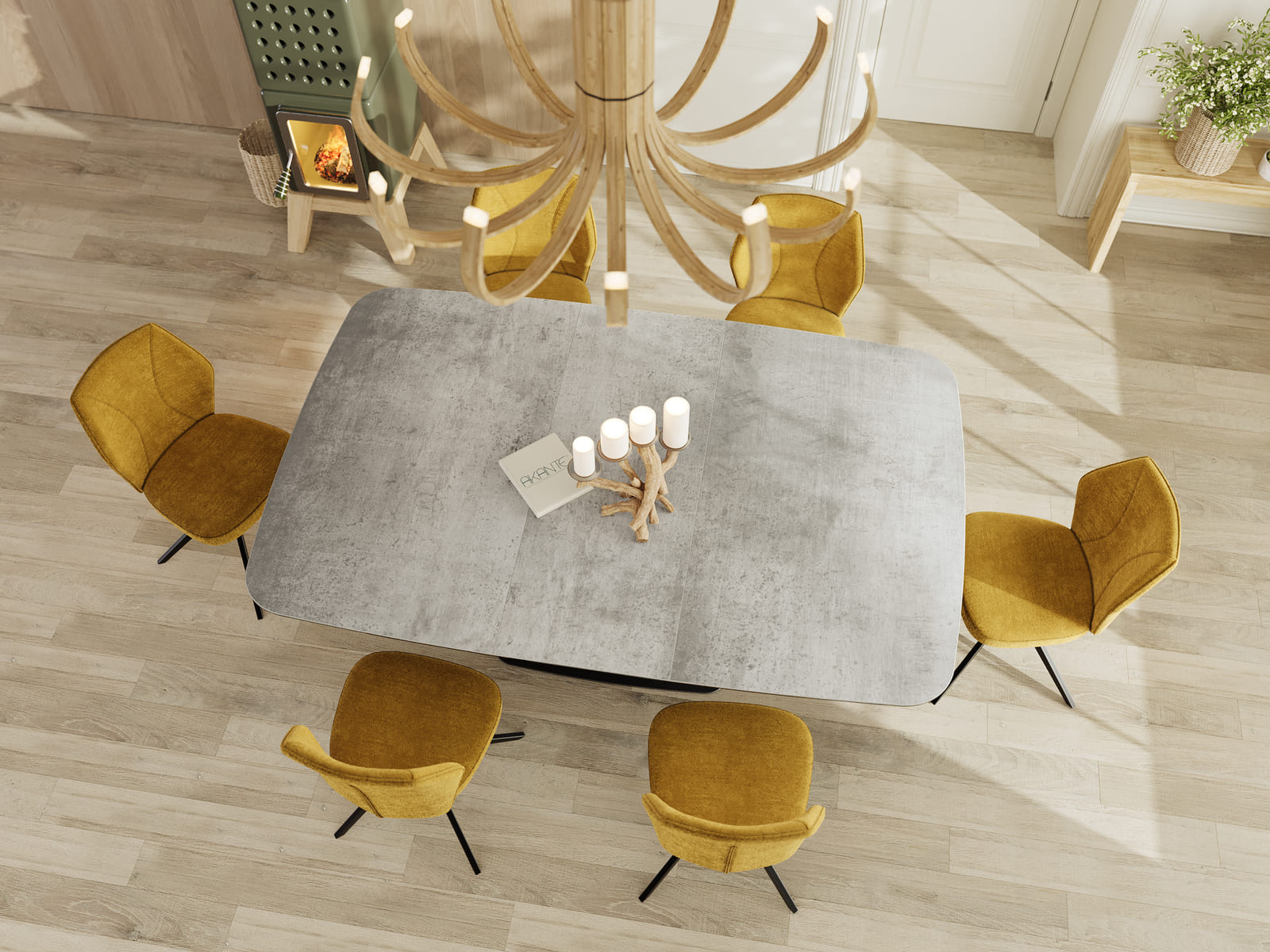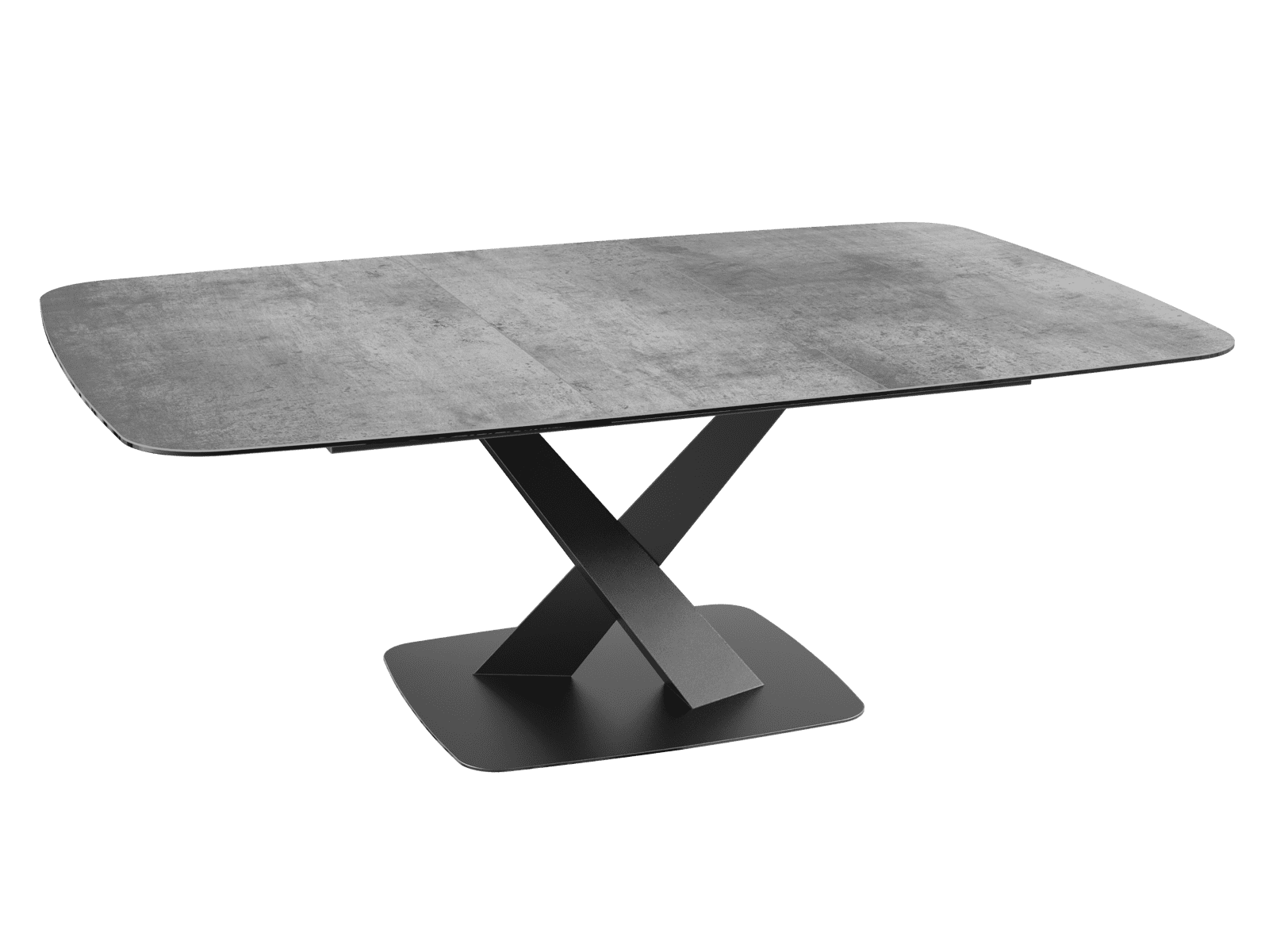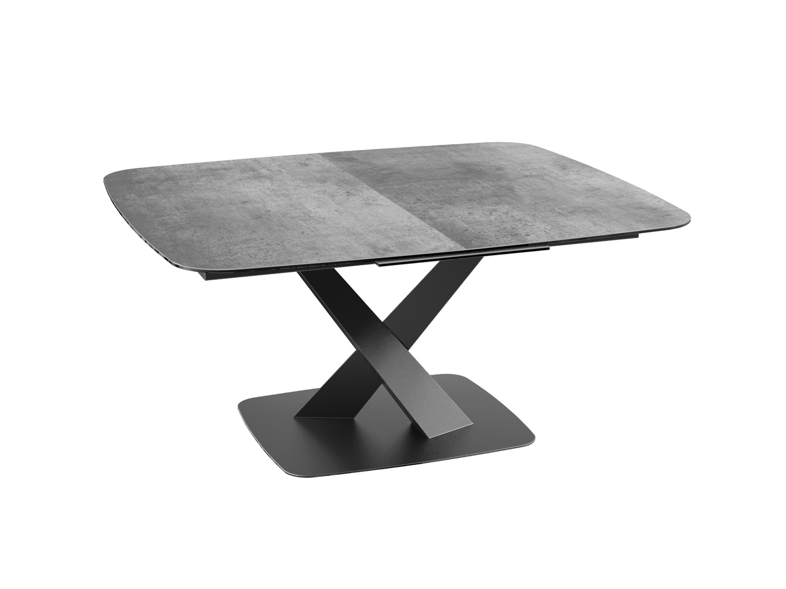 Découvrez la nouvelle collection de table de repas Santiago. Sa particularité réside dans son extension de 50 cm de largeur. Le principe est simple, il suffit de tirer le plateau sur le côté pour faire apparaitre cette extension. Passez d’une table de 160 cm de long sur 135 cm de large, à une table de 210 cm de long sur 135 cm de large. Cette collection se décline en 7 finitions de céramique. Le modèle présenté est en céramique Silver de 3 mm collée sur un verre de 8 mm. Son piétement contemporain et original, est conçu en acier laqué noir mat.