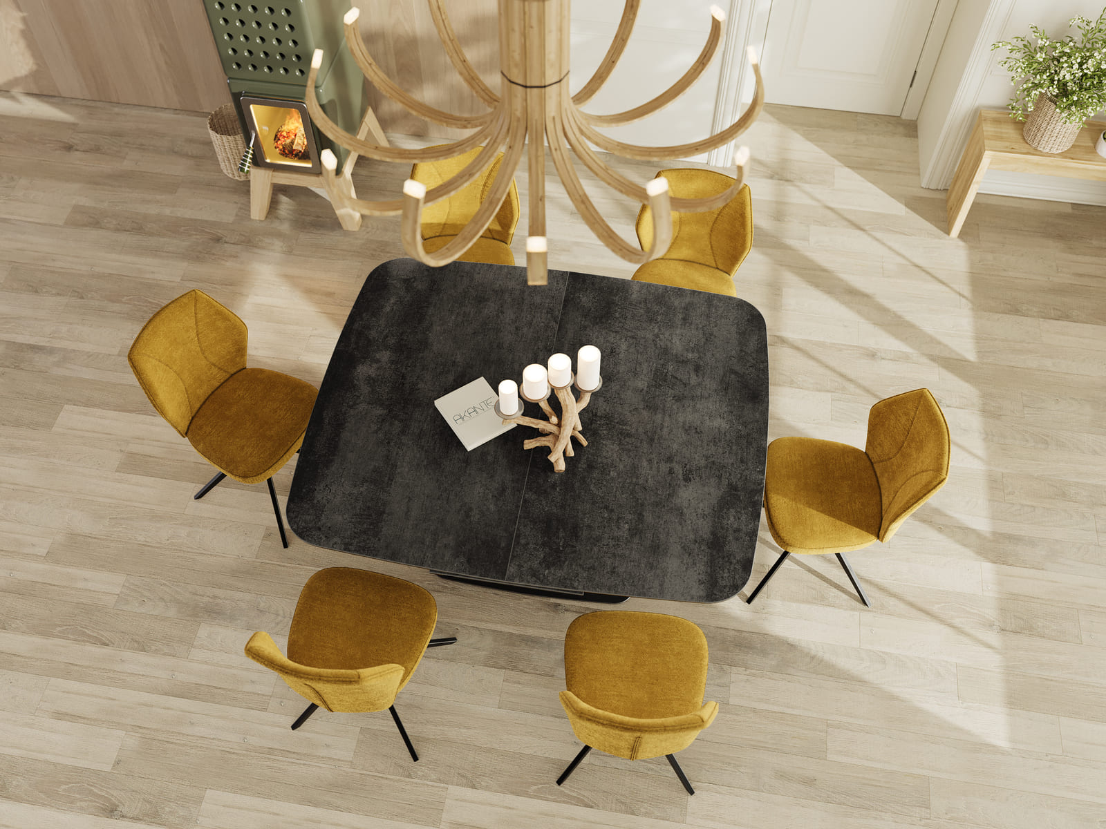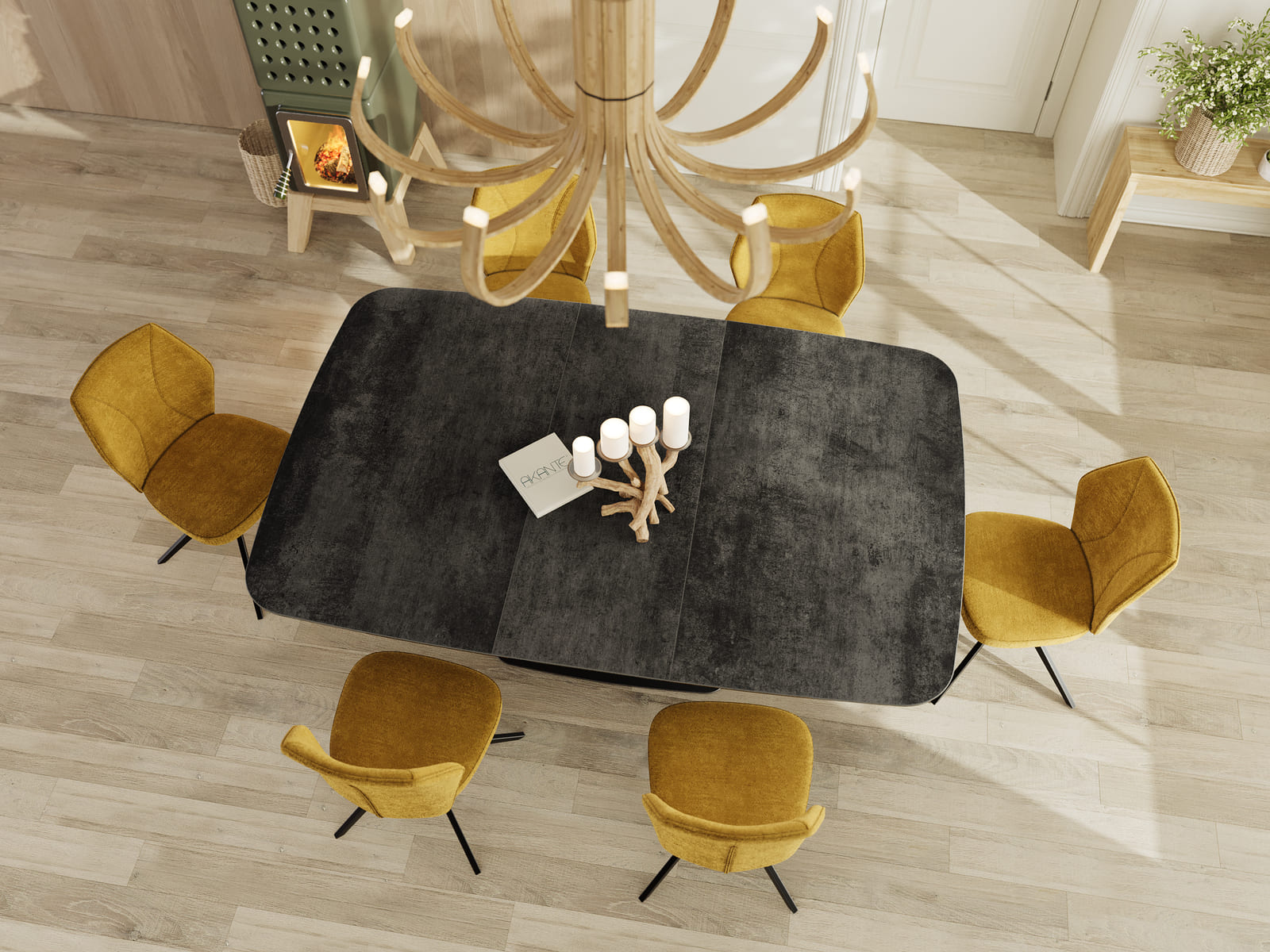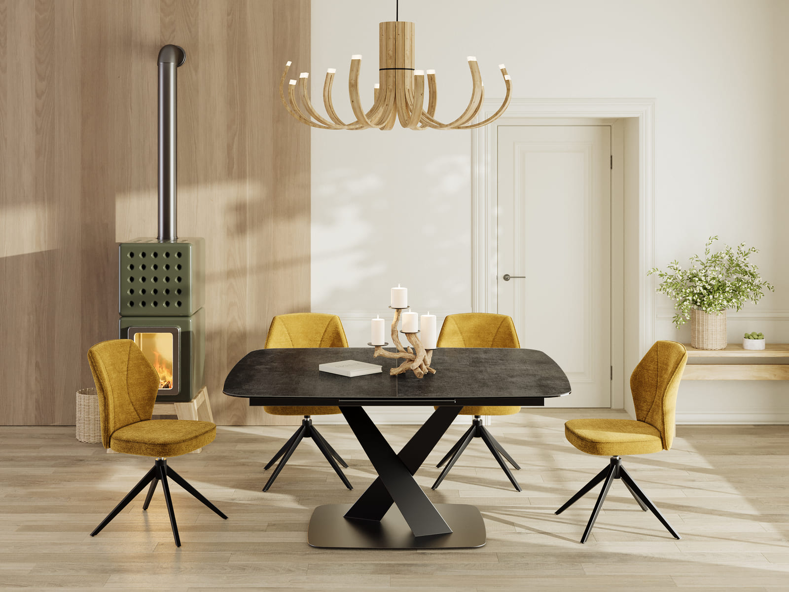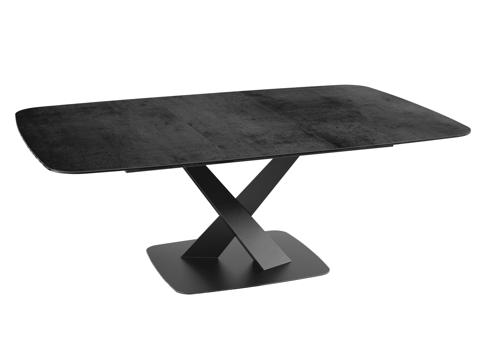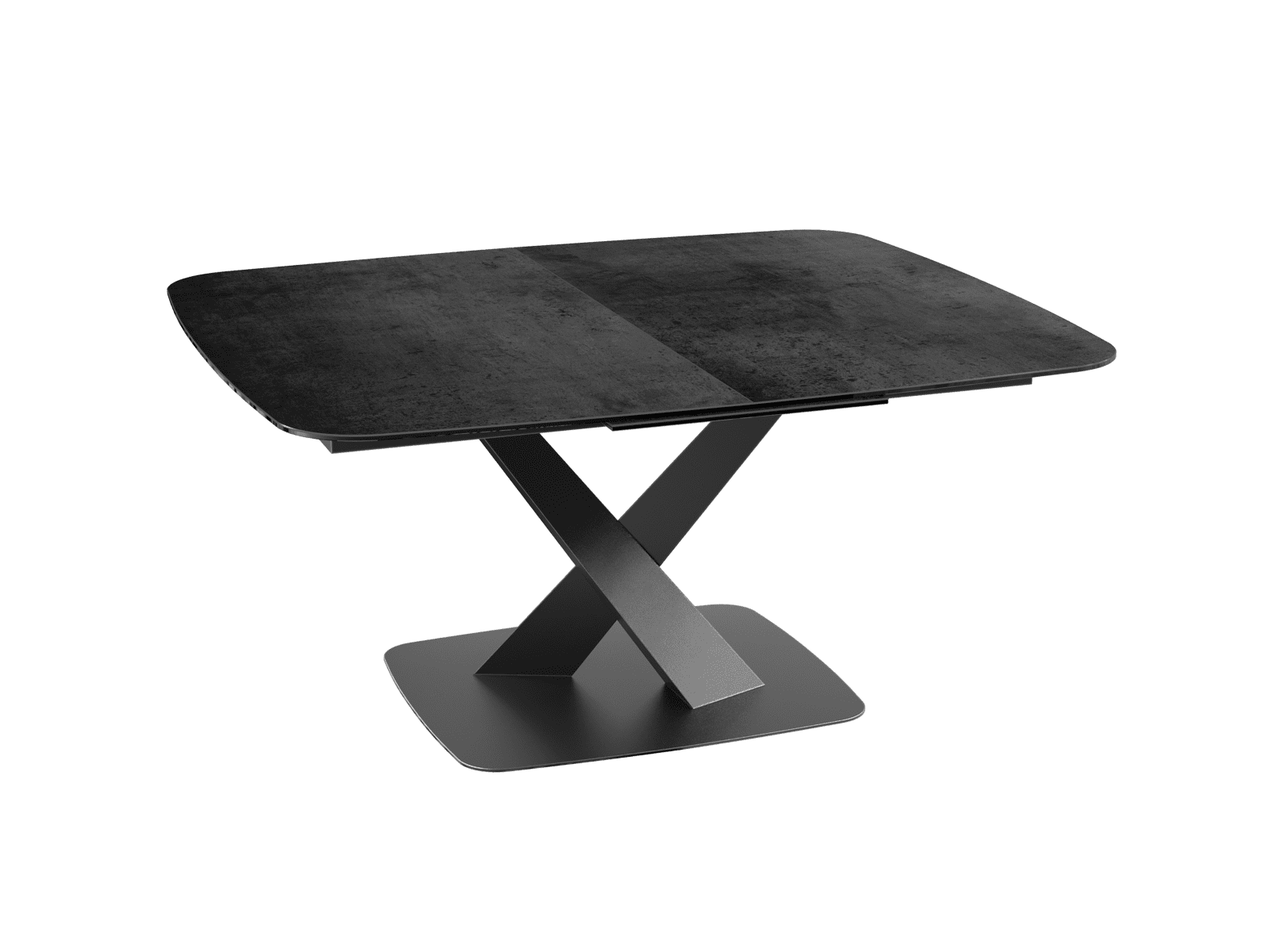 Découvrez Santiago, la nouvelle table de repas au design innovant. Dotée d’une audacieuse rallonge centrale de 50 cm de large, atteignez une surface de 160 cm x 135 cm (extension fermée) jusqu’à 210 cm x 135 cm (extension ouverte). Cette table de repas est présentée en céramique Titane de 3 mm collée sur un verre de 8 mm. Son élégant piétement croisé est conçu en acier laqué noir mat.