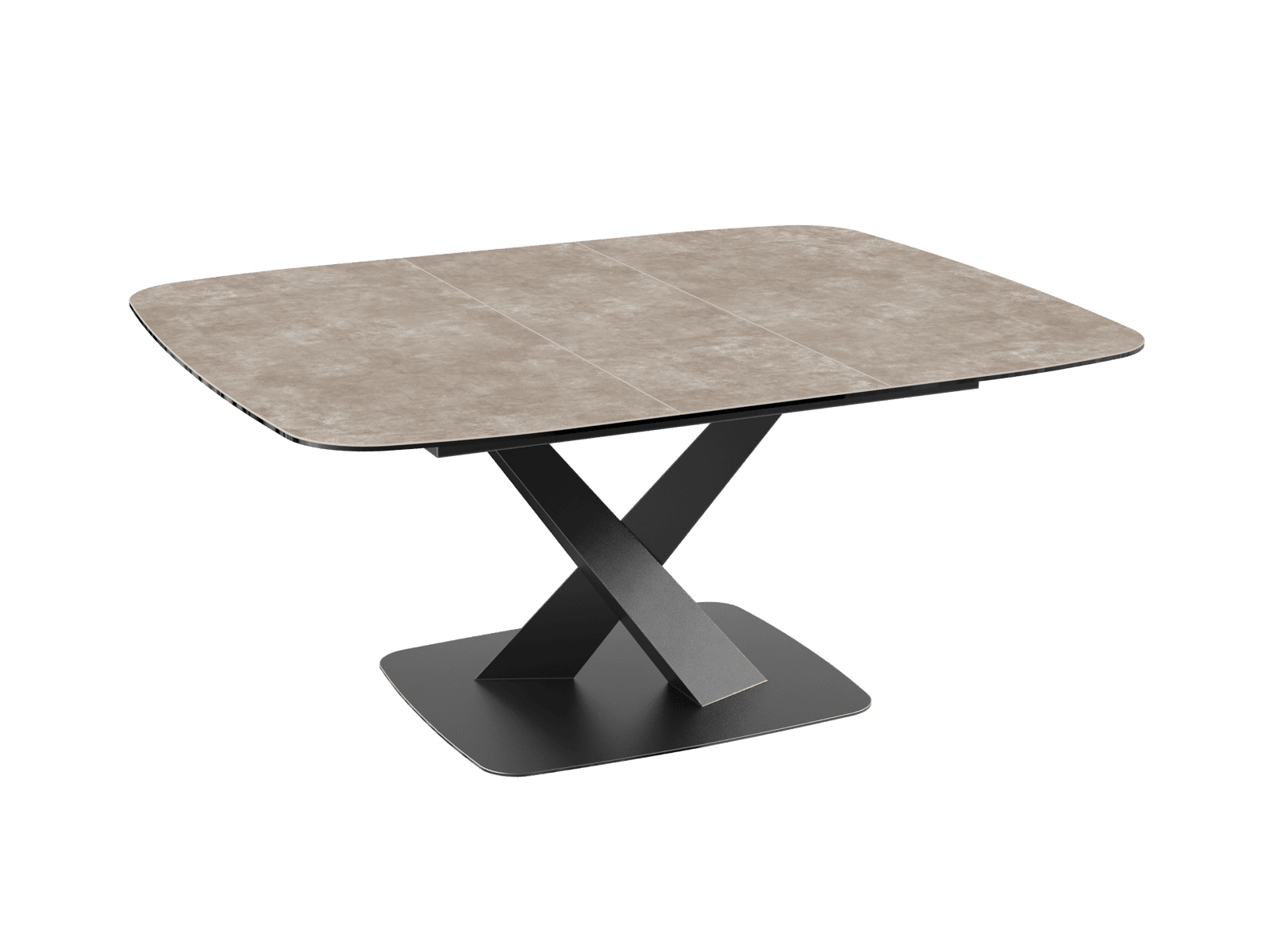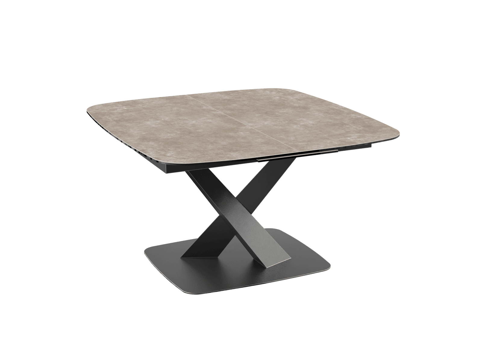 Découvrez notre nouveauté, la table de repas Santiago. Sa particularité réside dans son plateau extensible, à l’aide d’une rallonge centrale automatique. Son principe est simple, il vous suffit de tirer le plateau sur le côté pour faire apparaitre son extension. Passez d’une table carrée de 135 cm de chaque côté, à une table rectangulaire de 175 cm de long. Son plateau est conçu en céramique Argile, de 3 mm collée sur un verre de 8 mm. Le piétement de ce modèle est contemporain et singulier, il est conçu en acier laqué noir mat.
