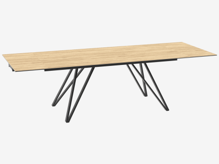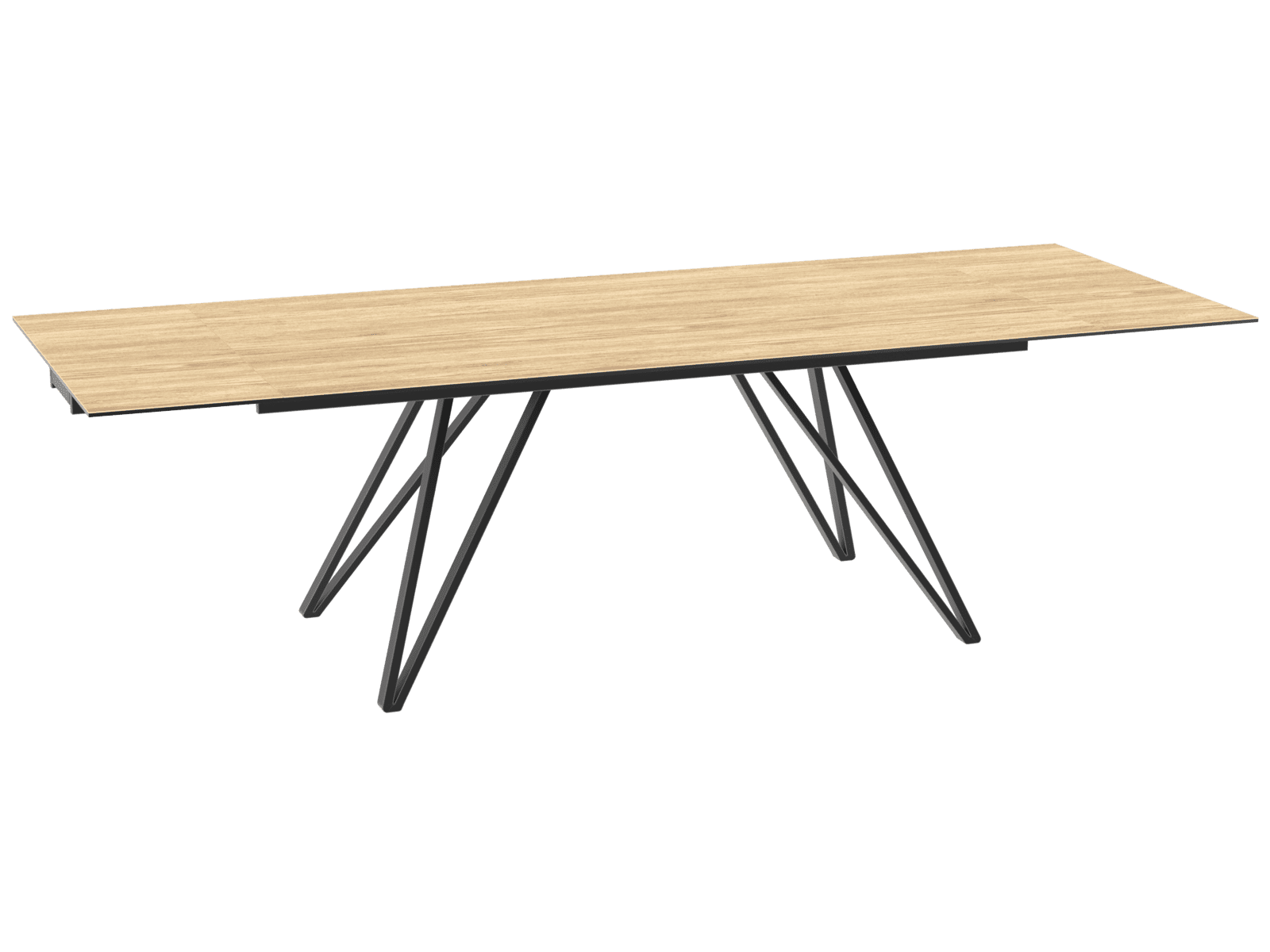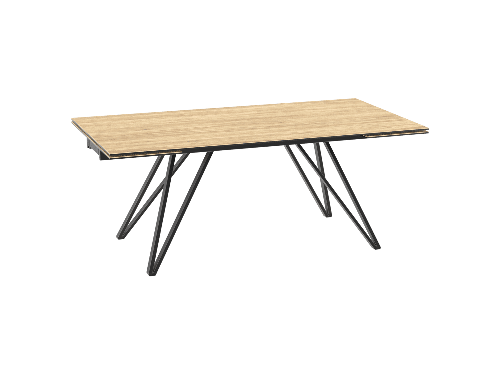 La table de repas Kentucky incarne la fusion harmonieuse entre la beauté naturelle du chêne clair et le design moderne. Cette table de repas de 190/270 x 100 x 76 cm possèdent des rallonges latérales qui ajoutent une fonctionnalité intelligente. Son plateau en céramique d’une épaisseur de 3 mm collé sur un verre de 8 mm vous assure une forte solidité. Son piétement ajouré est en acier laqué noir mat.