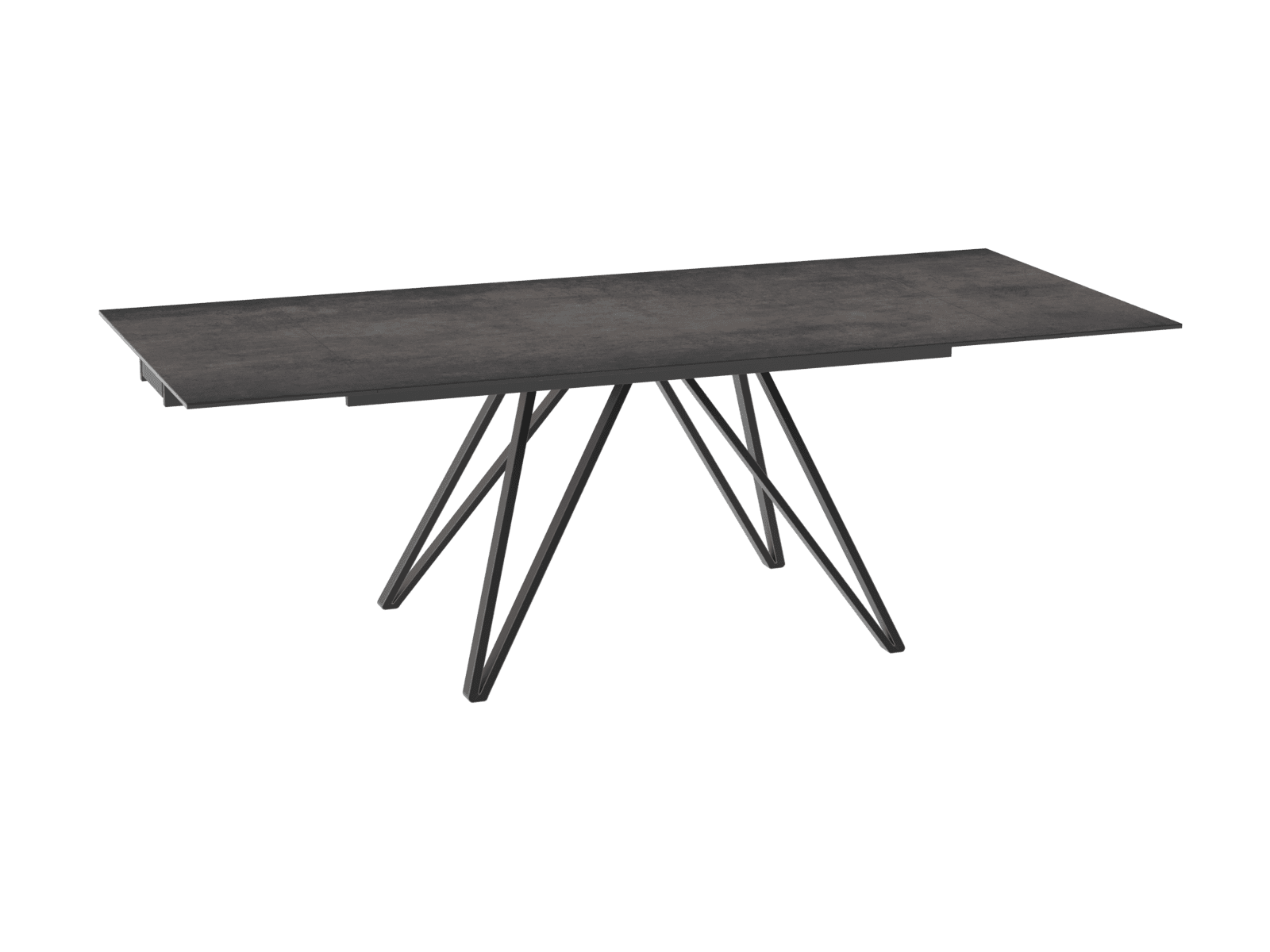 La table de repas Kentucky marie l’esthétique industrielle au design contemporain. Résistants et élégants, le plateau en acier et le piétement ajouré en acier laqué noir mat ajoutent une touche de modernité brute à votre espace. Sa céramique de 3 mm d’épaisseur est collée sur un verre de 8 mm pour garantir plus de résistance. Passez de 150 cm à une longueur de 230 cm avec cette table de repas extensible grâce à ses rallonges latérales.