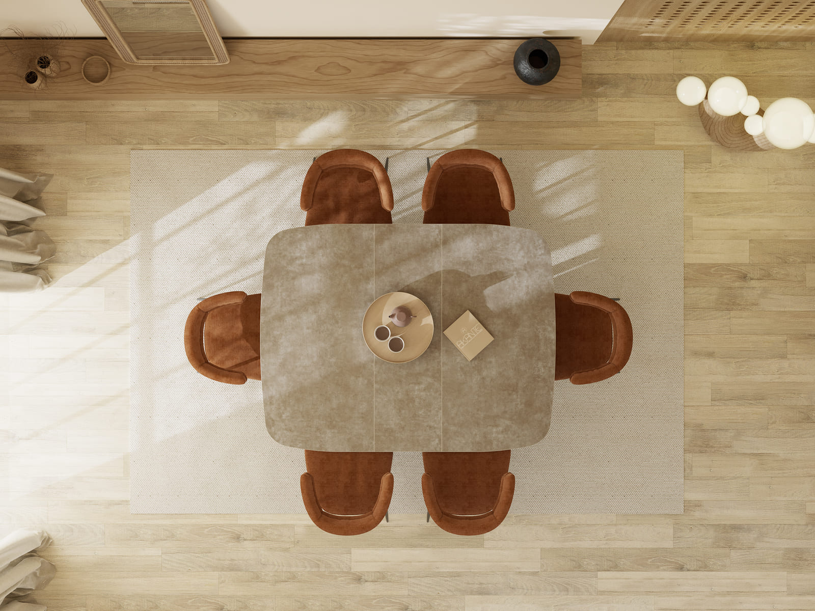 Nouveauté chez Akante ! Découvrez Mexico, une table de repas qui allie fonctionnalité et élégance. Dotée d’une rallonge centrale de 40 cm, vous pouvez transformer votre plateau carré de 135 cm de chaque côté en un plateau rectangulaire de 175 cm de long. Le principe est simple, il suffit de tirer le plateau sur le côté pour faire apparaitre l’extension. Cette collection est disponible en 7 finitions de céramique, ce modèle présenté est en céramique effet Argile de 3 mm, collée sur un verre de 8 mm. L’élégant piétement élancé est conçu en acier laqué noir mat.