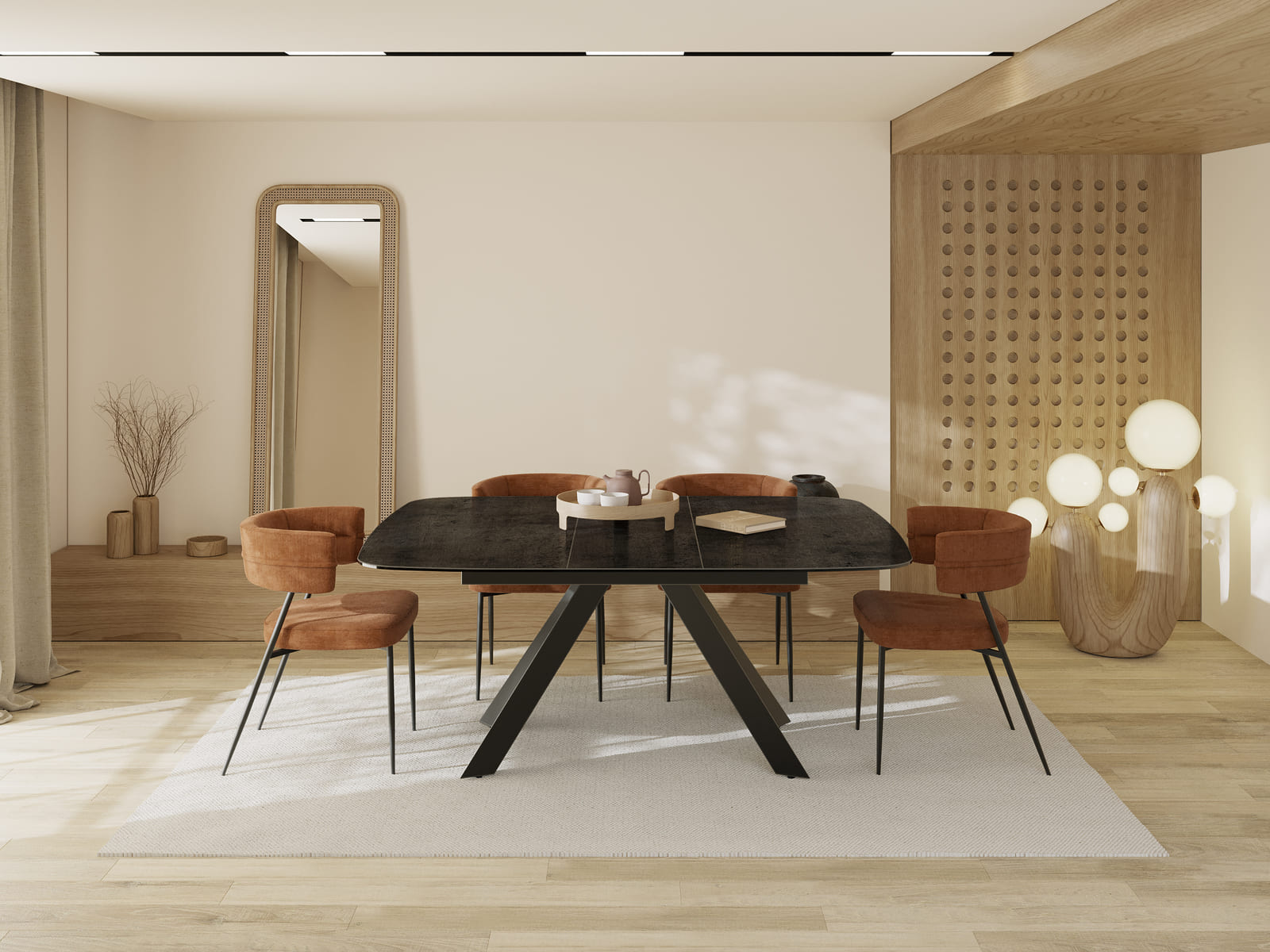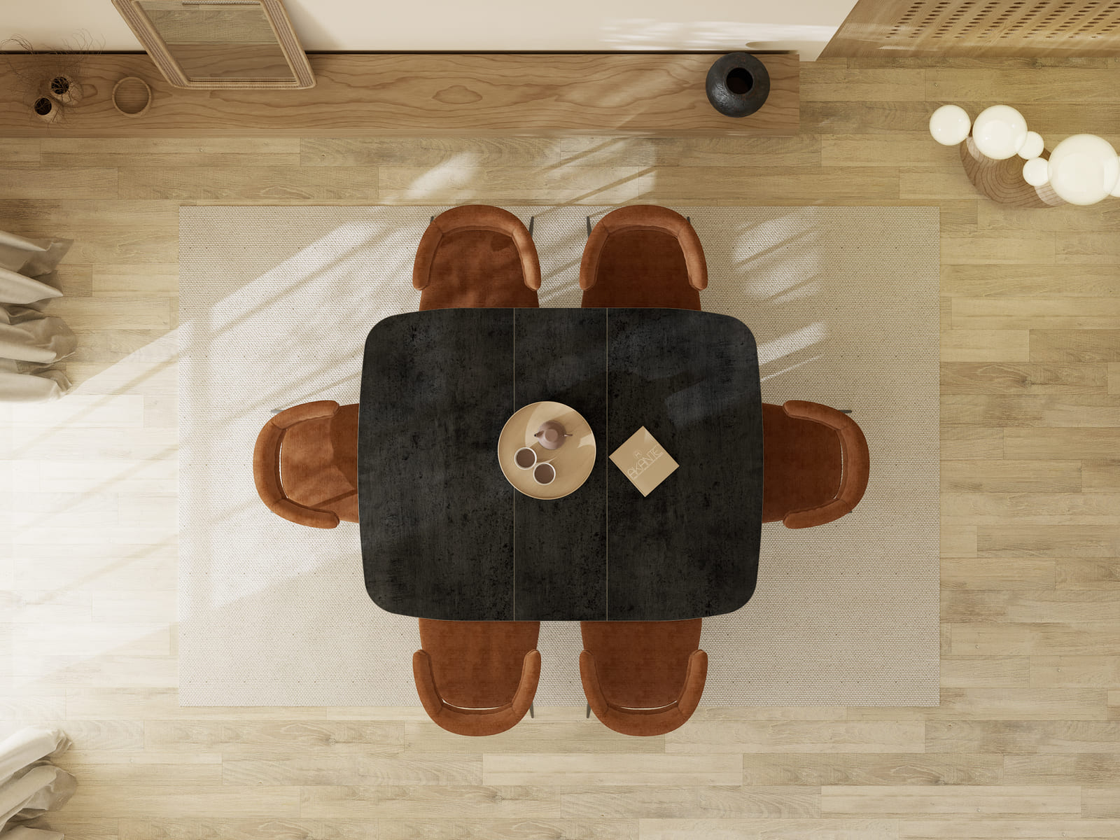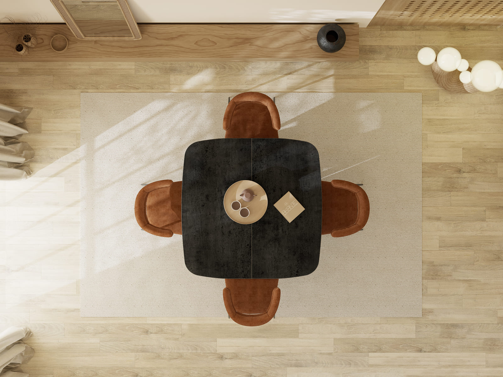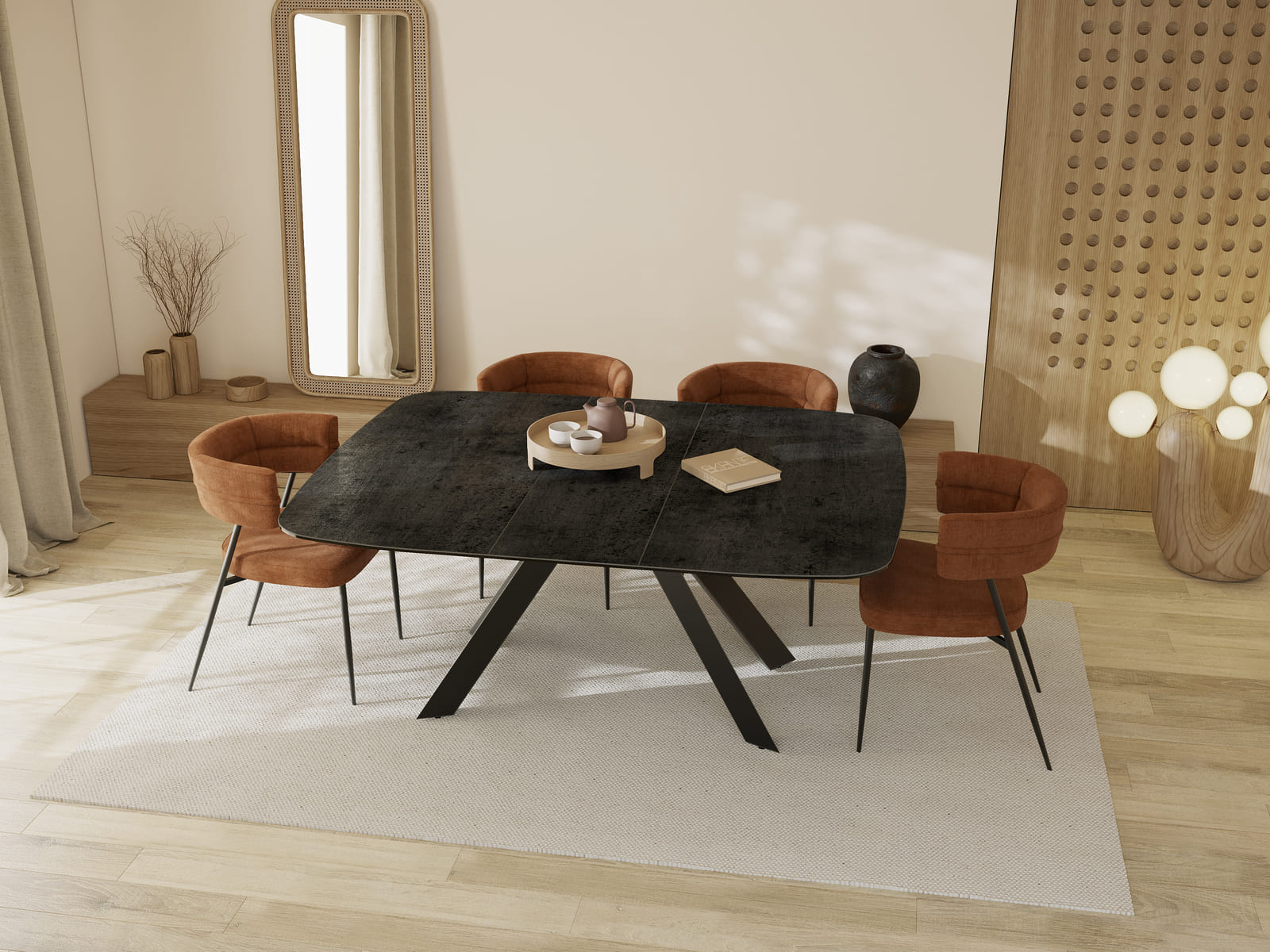 Nouveauté chez Akante, la table de repas Mexico au format carré de 135 cm. Idéale pour les espaces restreints, cette table de repas est dotée d’une rallonge centrale de 40 cm qui permet d’élargir la longueur du plateau jusqu’à 175 cm. Accueillez 8 convives autour pour un repas convivial. Son plateau est en céramique Titane de 3 mm collée sur un verre de 8 mm d’épaisseur. Admirez son élégant piétement élancé, conçu en acier laqué noir mat.