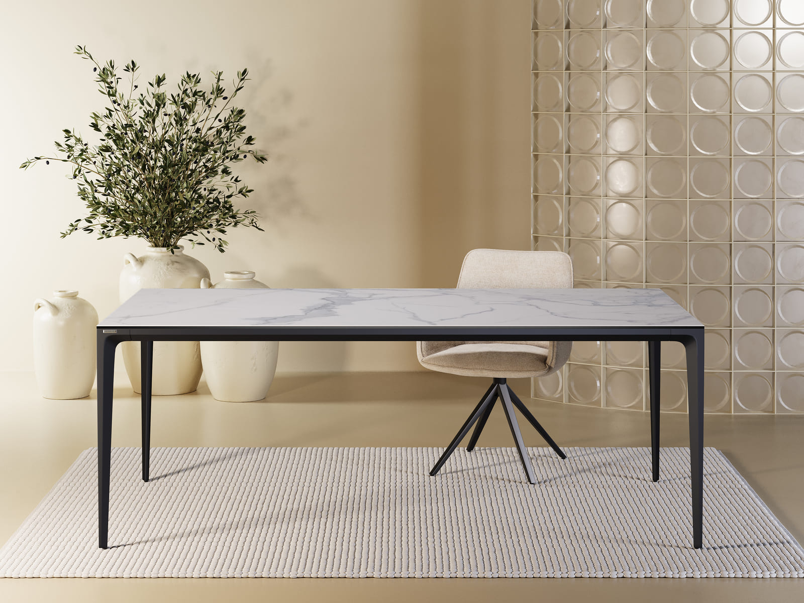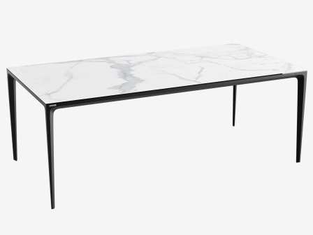 La table de repas Valencia revient avec des dimensions plus généreuses. Confectionnée avec des matériaux résistants, la table Valencia est faite pour durer. La céramique marbre apportera de la lumière à votre intérieur et confère une qualité remarquable à la table. Elle mesure 3 mm d’épaisseur et est collée sur un vitrage de 8 mm. Le piétement est en acier laqué noir et mesure 74 cm de hauteur.