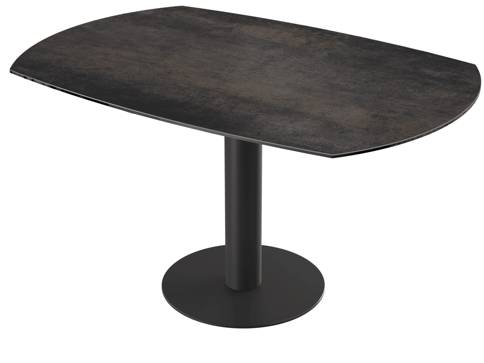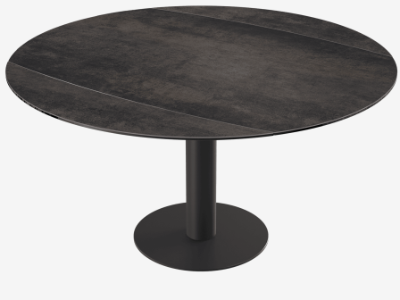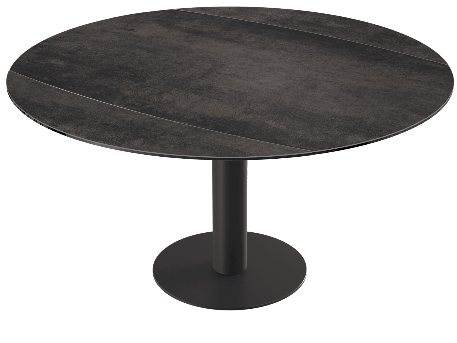Avec New Luna, l’ingéniosité est au service de l’élégance. Son plateau dévoile deux rallonges latérales de 25 cm grâce à un mécanisme breveté Akante. En un seul coup de main, le plateau passe de 100 x 150 cm à 150 cm de diamètre. Il offre une surface généreuse qui peut accueillir jusqu’à 8 convives. Ce modèle est conçu en céramique Acier de 3 mm, collée sur un verre de 8 mm. Son piètement cylindrique est conçu en acier noir mat.