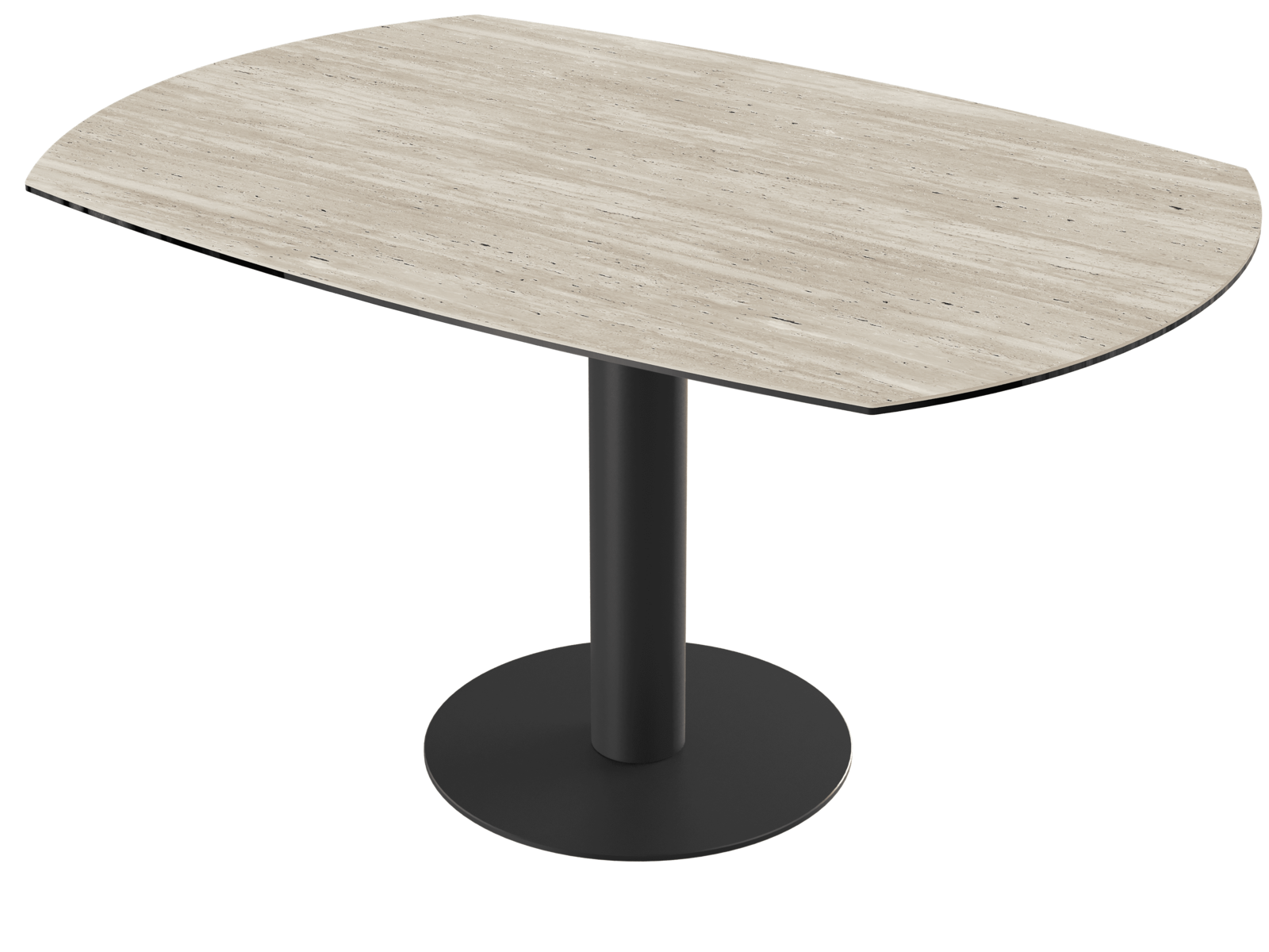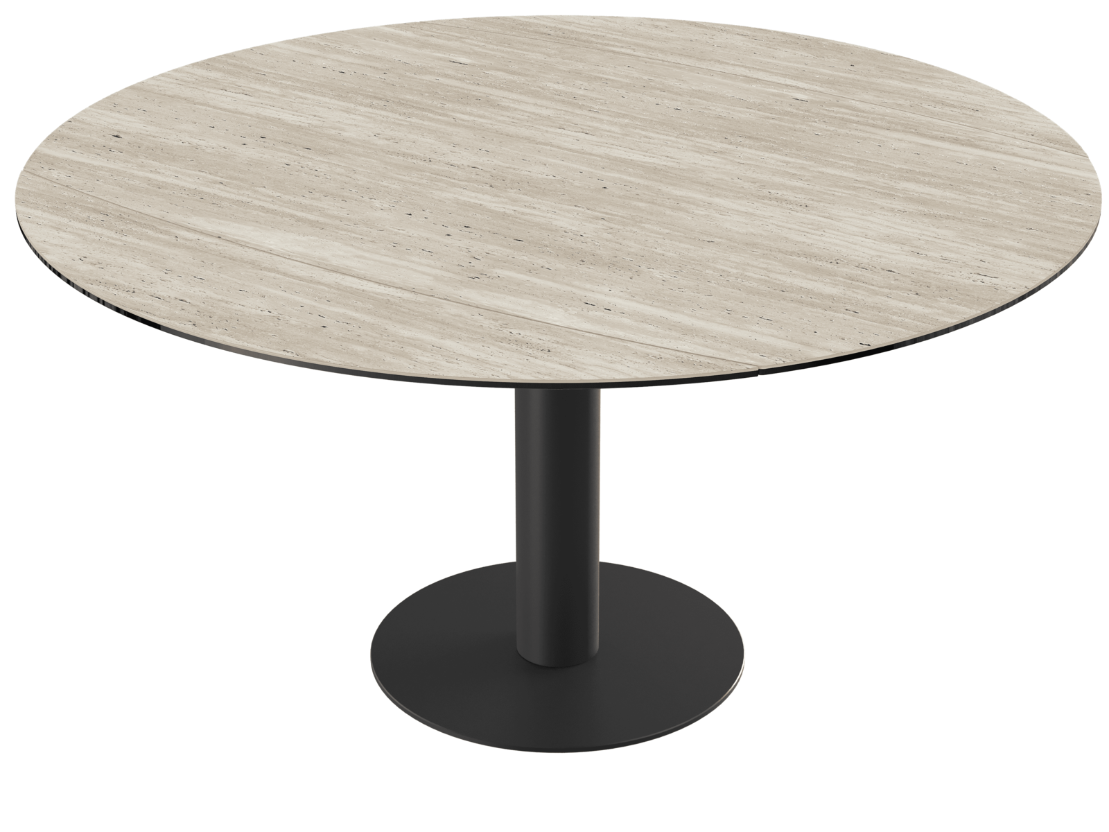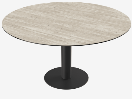 Le travertin évoque la chaleur des intérieurs méditerranéens. Découvrez cette nouvelle finition en céramique désormais disponible sur notre table de repas emblématique, la table Luna. Sa particularité réside dans son mécanisme breveté : Luna dispose d'un plateau rond de 150 cm de diamètre qui se transforme en un plateau au format tonneau de 150 cm de long sur 100 cm de large. Son piètement minimaliste et contemporain est conçu en acier laqué noir mat.