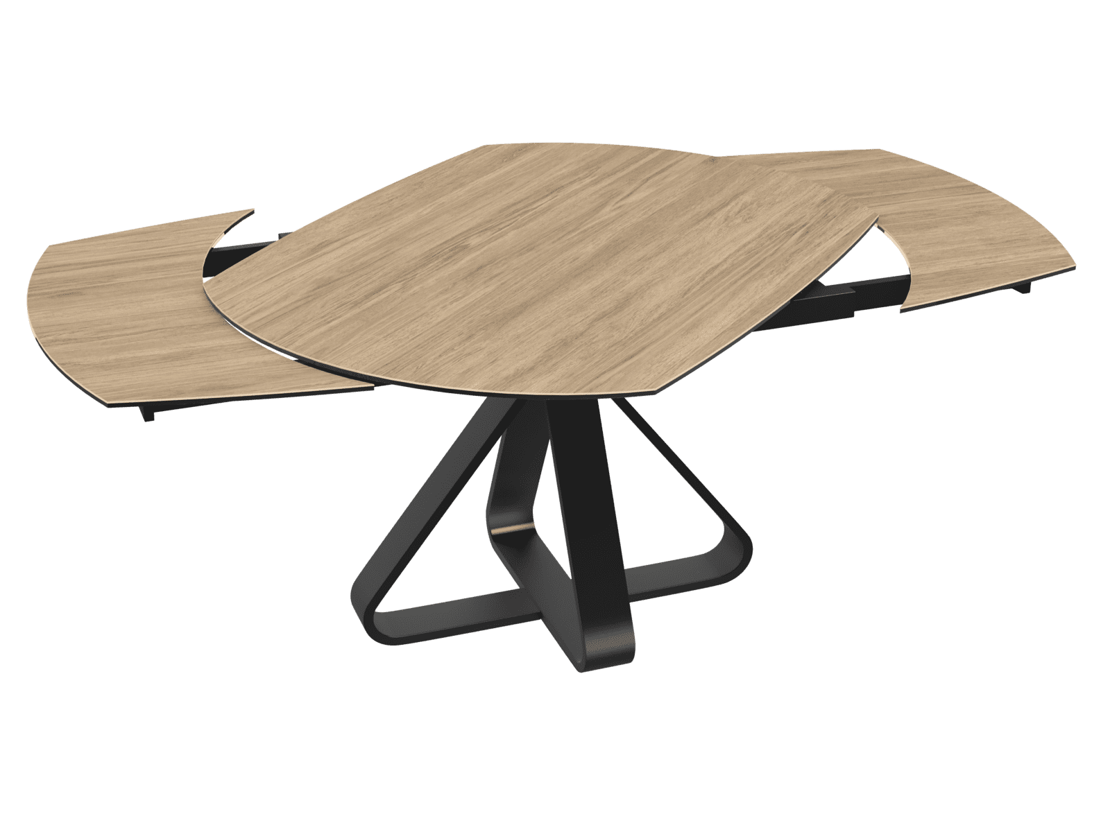 Cap sur les coloris intemporels avec la table de repas Napoli ! Un plateau en céramique Chêne Clair et un piètement en acier laqué noir mat : c’est la combinaison parfaite pour une table chic et contemporaine qui égayera vos repas. L’esthétisme de la table est présent dans les moindres détails, notamment dans la forme du piètement : original et moderne. En plus de son allure soignée, cette table est dotée d’un mécanisme qui vous permet d’agrandir sa longueur en un tour de main. Par une simple rotation du plateau principal, deux rallonges latérales intégrées se révèlent et vous offrent la possibilité de recevoir encore plus de convives.