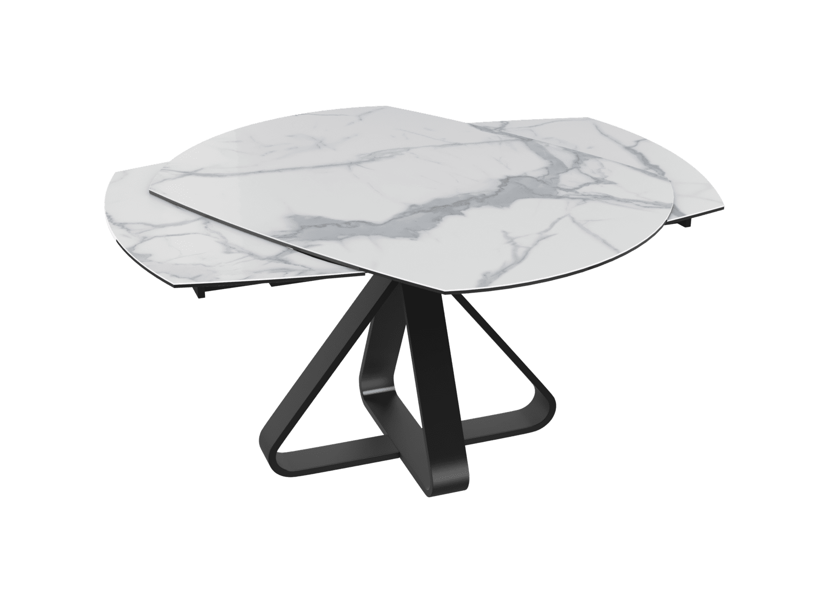 La table de repas Napoli s’agrémente de la céramique Marbre Mat pour illuminer votre salle à manger ! Associée à un piètement en acier laqué noir mat, cela donne à cette table des allures contemporaines, sophistiquées et intemporelles. Lorsque les rallonges ne sont pas déployées, la table mesure 130 cm de longueur. Modulez votre table au gré de vos envies en laissant apparaitre deux rallonges de 30 cm chacune pour accueillir encore plus de convives. Le piètement et sa forme singulière ne vous laissera pas indifférent.
