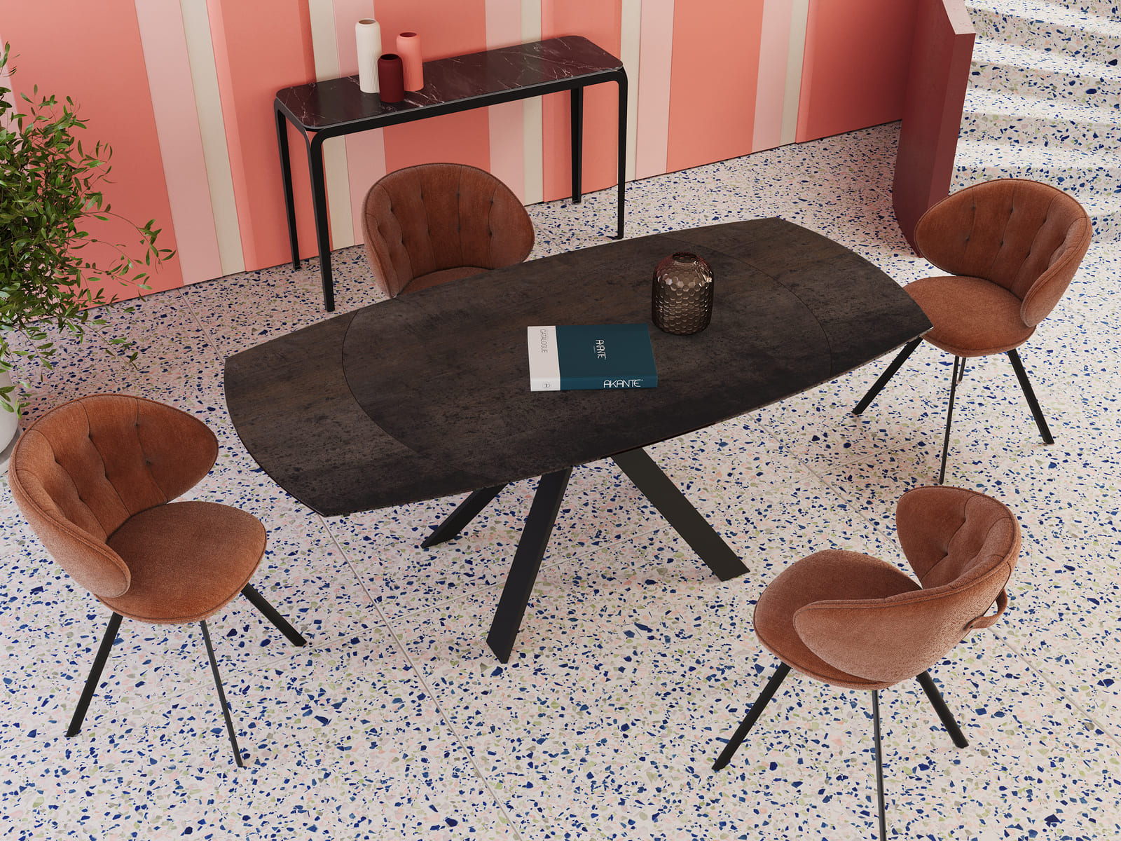 Décorez votre intérieur avec élégance grâce à la table de repas Milazzo et son plateau en céramique Acier. Parfaitement assorti au piètement en acier laqué noir mat, ce plateau dissimule deux rallonges latérales. Elles permettent grâce à un mécanisme ingénieux d’augmenter facilement la taille du plateau de 130 cm à 190 cm. De quoi augmenter le nombre de convives en un clin d’œil. Cette table est facile d’entretien. Nous vous recommandons simplement d’utiliser un chiffon humide et d’éviter l’utilisation de produits chimiques.