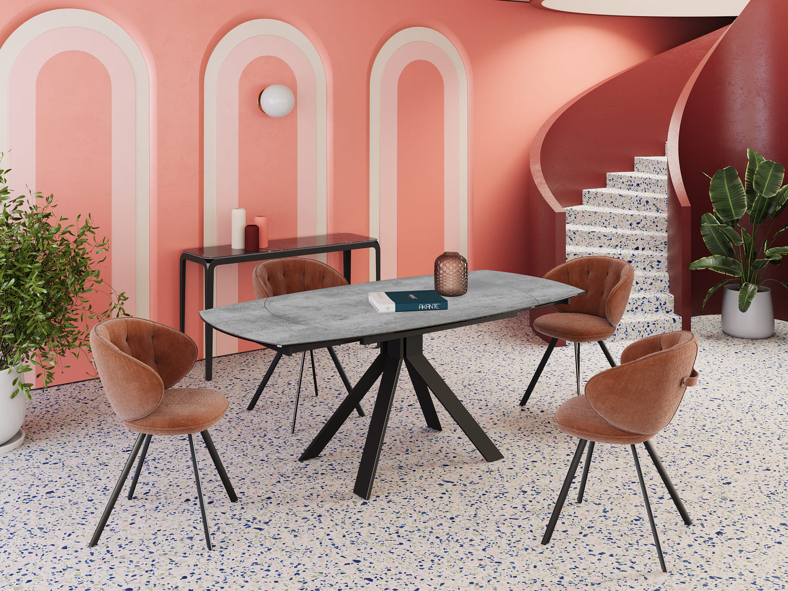 Vous allez adorer la table Milazzo signée Akante : un véritable mélange d’ingéniosité et de design. L’ingéniosité se caractérise par son plateau à mécanisme synchronisé. Grâce à une simple rotation, il permet de laisser apparaitre deux rallonges latérales. La finition céramique Silver est un classique intemporel qui se fondra parfaitement dans votre intérieur et sublimera votre décoration. Cette table est également design, notamment grâce à son piètement original en acier laqué noir mat qui lui assure stabilité et robustesse.
