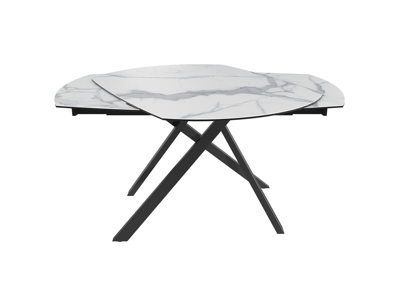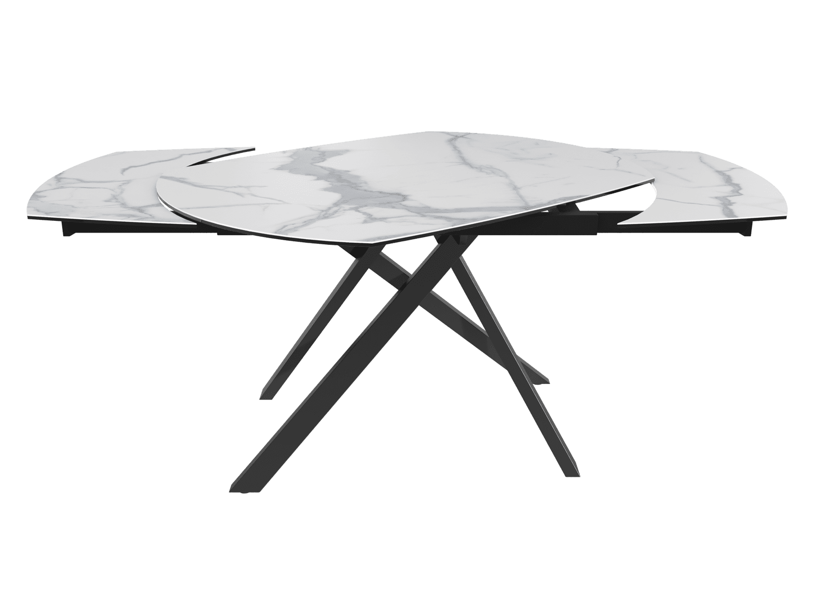 L’élégance du Marbre Mat illumine la table de repas Stromboli. Ses motifs lumineux donnent à cette table un aspect noble et chic qui habillera votre salle à manger avec raffinement. En plus des couleurs claires qui ornent son plateau, cette table est également astucieuse et va faciliter vos repas. Son plateau est rotatif et il permet de déployer deux rallonges latérales qui rendent la table plus large. Ce plateau amovible est maintenu par un piètement en acier laqué noir mat, matériau résistant et intemporel.