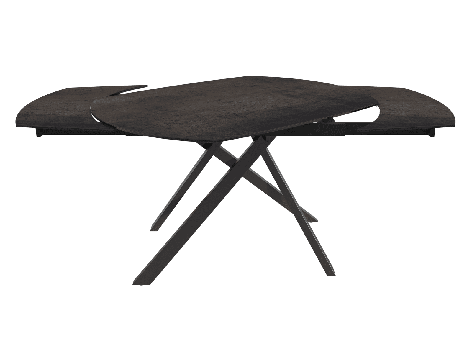 Voici la table de repas Stromboli signée Akante. C’est une table avec un revêtement en céramique Acier de 3 mm d’épaisseur collé sur un verre de 8 mm. Cette table de repas dispose de deux rallonges latérales de 30 cm logées sous le plateau principal. Elles se déploient par une simple rotation. Cette table 100 % contemporaine et ses coloris foncés sauront égayer chaque style d’intérieur. Le piètement en acier laqué noir mat s’associe parfaitement avec les coloris du plateau.
