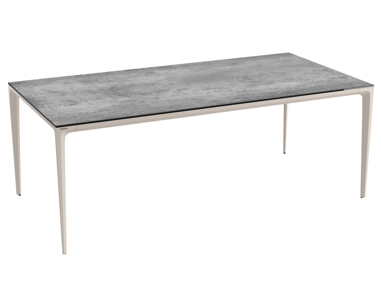 Faites confiance à la table de repas Mallorca pour décorer votre extérieur. Son design simple et intemporel est agréable en terrasse, il vous plaira sur du long terme. La touche de modernité est apportée par la céramique silver et ses jolis reflets métalliques. Pour un maximum de solidité, celle-ci mesure 3 mm d’épaisseur et est collée sur un verre de 8 mm d’épaisseur. Les pieds en aluminium laqué gris sont fins et concordent avec le plateau de votre table. Mallorca mesure ici 200 cm de long, 100 cm de large et 74 cm de haut.
