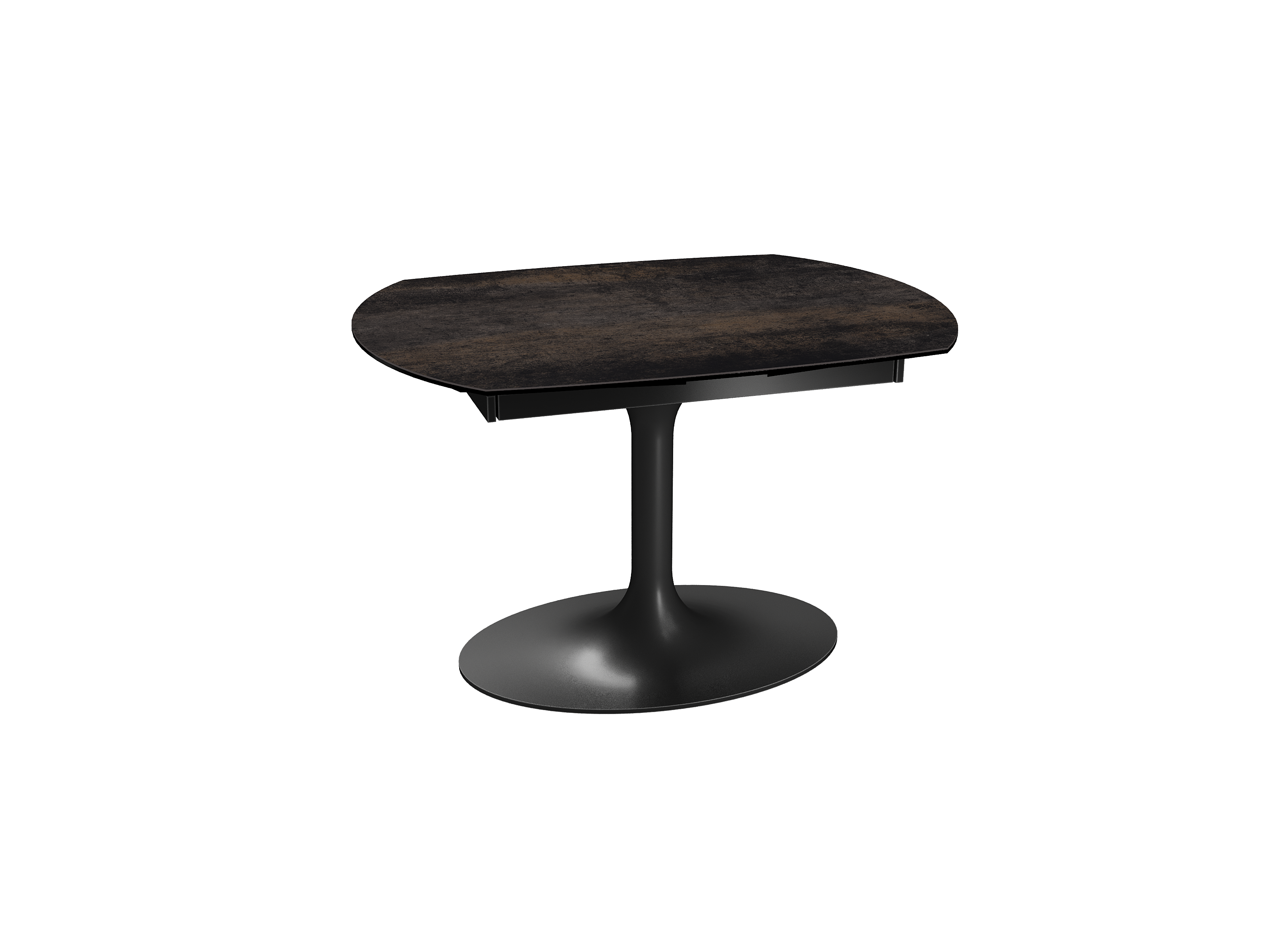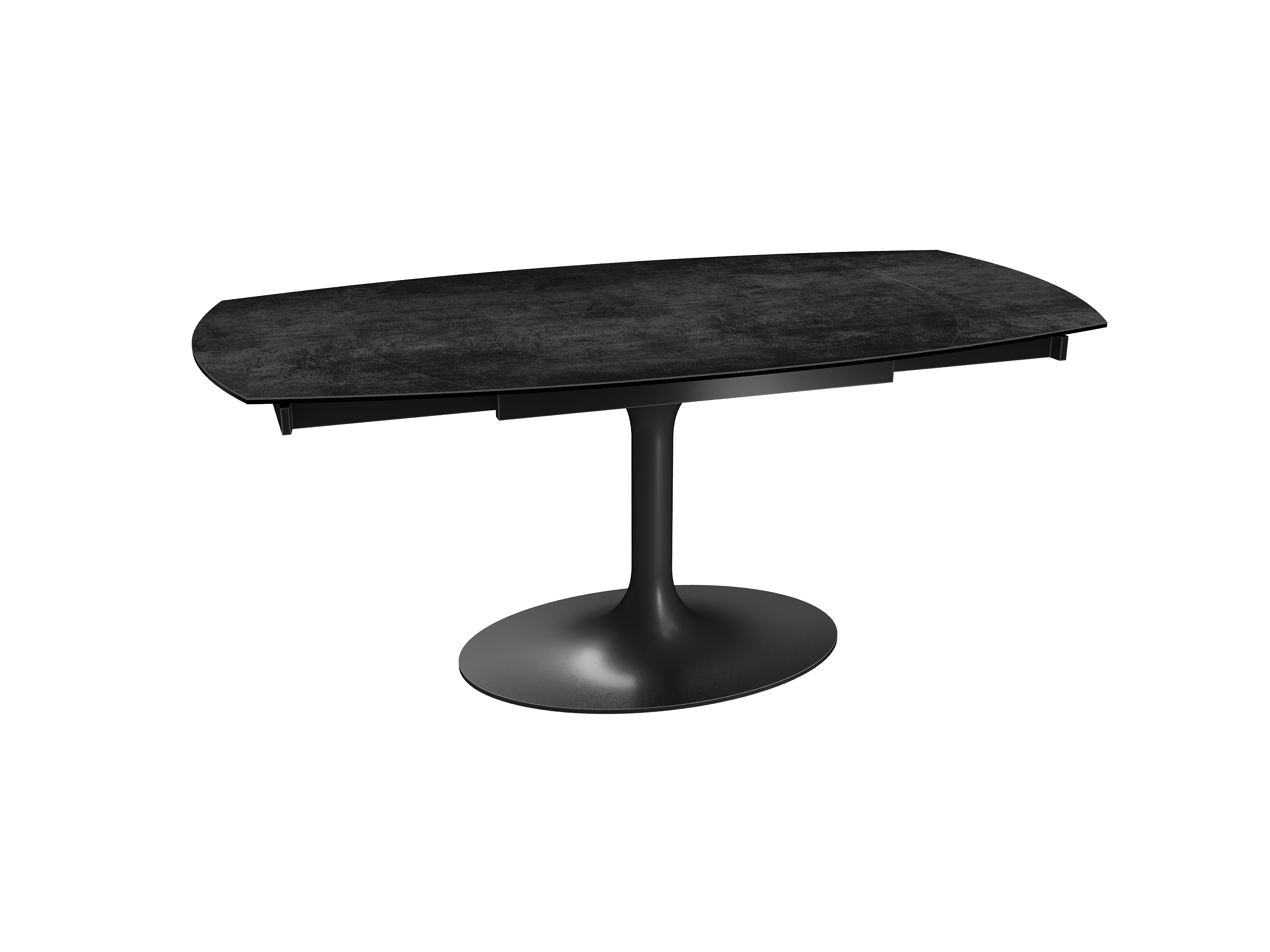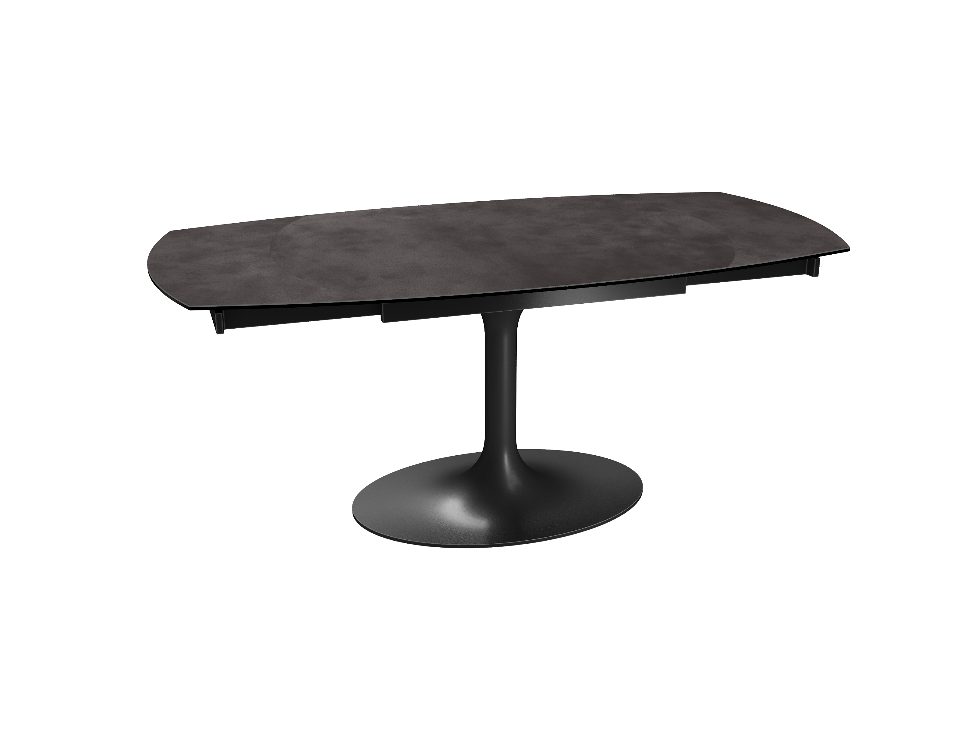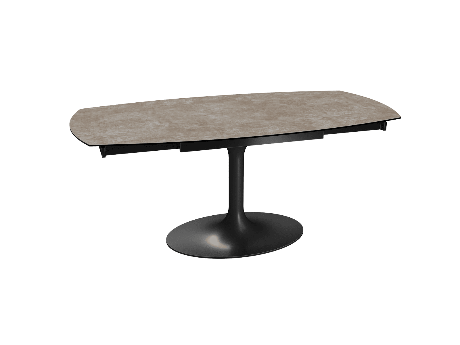 Inspirée du modèle phare Kheops, la table Corcovado se décline avec un nouveau piétement central évasé. Dotée d’un mécanisme astucieux, une simple rotation du plateau suffit pour faire apparaître deux rallonges latérales. Le mouvement est synchronisé. Cette collection est disponible en trois dimensions : 120/180 × 90 × 76 cm, 130/190 × 100 × 76 cm et 160/240 × 100 × 76 cm. Personnalisez votre plateau parmi 13 finitions de céramique. Le piétement est conçu en acier laqué noir mat.