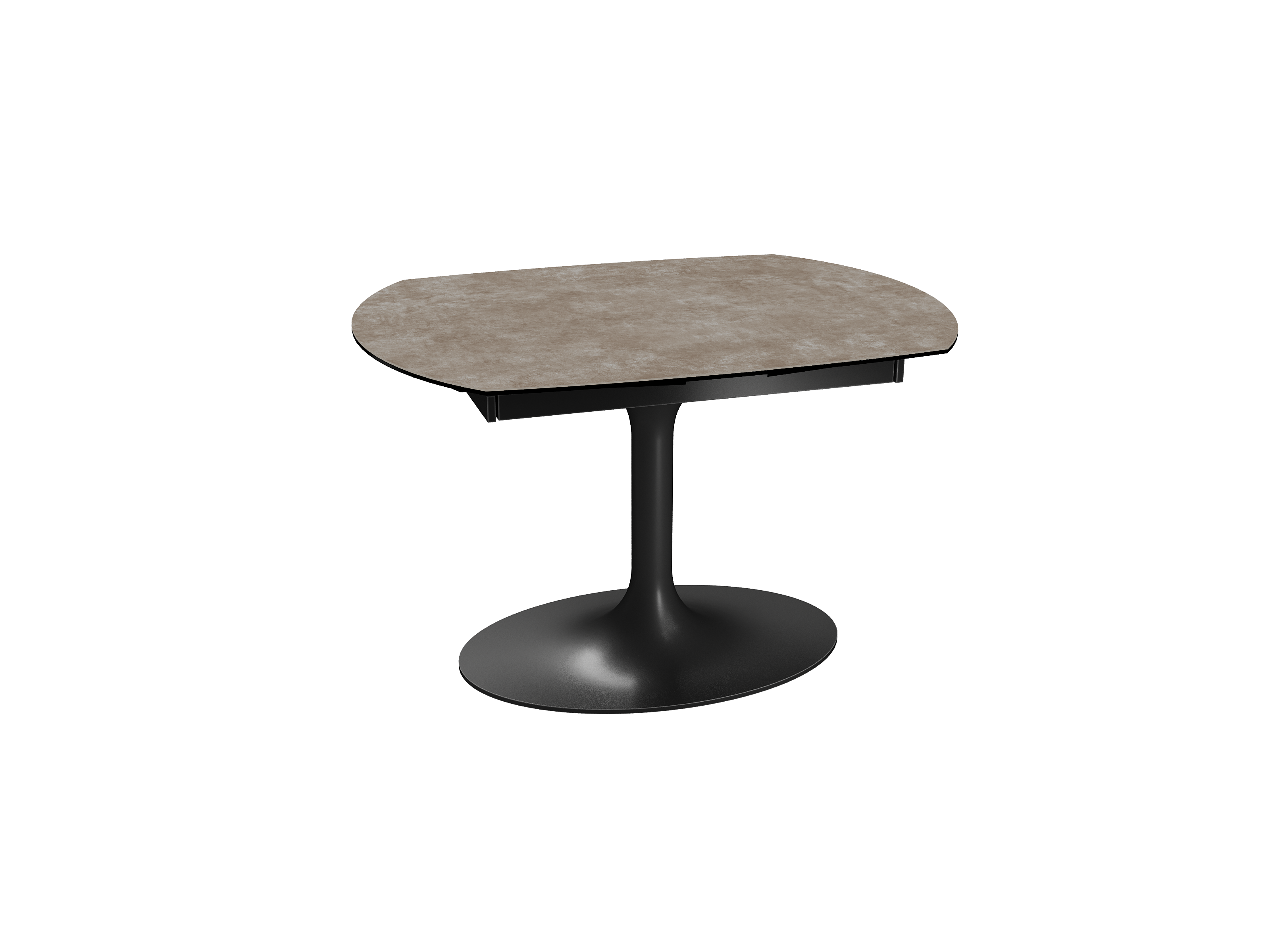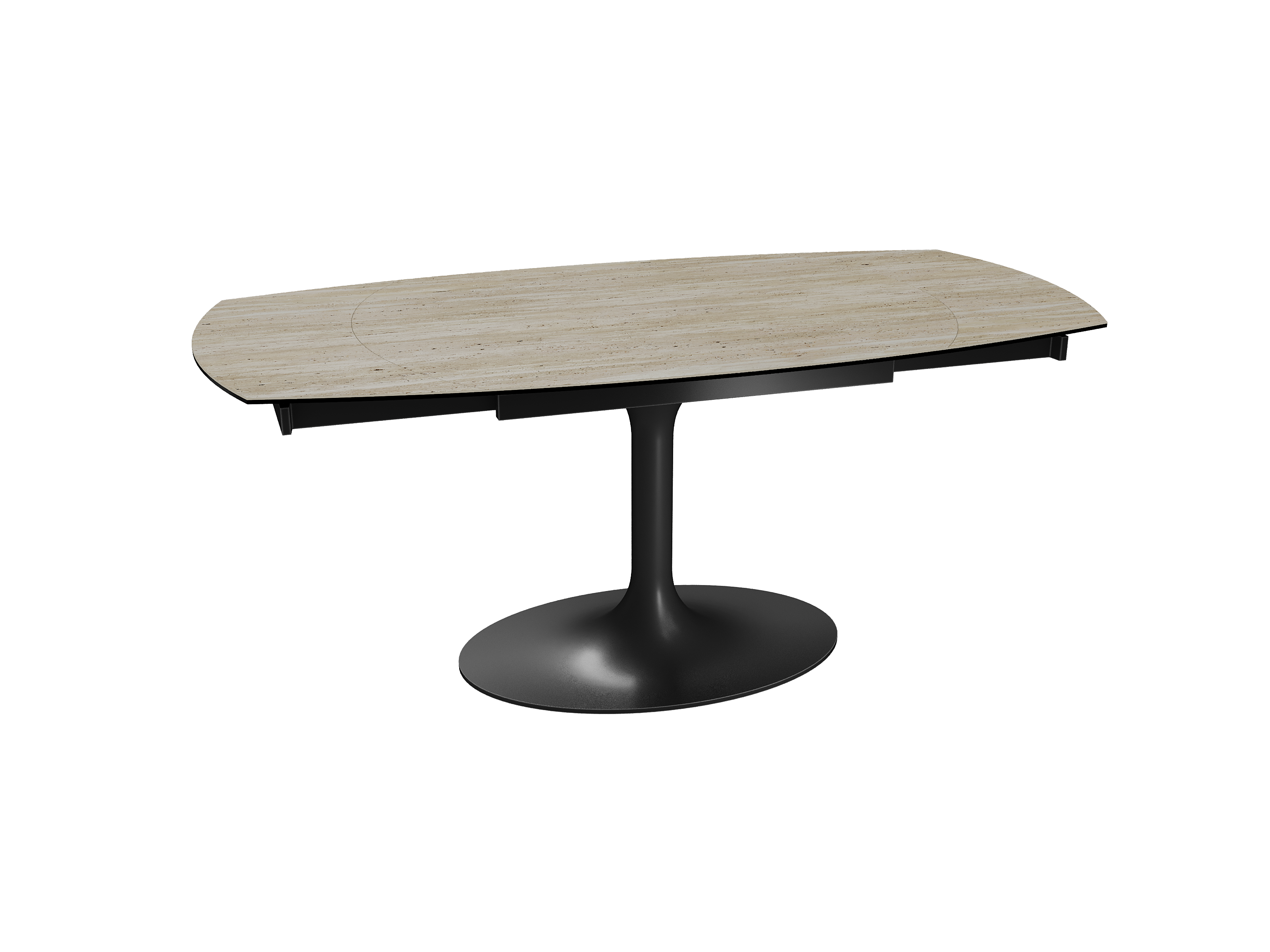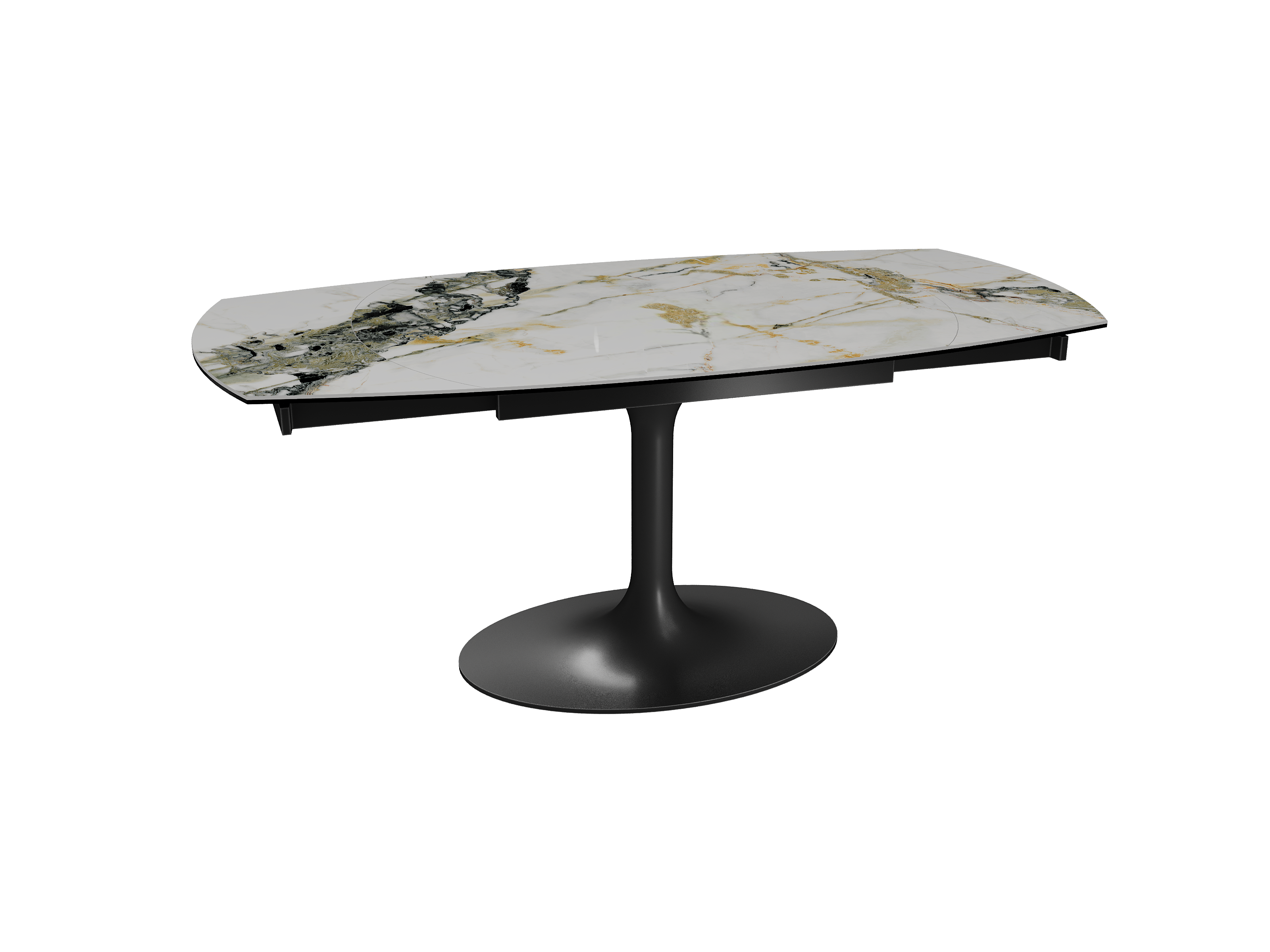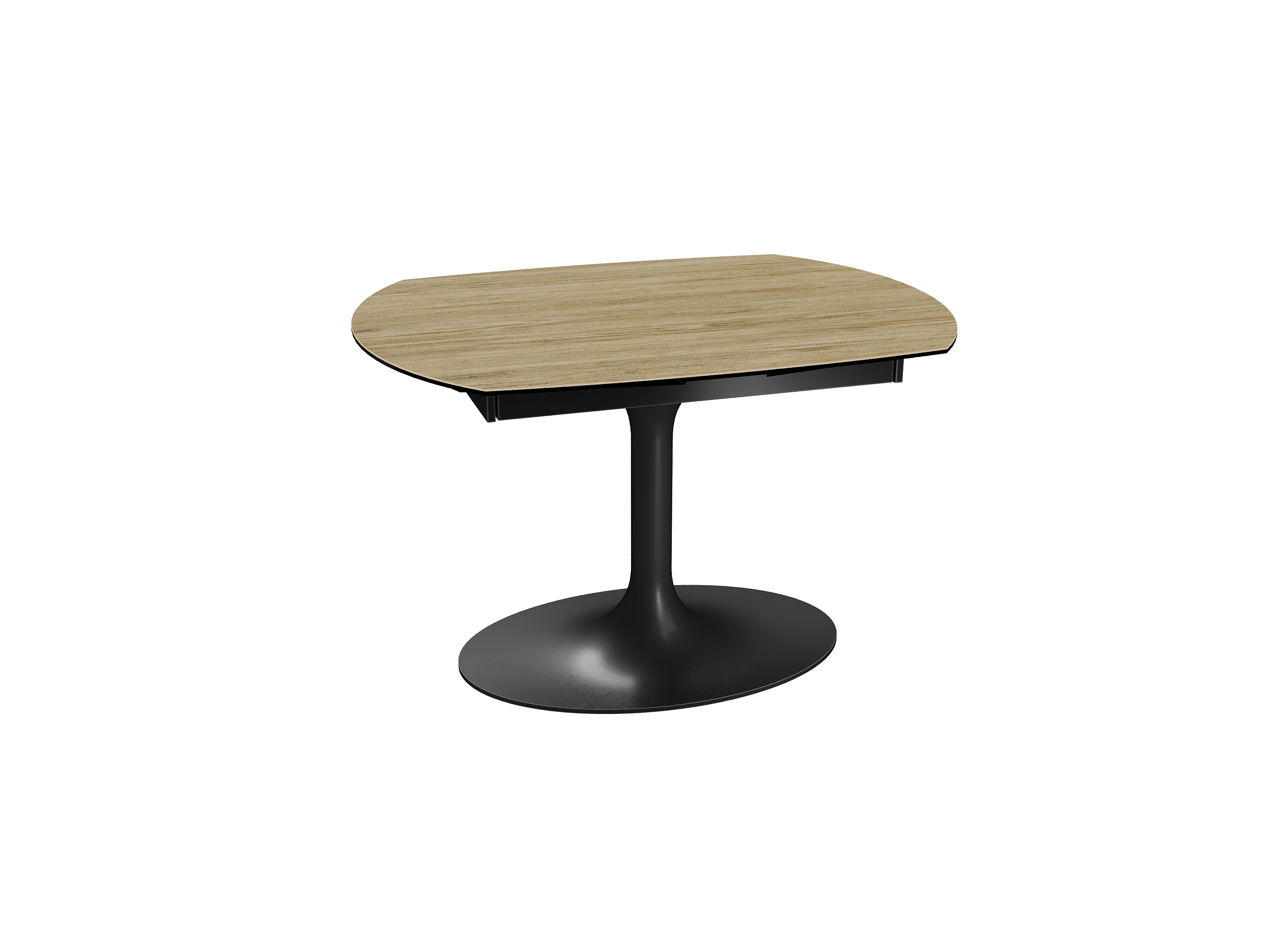 Inspirée du modèle phare Kheops, la table Corcovado se décline avec un nouveau piétement central évasé. Dotée d’un mécanisme astucieux, une simple rotation du plateau suffit pour faire apparaître deux rallonges latérales. Le mouvement est synchronisé. Cette collection est disponible en trois dimensions : 120/180 × 90 × 76 cm, 130/190 × 100 × 76 cm et 160/240 × 100 × 76 cm. Personnalisez votre plateau parmi 13 finitions de céramique. Le piétement est conçu en acier laqué noir mat.