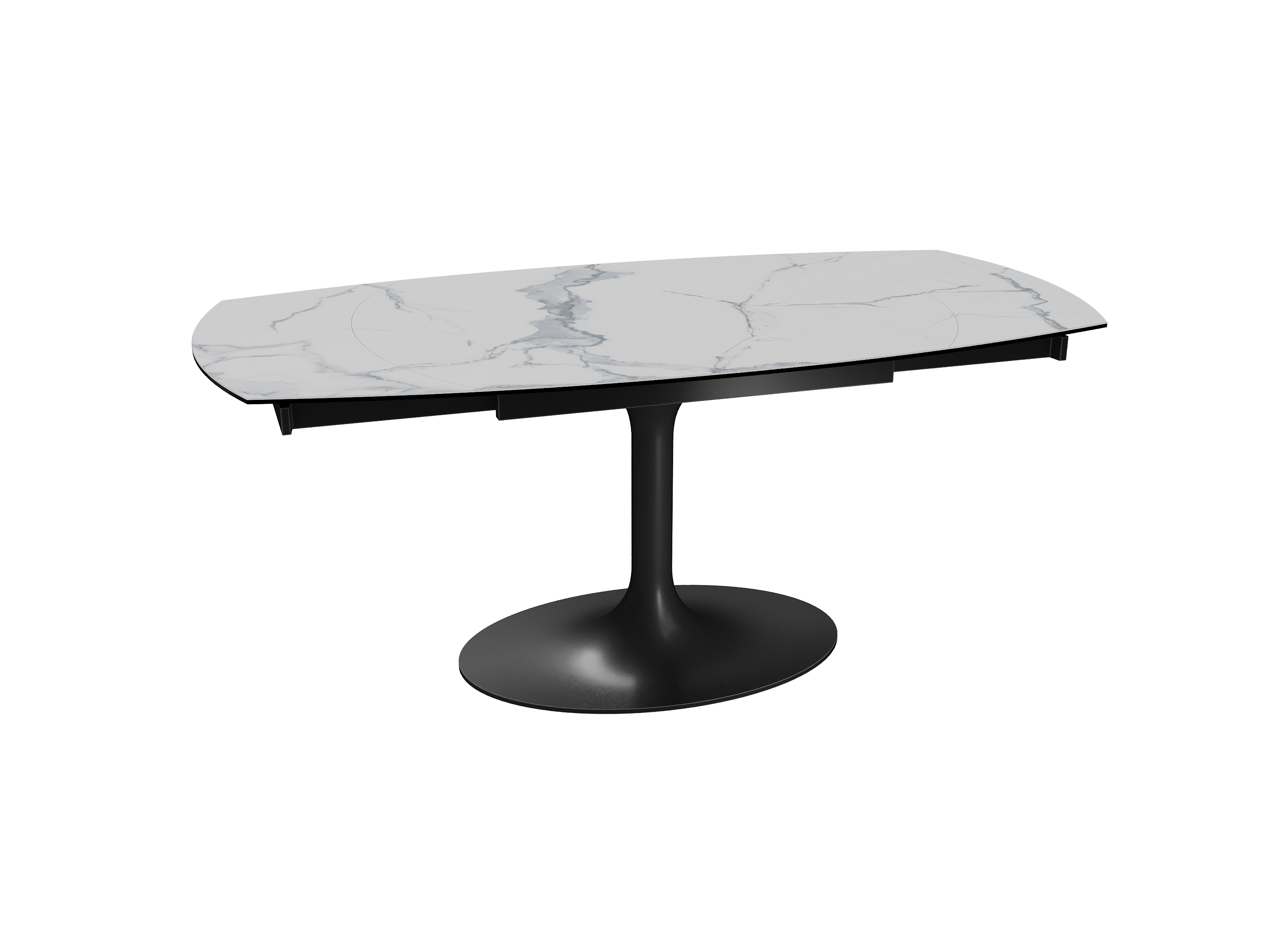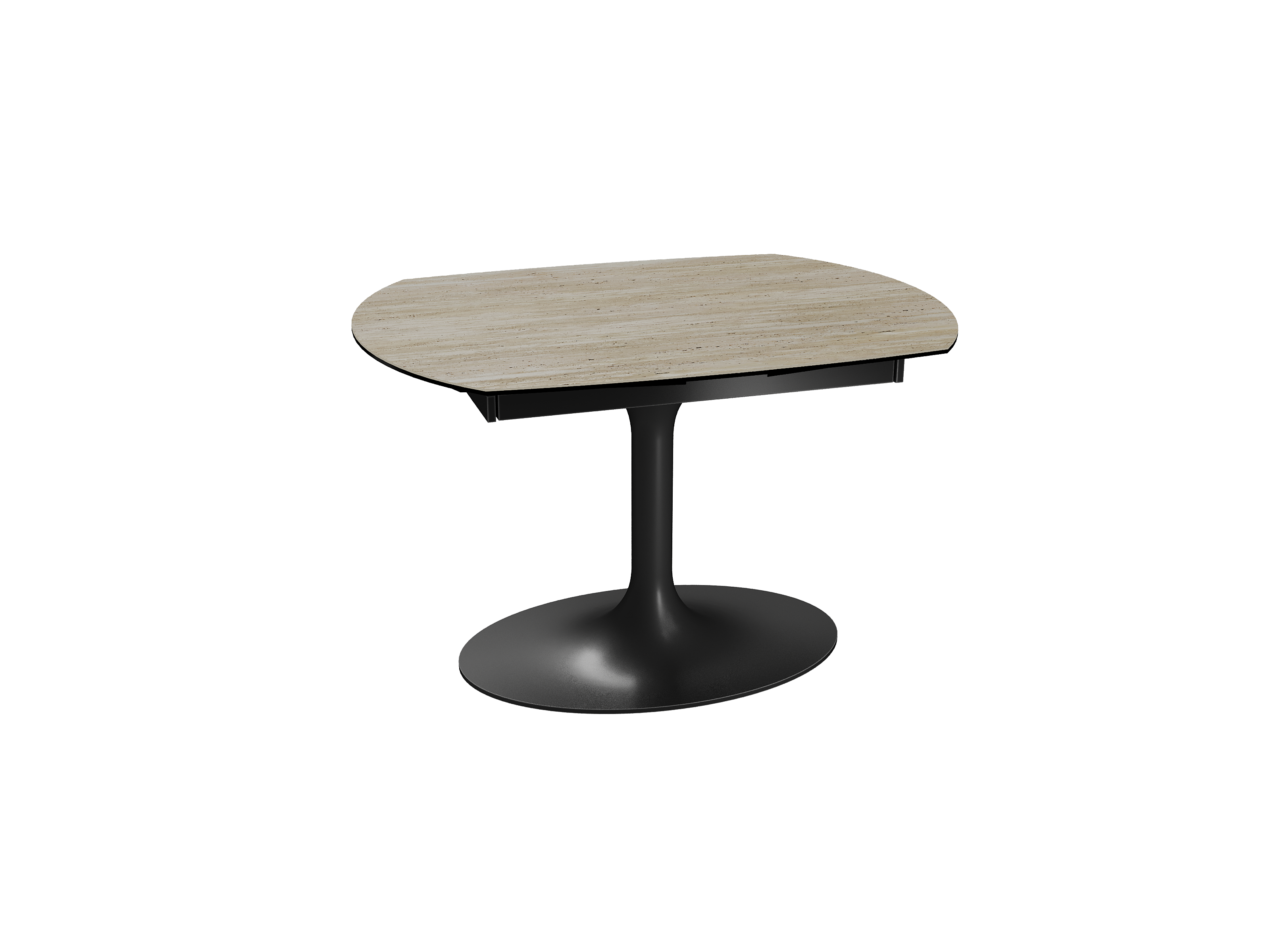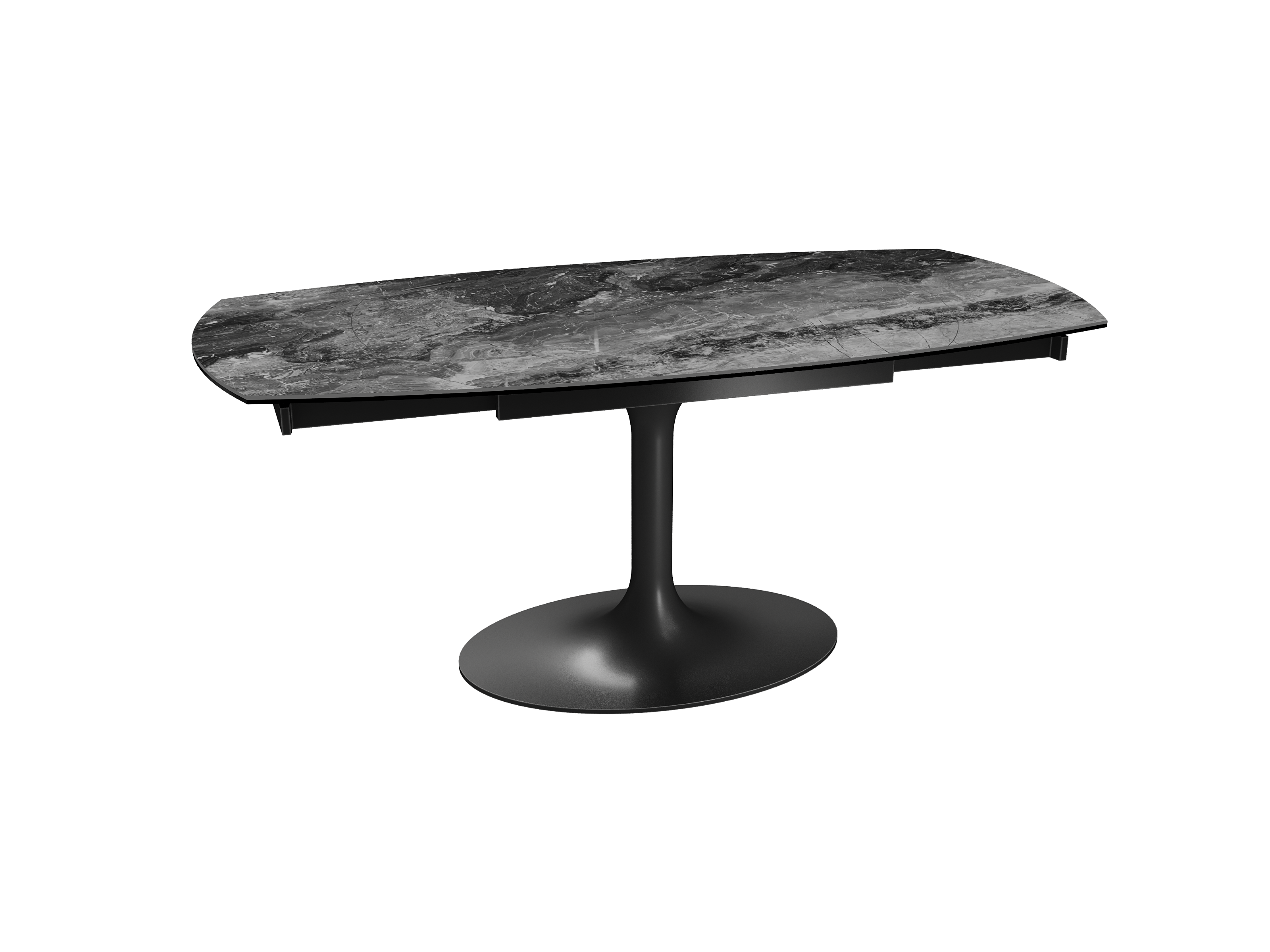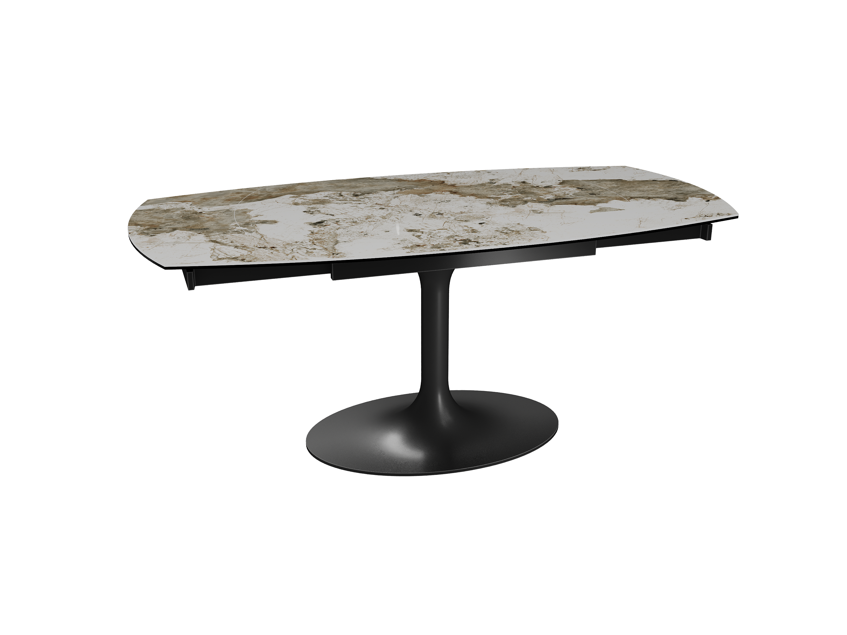 Inspirée du modèle phare Kheops, la table Corcovado se décline avec un nouveau piétement central évasé. Dotée d’un mécanisme astucieux, une simple rotation du plateau suffit pour faire apparaître deux rallonges latérales. Le mouvement est synchronisé. Cette collection est disponible en trois dimensions : 120/180 × 90 × 76 cm, 130/190 × 100 × 76 cm et 160/240 × 100 × 76 cm. Personnalisez votre plateau parmi 13 finitions de céramique. Le piétement est conçu en acier laqué noir mat.