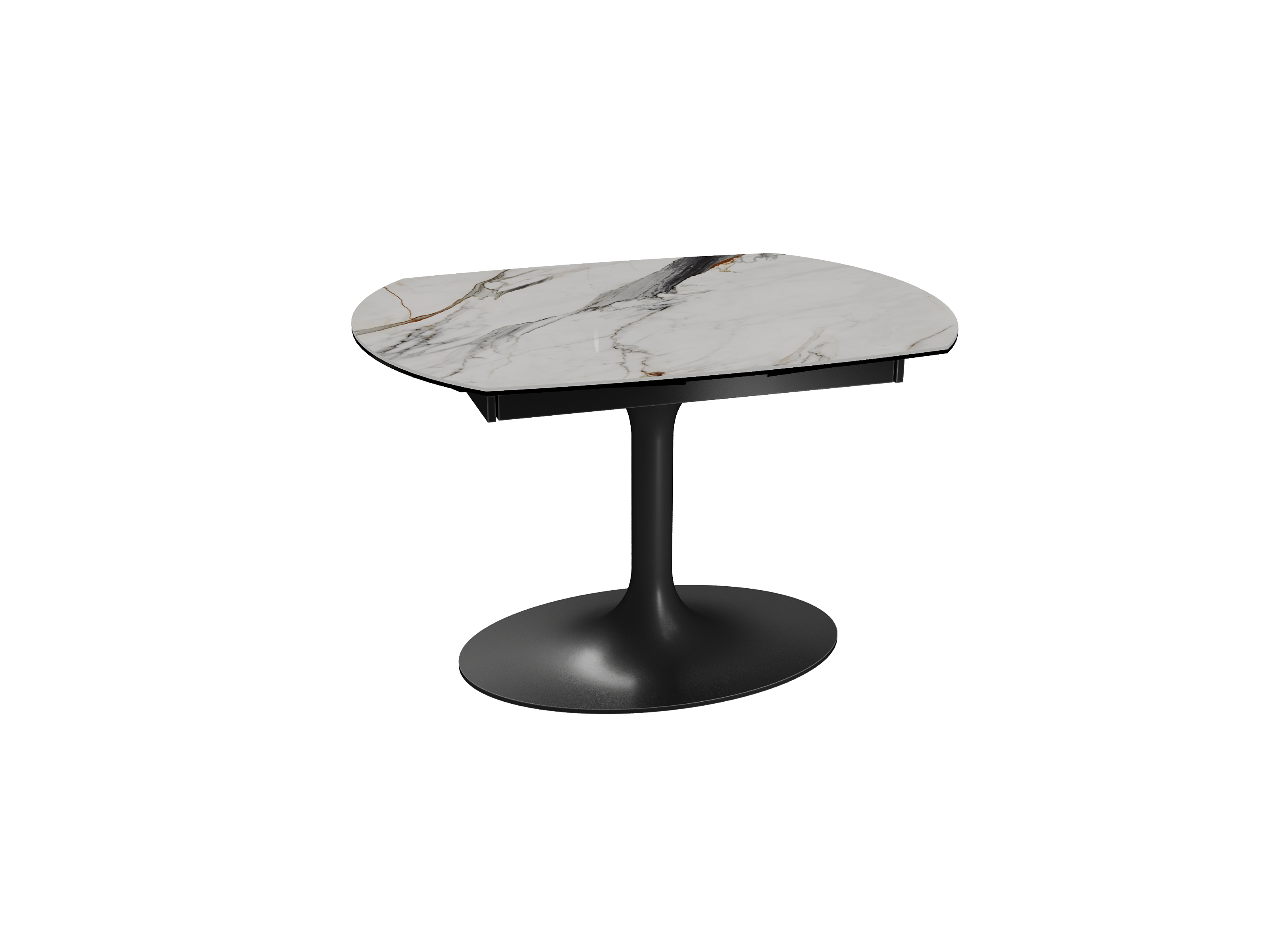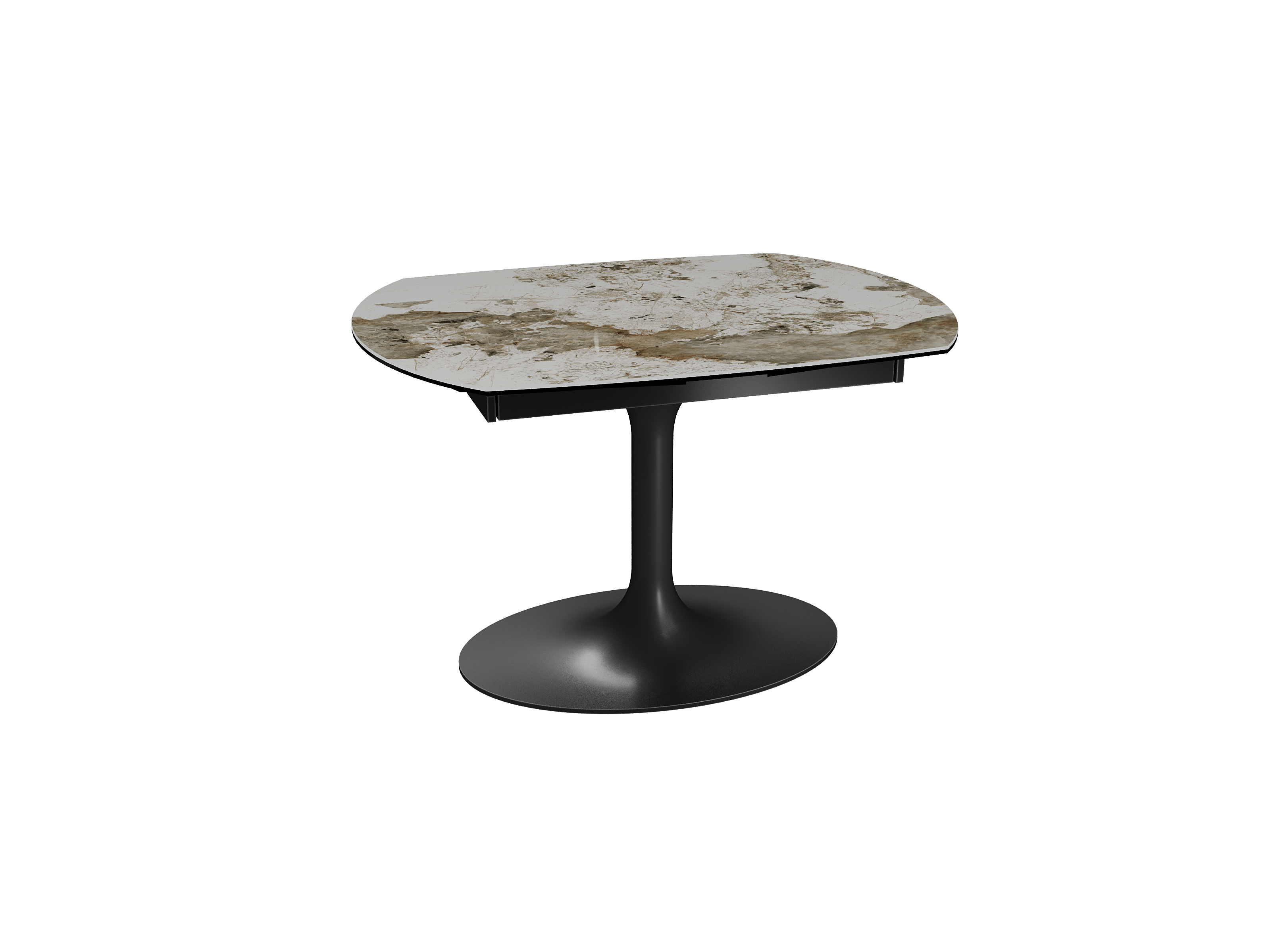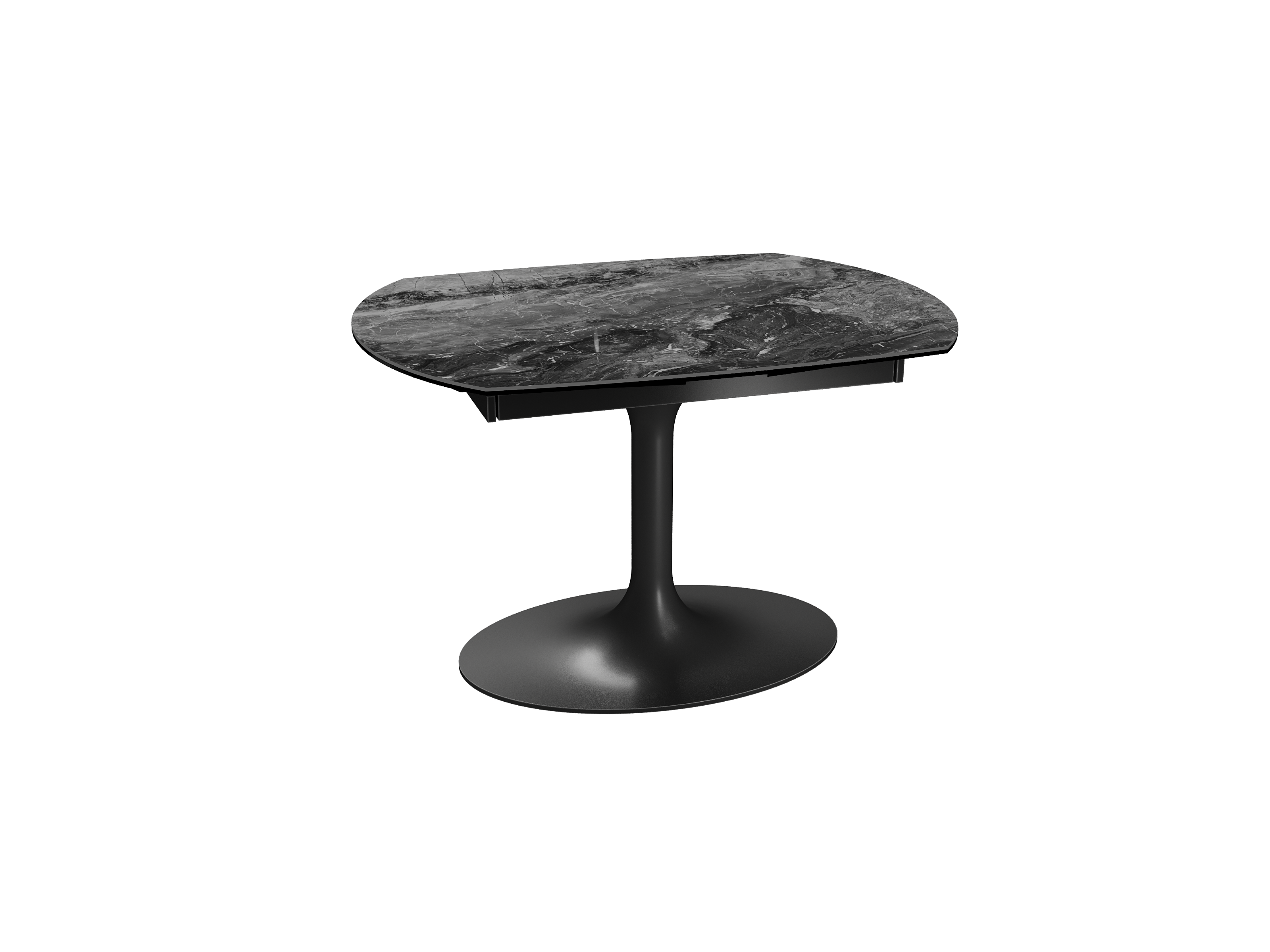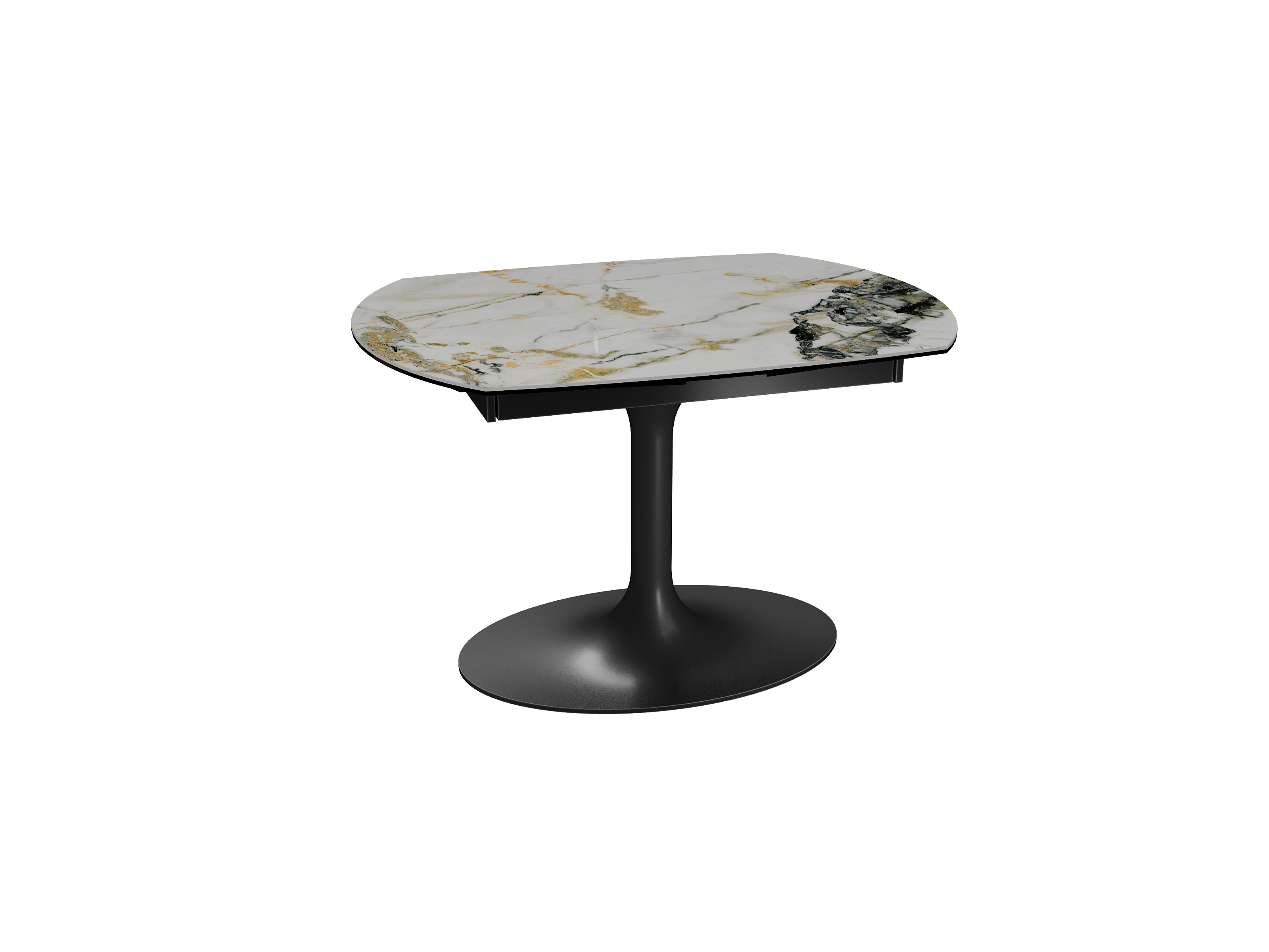 Inspirée du modèle phare Kheops, la table Corcovado se décline avec un nouveau piétement central évasé. Dotée d’un mécanisme astucieux, une simple rotation du plateau suffit pour faire apparaître deux rallonges latérales. Le mouvement est synchronisé. Cette collection est disponible en trois dimensions : 120/180 × 90 × 76 cm, 130/190 × 100 × 76 cm et 160/240 × 100 × 76 cm. Personnalisez votre plateau parmi 13 finitions de céramique. Le piétement est conçu en acier laqué noir mat.