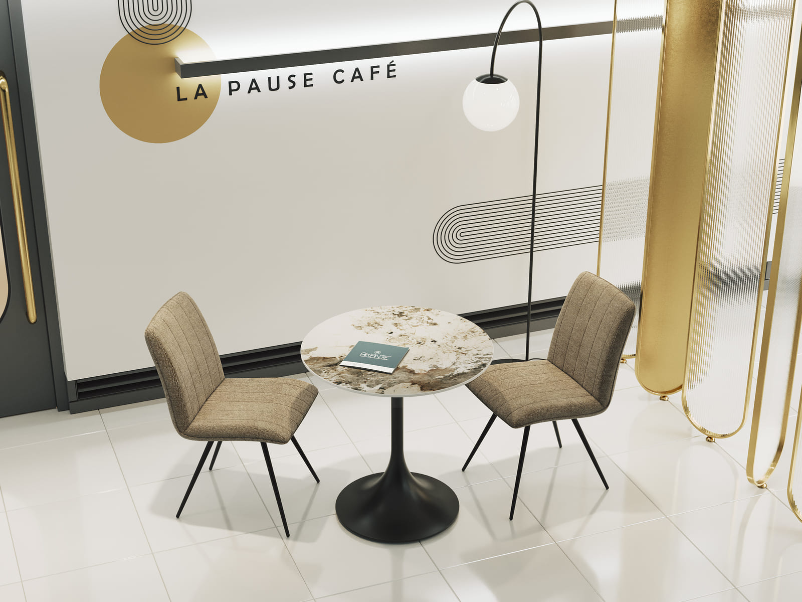 Découvrez la table de repas Diabolo ! Ses courbes arrondies donneront à votre salle à manger une allure moderne et minimaliste. Son plateau en céramique pleine masse de 11 mm d’épaisseur est soigneusement posé sur son piètement en acier laqué noir mat. La céramique Calcatta révèle de jolies nervures aux reflets gris qui apportent une texture délicate à sa surface claire. La table de repas Diabolo mesure 75 cm de diamètre sur 75 cm de hauteur. Elle existe également en différentes dimensions de plateau.