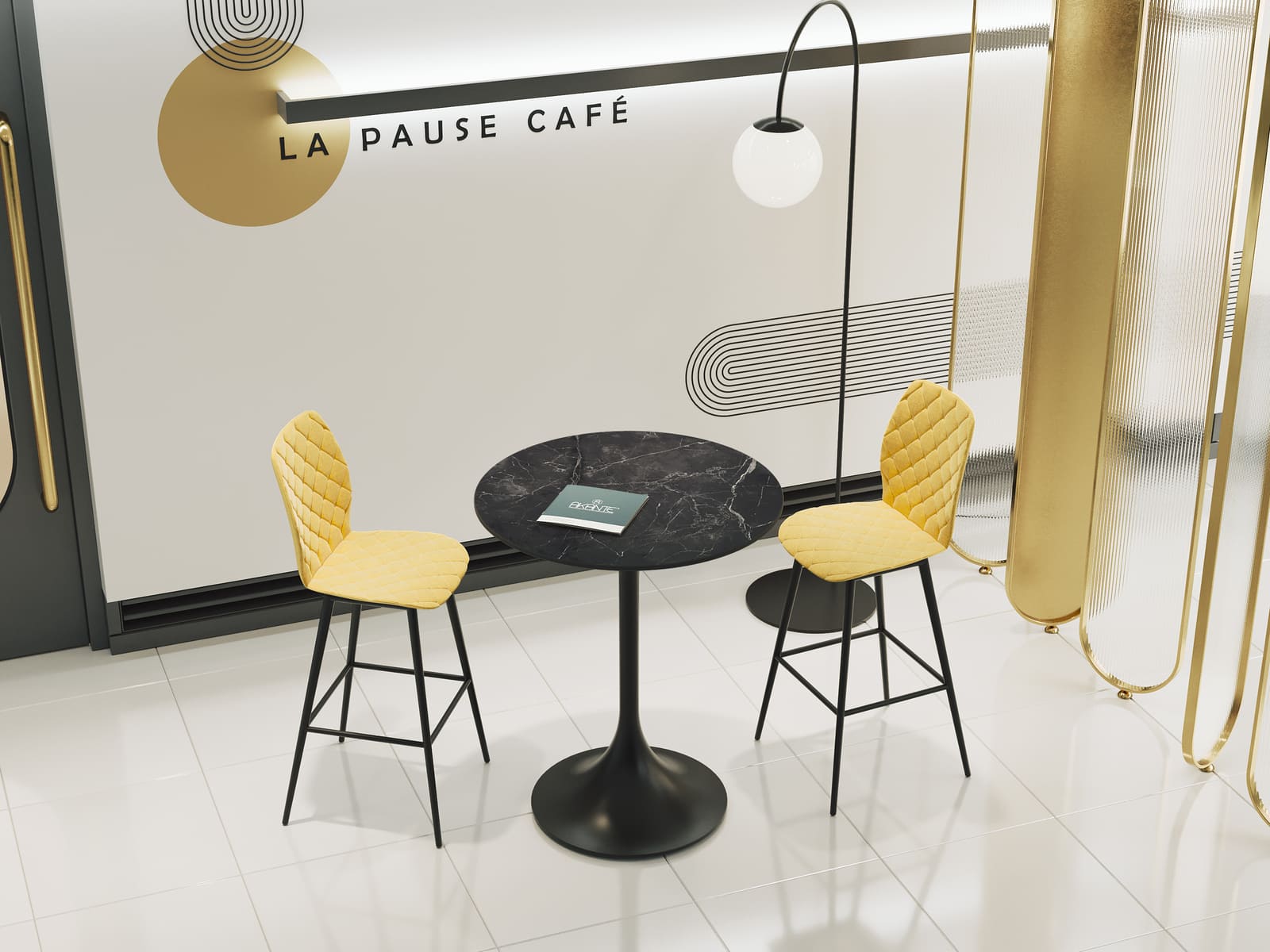 La table de repas Diabolo s'intègre harmonieusement dans tous les styles de décoration. Son plateau en céramique Marquina d'une épaisseur de 11 mm, est méticuleusement assemblé avec son piétement en acier laqué noir mat. Avec un diamètre de 75 cm et une hauteur de 90 cm, la table de repas Diabolo possède des proportions équilibrées. La collection Diabolo offre une variété étendue de dimensions de plateau et de piètement, la possibilité de personnaliser facilement votre table de repas s’offre à vous.