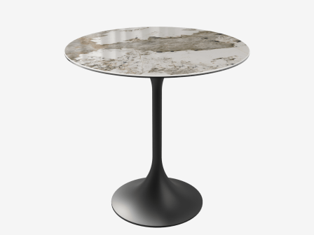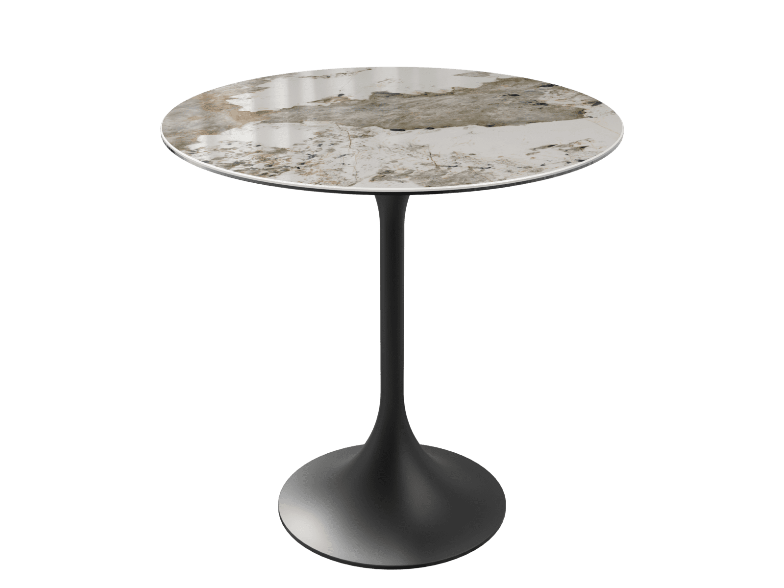 Optez pour le style contemporain et épuré de la table de repas Diabolo, harmonieuse dans ses courbes elle se plaira dans tout type de décoration intérieure. Son plateau en céramique Calcatta pleine masse mesure 11 mm d’épaisseur pour une forte résistance. Son élégant piètement évasé en acier laqué noir mat apporte une allure moderne et raffinée à votre intérieur. La table de repas mesure 90 cm de hauteur sur un plateau de 90 cm de diamètre. Personnalisez votre table avec le large choix de chaises disponibles de la marque Akante.