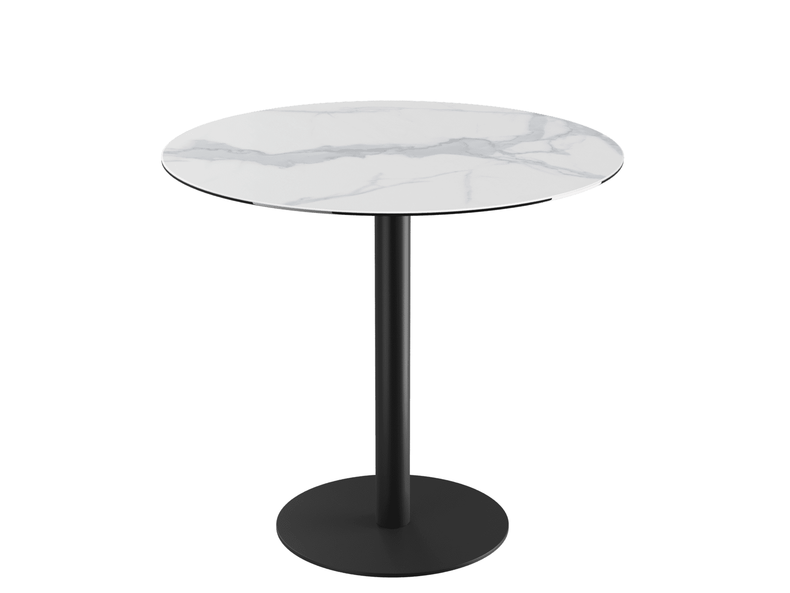 La table haute Orlando saura trouver sa place dans un coin cuisine et optimisera votre espace. Son piétement en acier laqué noir mat de hauteur 90 cm s’associe parfaitement avec son plateau en céramique marbre blanc. Ce plateau de 100 cm de diamètre possède une céramique de 3 mm d’épaisseur collée sur un verre de 8 mm afin de résister au mieux votre quotidien.