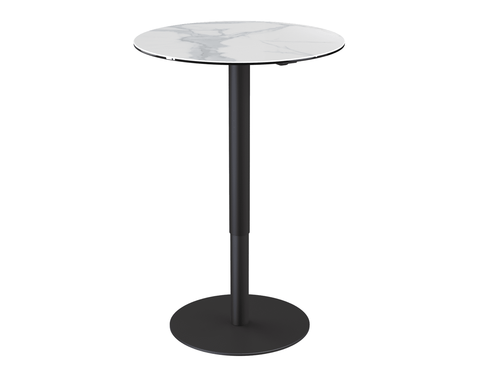 La table Orlando Lift est une création signée Akante. Son côté fonctionnel s'associe parfaitement à son style épuré. Dotée d'un mécanisme pratique, sa hauteur classique de 76 cm peut s'élever jusqu'à 110 cm, vous permettant de transformer votre table de repas en une table haute pratique et conviviale. Son plateau rond, de 75 cm de diamètre, est en céramique Marbre Mat de 3 mm collée sur un verre de 8 mm. Son piétement est en acier laqué noir mat.