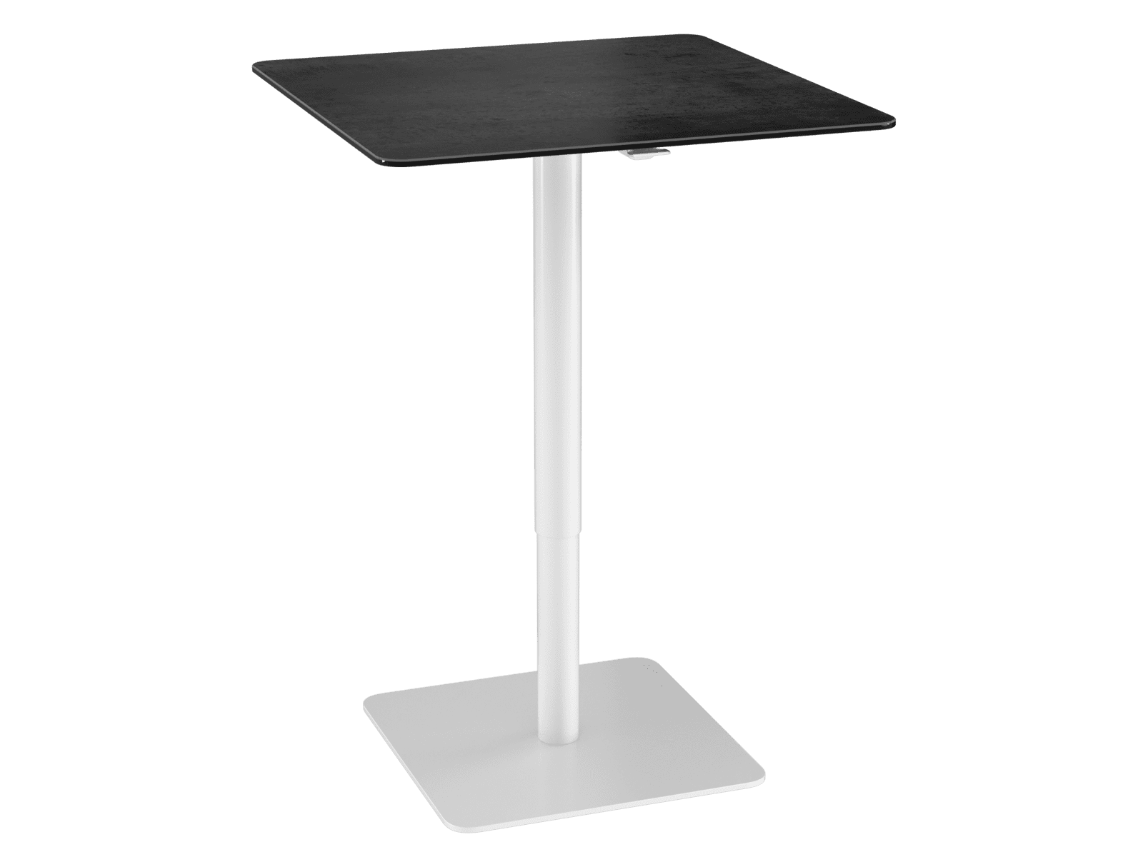 Découvrez Orlando Lift, une table de repas idéale pour les espaces restreints. Son plateau carré mesure 80 x 80 cm, il est conçu en céramique de 3 mm collée sur un verre de 8 mm. Orlando Lift est équipée d’une manette discrètement placée sous le plateau, permettant d’ajuster la hauteur entre 76 et 110 cm en un simple geste. Son piétement est en acier laqué blanc.