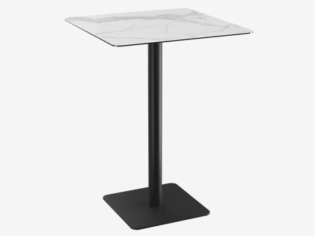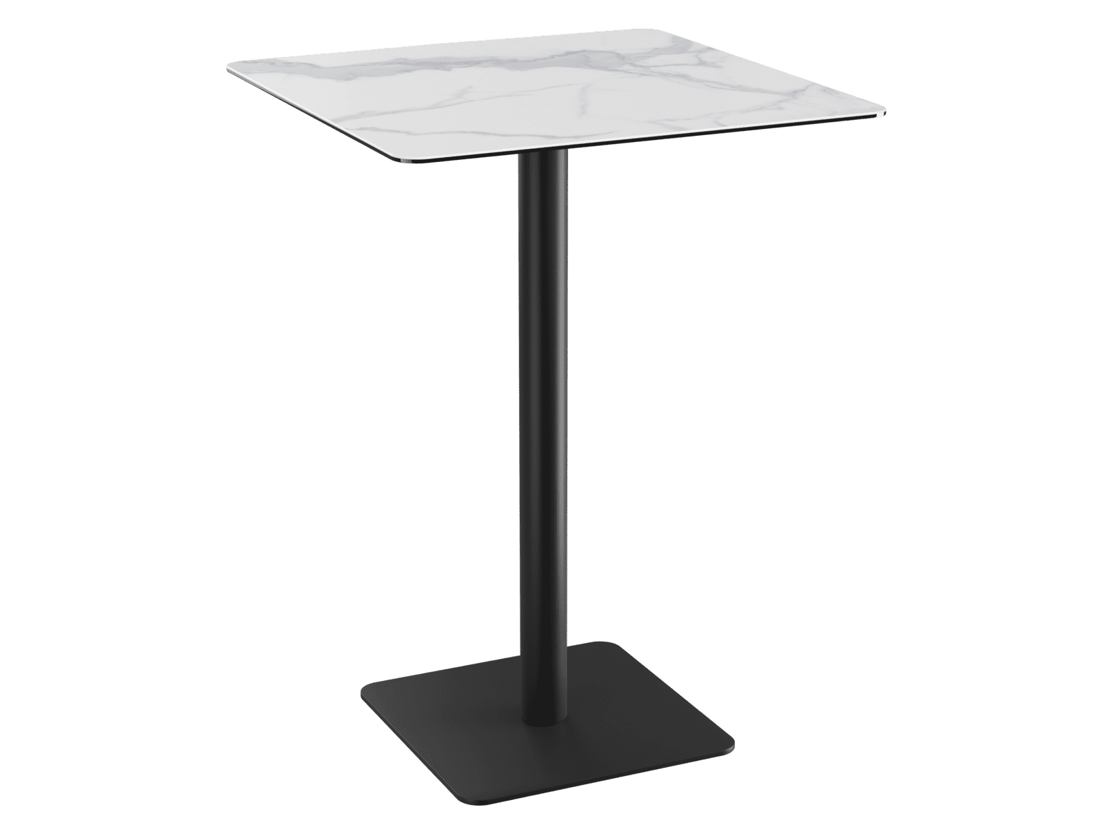 La table snack Orlando carrée offre une alliance entre deux matériaux différents qui en font tout son charme : la céramique marbre et le piétement en acier. Misez sur une ambiance bistrot afin de créer une atmosphère conviviale au sein de votre foyer. La céramique fait 3 mm d’épaisseur et est collée sur un vitrage de 8 mm. Le piétement en acier laqué noir de 110 cm de hauteur apporte solidité et stabilité à cette table de repas. La table Orlando carrée et sa céramique marbre mat offre à votre intérieur, simplicité et modernité.