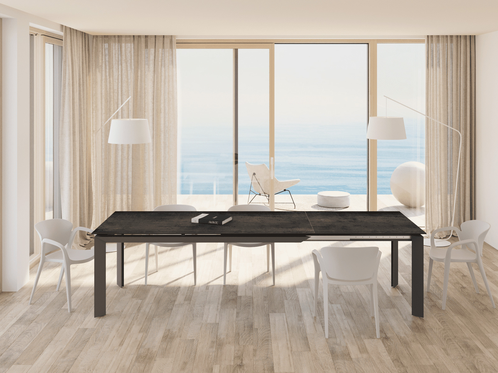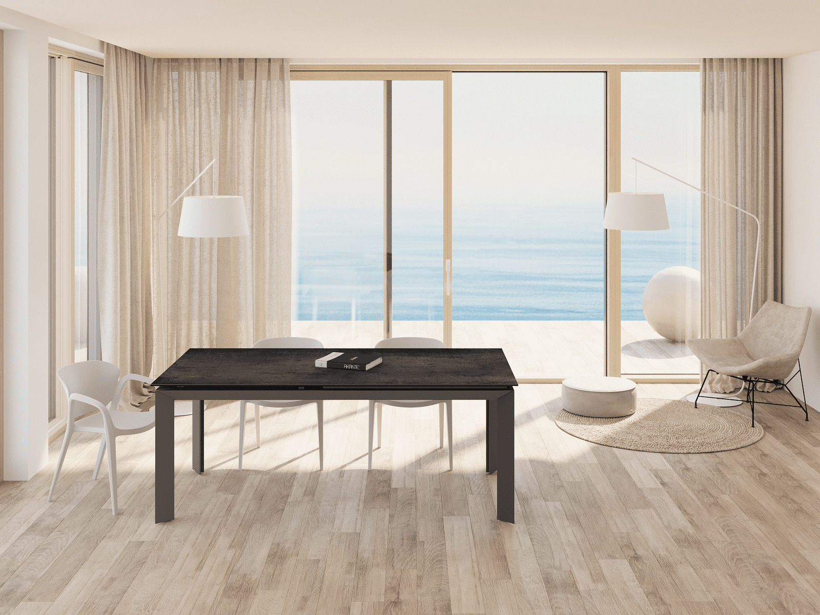 La simplicité et l’élégance de son design font de la table Bogota un incontournable des grandes salles à manger. Avec la possibilité d’accueillir jusqu’à 10 personnes, elle est parfaite pour les familles nombreuses ou simplement ceux qui aiment recevoir leurs proches à un dîner. Son piètement en acier laqué noir mat s’allie parfaitement au plateau en céramique Titane pour un ensemble sobre et design. Son plateau est composé de 3 mm de céramique collée sur 8 mm de verre. Disponible en 2 dimensions et en 6 coloris différents.