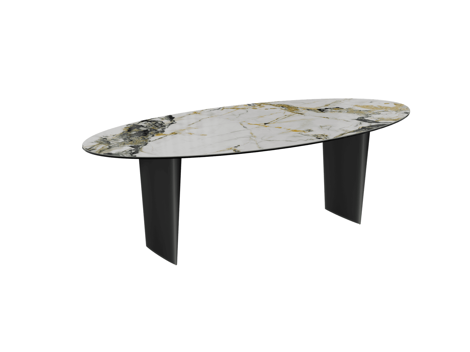 Adoptez la nouvelle table de repas Goliath dans votre salle à manger. Disponible en céramique Marbre Doro, son plateau est composé de 6 mm de céramique collé sur 8 mm de verre. Son piètement chic en acier laqué noir mat apportera une touche de modernité à votre salle à manger. Cette table de repas mesure 240 cm de longueur sur 112 cm de largeur, elle saura se plaire dans tout type d’intérieur. Vous pourrez réunir jusqu’à 8 convives autour de vos repas conviviaux.