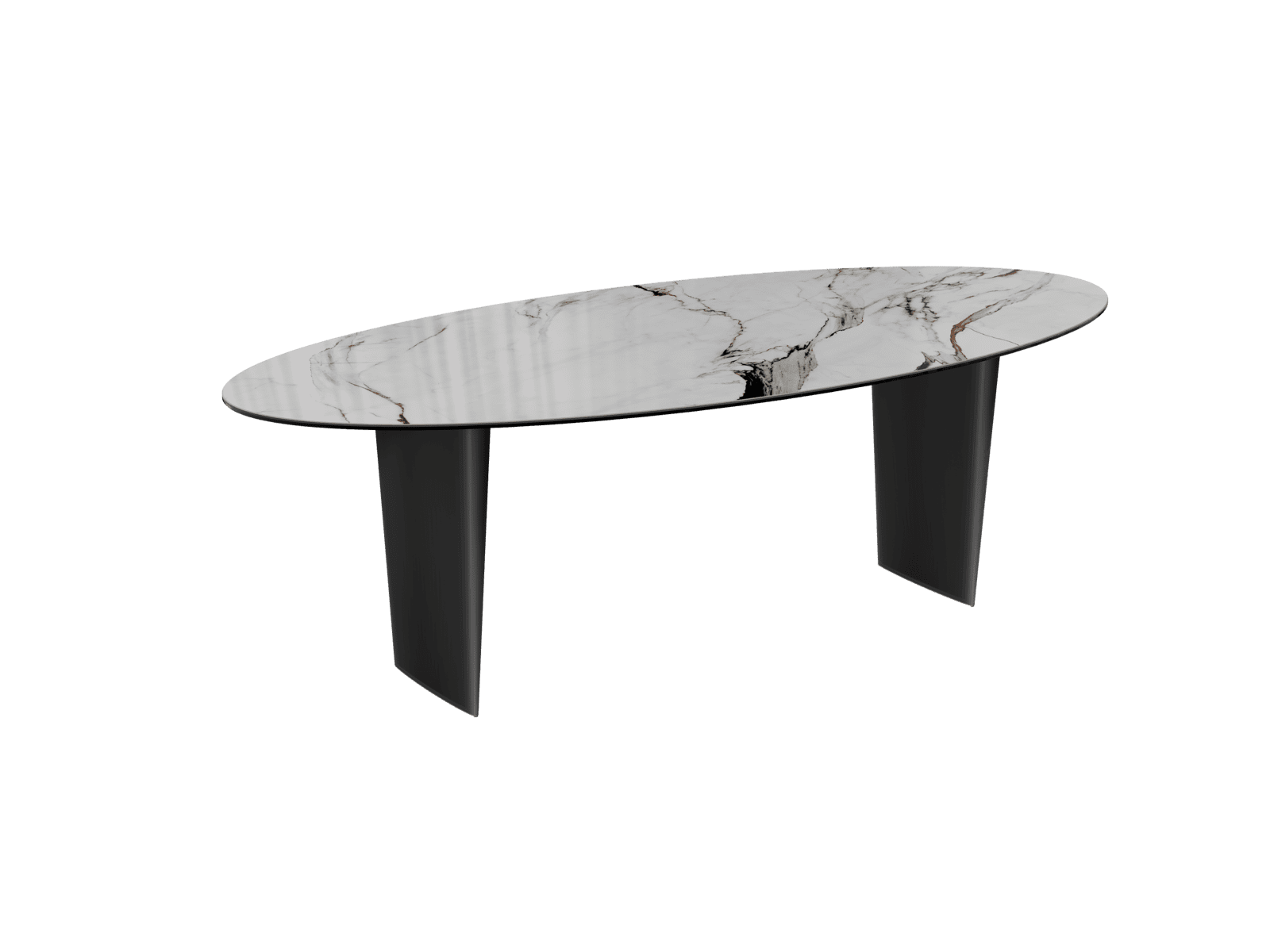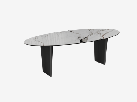 Découvrez les courbes arrondies de la table de repas Goliath. Son plateau est fabriqué en céramique Marbre Fiorentino de 6 mm d’épaisseur collé sur 8 mm de verre, il mesure 240 cm de longueur et 112 cm de largeur. Cette table de repas est la pièce qu’il manque à votre salle à manger. Son élégant piètement mesure 76 cm de hauteur, sa finition en acier laqué noir mat apporte de la légèreté à sa structure. Également disponible en 4 autres dimensions de plateaux, associez la table de repas Goliath par rapport au volume de votre salon pour une proportion parfaite.