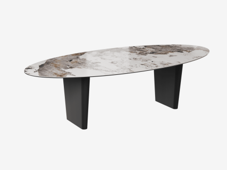 Découvrez la première table de repas ovale Akante, le modèle Goliath. Sa forme originale transformera vos repas en moments conviviaux facilitant la communication entre vos invités. Pensée par nos designers elle a la capacité d’accueillir entre 8 et 10 personnes. Son plateau est conçu en céramique Marbre Calcatta de 6 mm d’épaisseur collé sur un verre de 8 mm pour une meilleure adhésion à son piètement en acier laqué noir mat. La table de repas Goliath est généreuse, elle mesure 280 cm de longueur sur 130 cm de largeur et possède une hauteur de 76 cm.