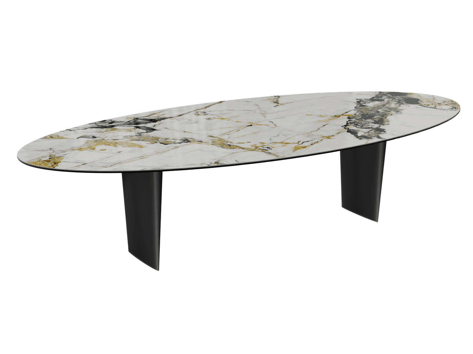 Adeptes des grandes tablées, la table Goliath est spécialement conçue pour vous. Idéale pour les familles nombreuses, vous pourrez réunir jusqu’à 14 personnes. Son atout principal est sa forme ovale qui invite à la convivialité. L’originalité de son plateau se distingue par sa céramique Marbre Doro de 6 mm d’épaisseur collée sur un verre de 8 mm. Son piètement chic en acier laqué noir mat mesure 76 cm de hauteur. Transformez vos repas en moments chaleureux.