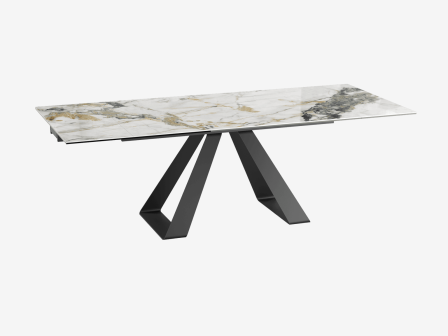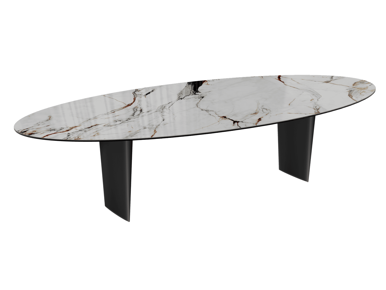 A la recherche d’une grande table originale et conviviale ? La collection Goliath est parfaite pour votre intérieur ! Réunissez jusqu’à 14 convives lors de vos grandes tablées. Cette table se distingue par le choix de ses matériaux. Son plateau est en céramique Marbre Fiorentino de 6 mm d’épaisseur collé sur une plaque de verre de 8 mm. Son piètement chic en acier laqué noir mat mesure 76 cm de hauteur. Transformez vos repas en moments chaleureux et accueillants.